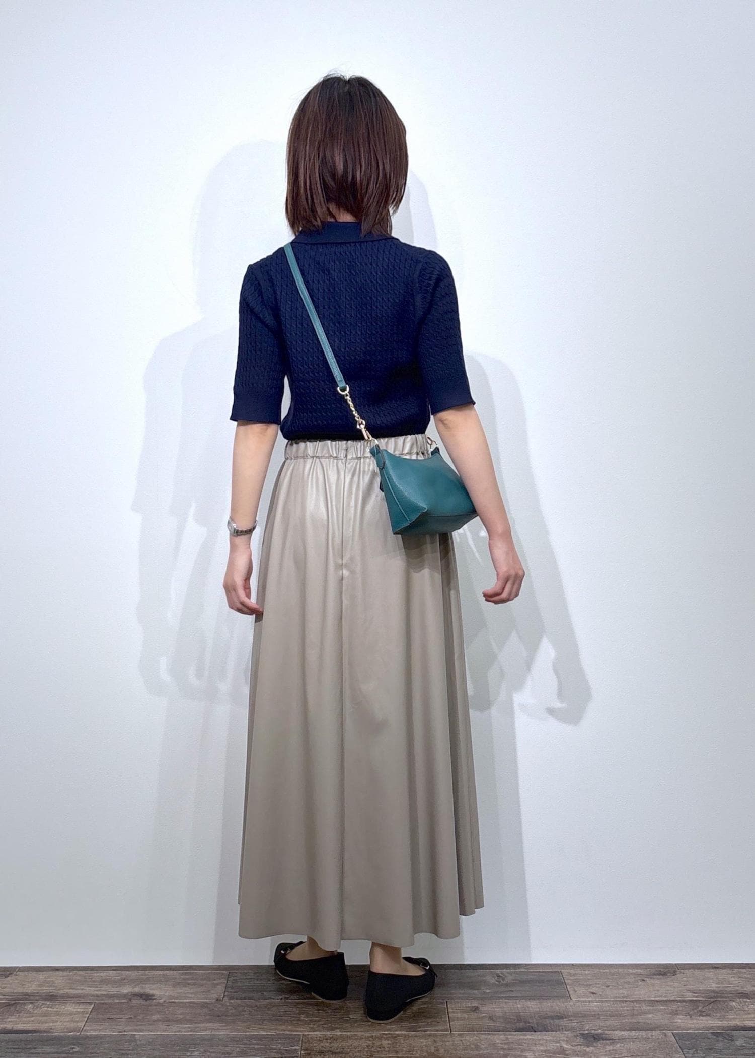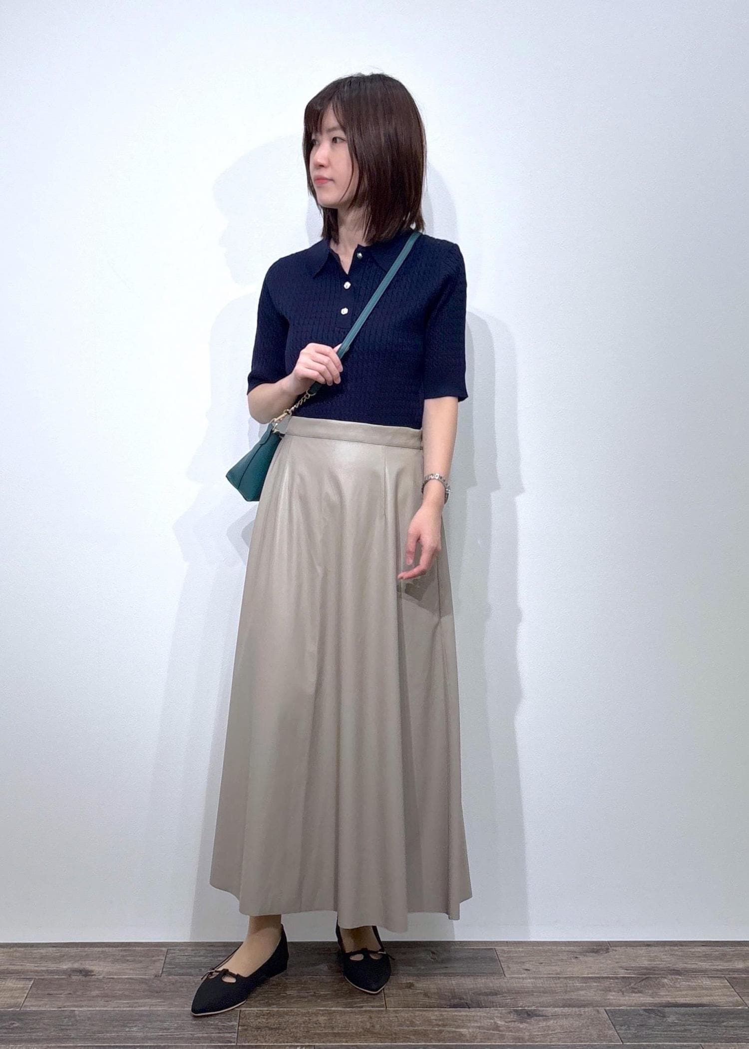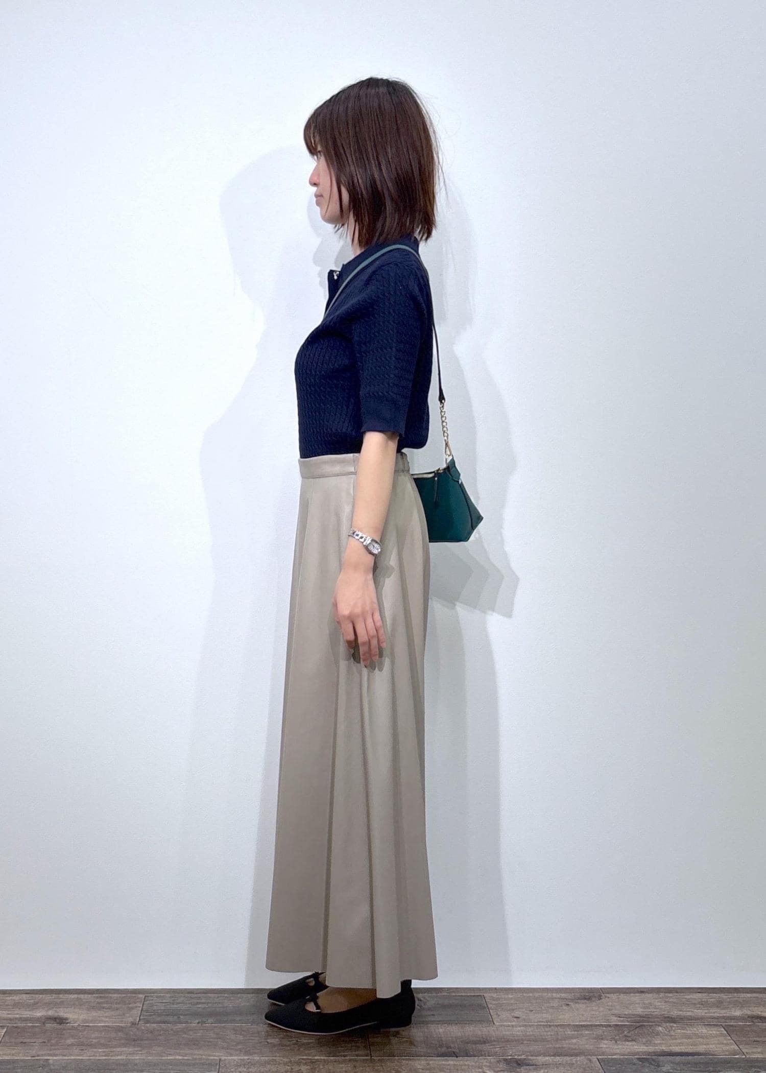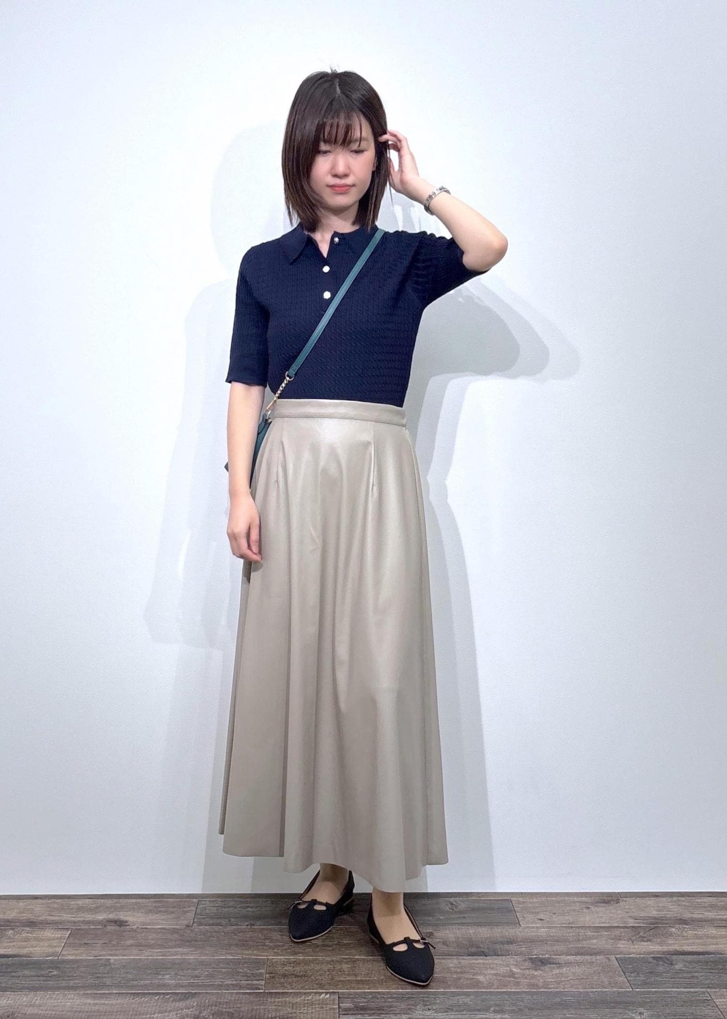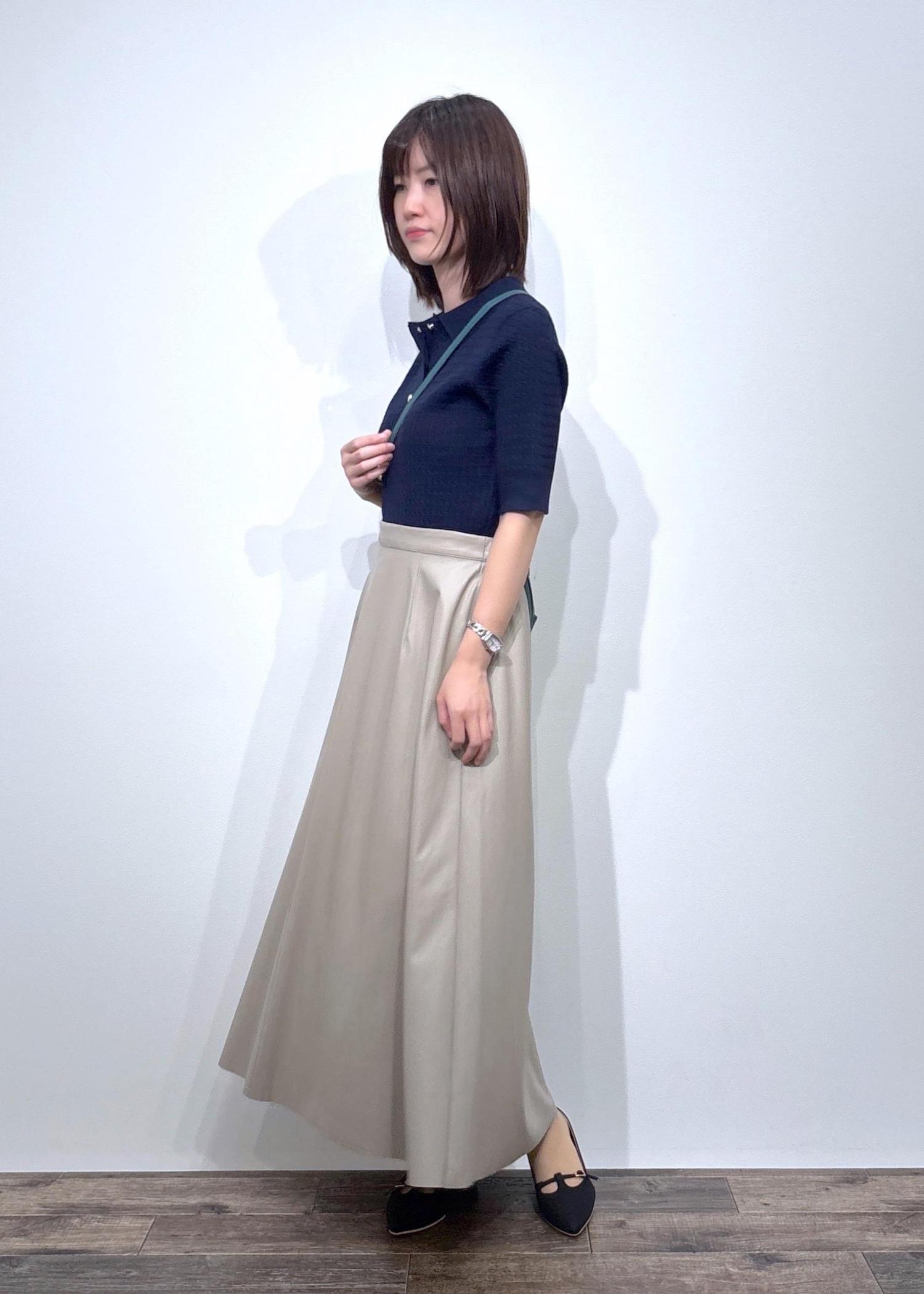ROPÉ PICNICシンセティックレザーフレアロングスカートベージュ / M¥4,994レビュー柔らかい素材で軽い履き心地でした。Mサイズだとウエストにかなりゆとりを感じました。