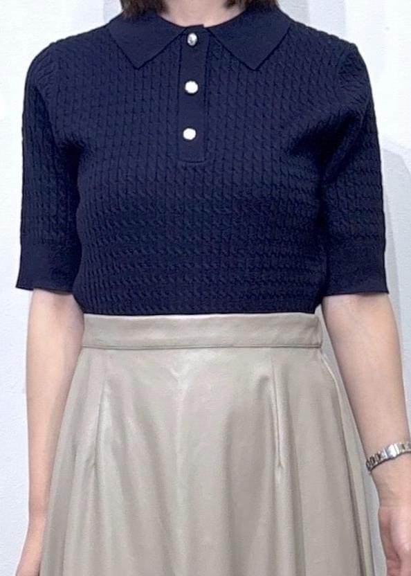 ROPÉ PICNICミニケーブルハーフスリーブニットポロシャツネイビー / 38¥4,994レビュー柔らかな肌触りで身体にフィットするシルエットです。