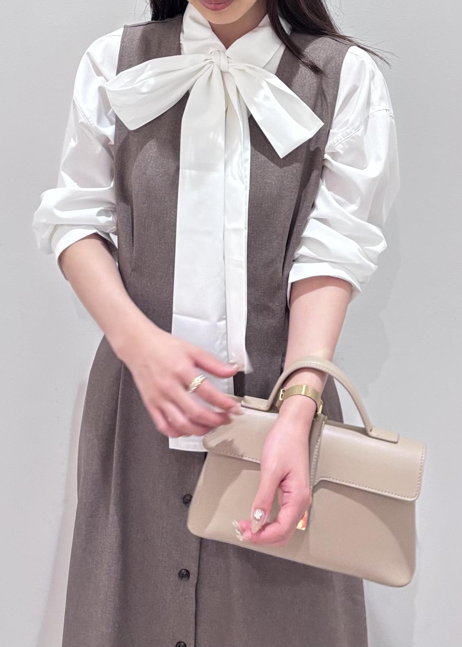 ROPÉ PICNIC【防シワ】ボウタイ付きレギュラーシャツオフホワイト /¥5,489レビュー154センチで、着丈はお尻が隠れそうな丈感でした。袖部分は丸みのあるデザインなので、女性らしいシルエットに見せてくれます。ボウタイは取り外し可能です◎