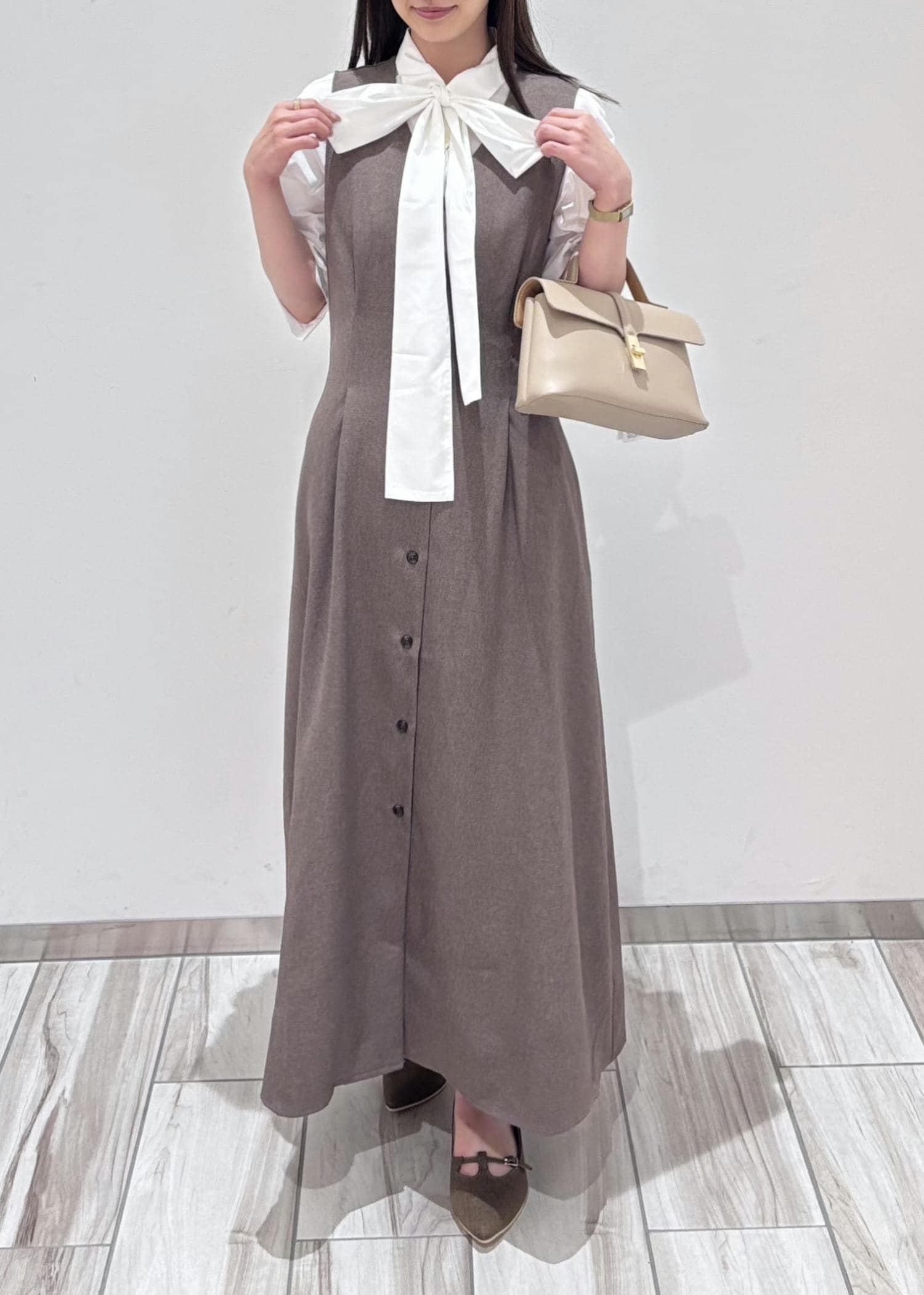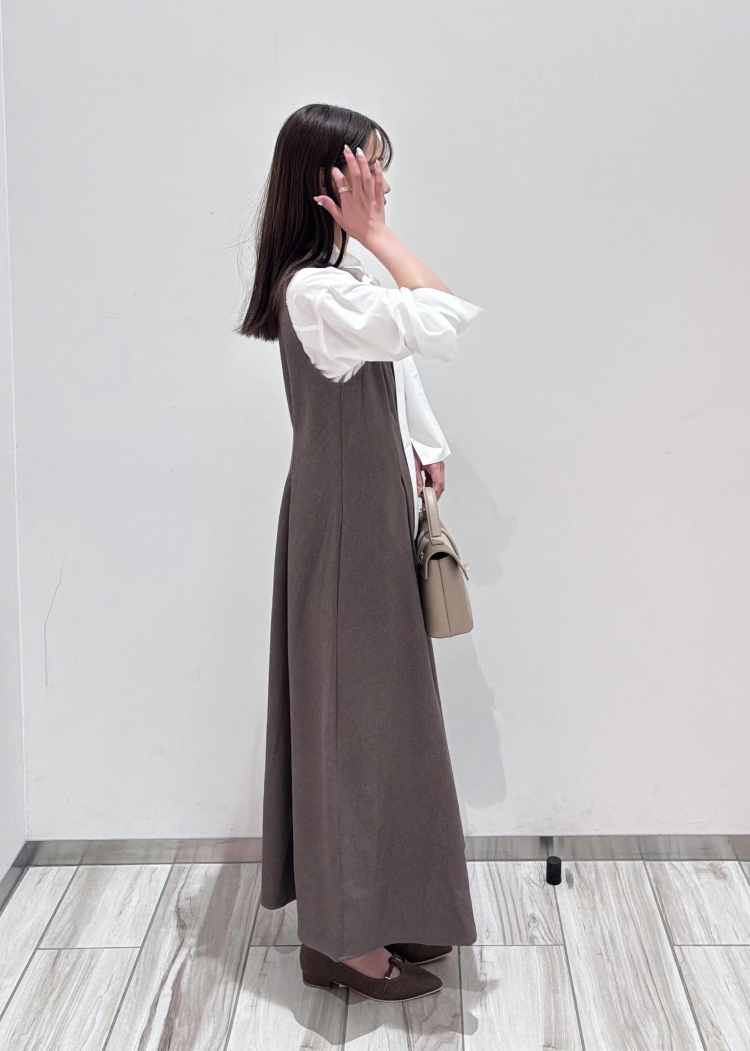 ジャンパースカートは、着るだけで上品な印象に◎夏場はノースリーブで合わせても、秋春はシアーな長袖トップスと合わせても可愛いです。セレモニーや大切なシーンに使いたい時はブラウスと合わせてもご利用いただけます◎