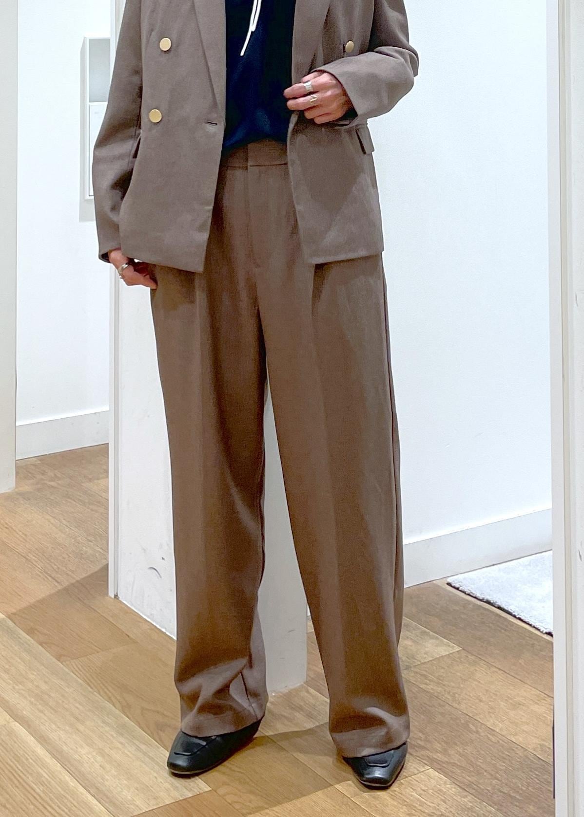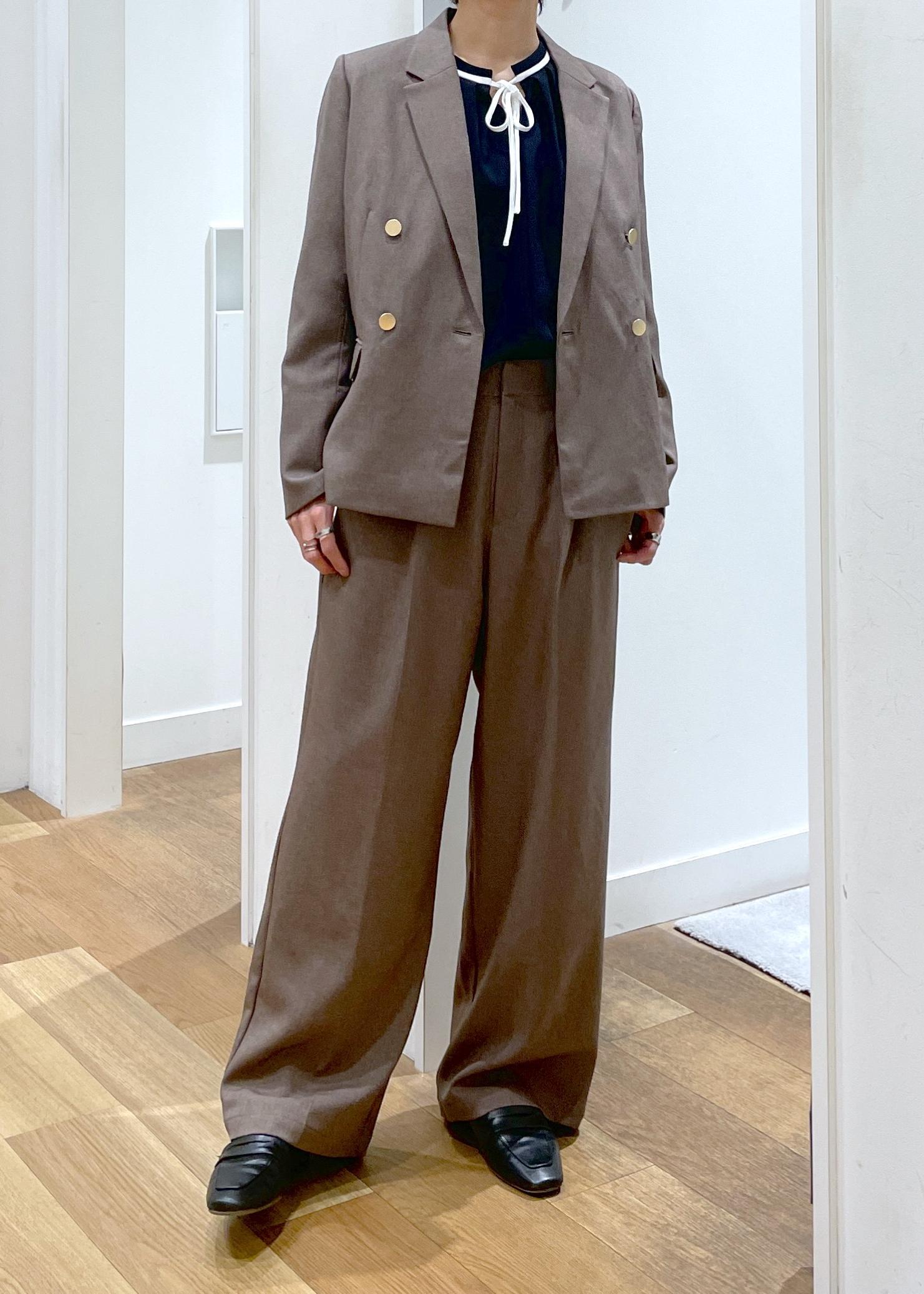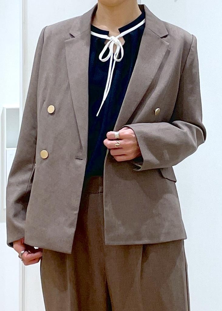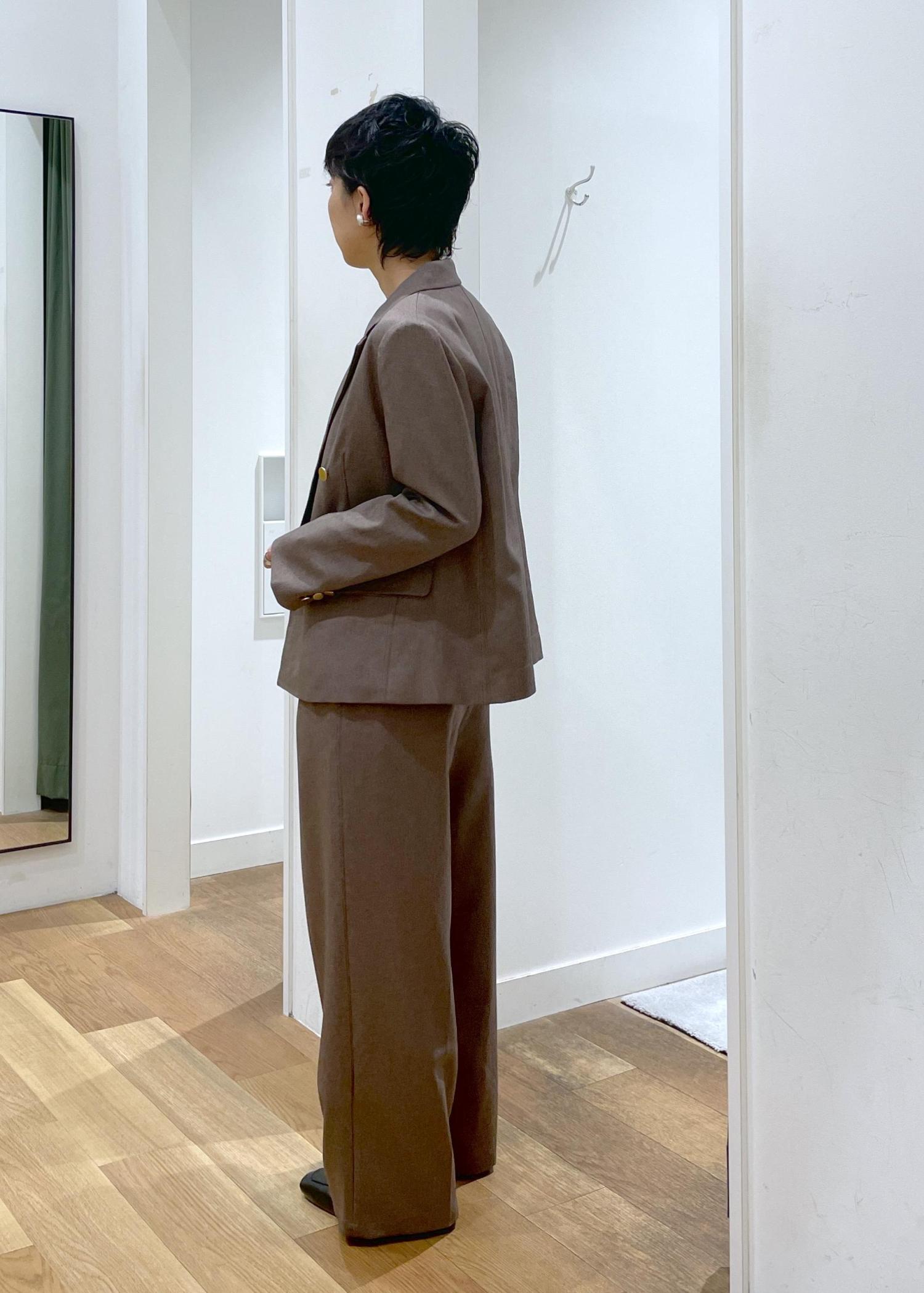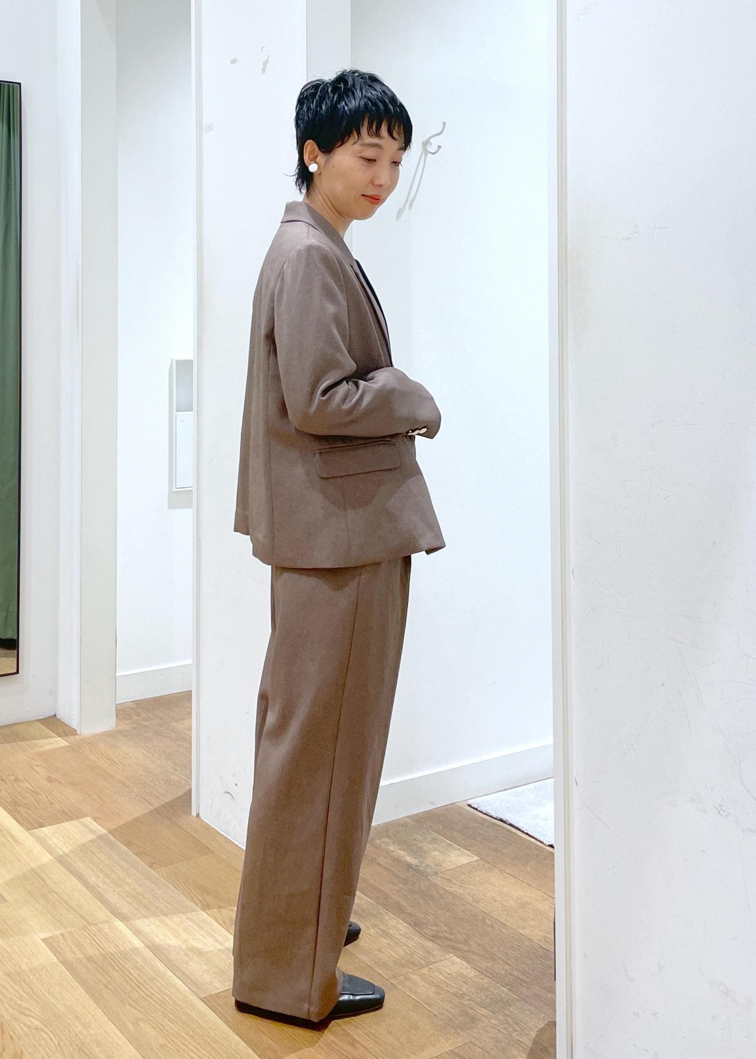 ブラウン系カラーは柔らかい印象になり、トレンド感が増します◎かっちりしたかったので、ジャケットは普段着用サイズのMサイズを選びました。
