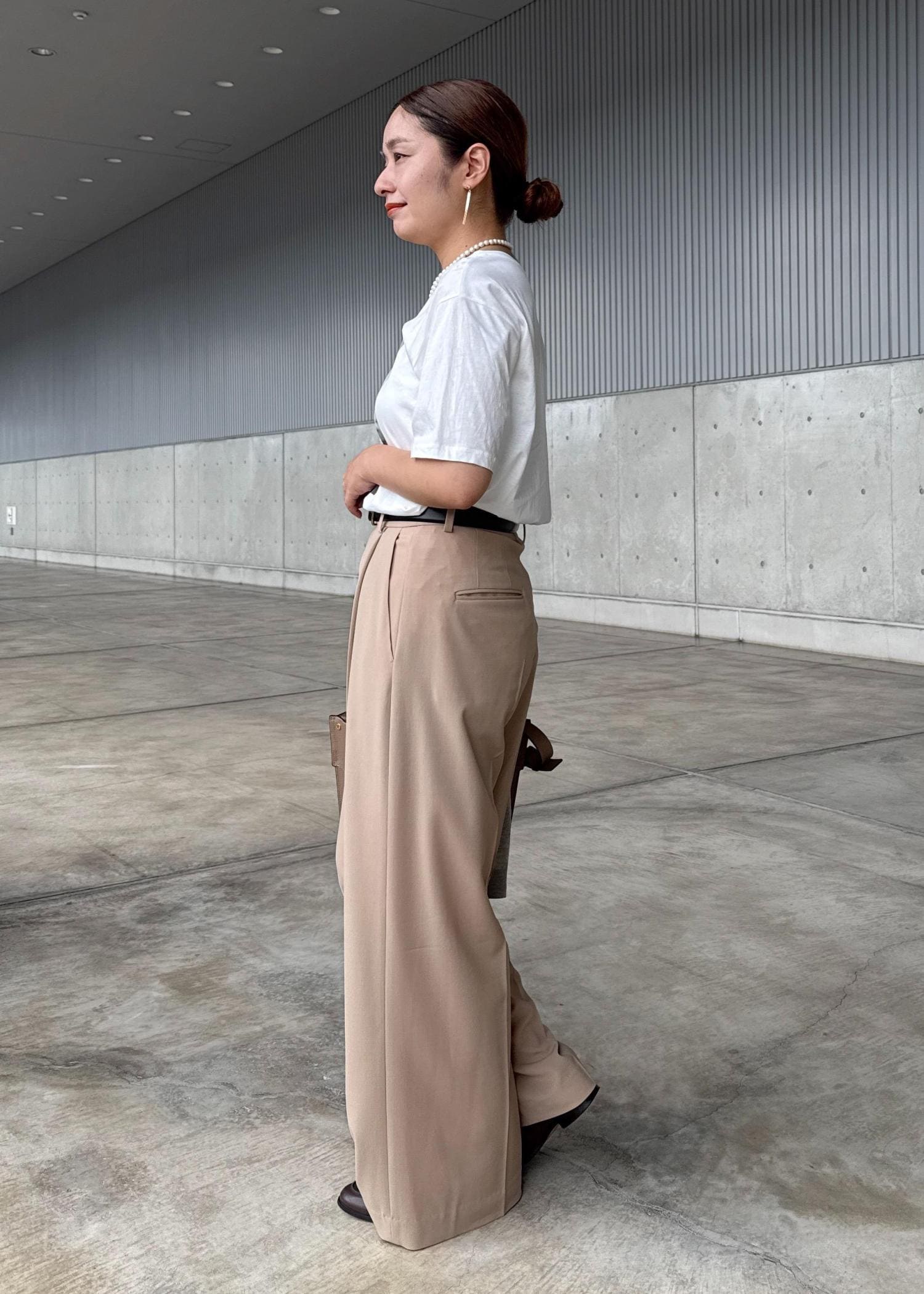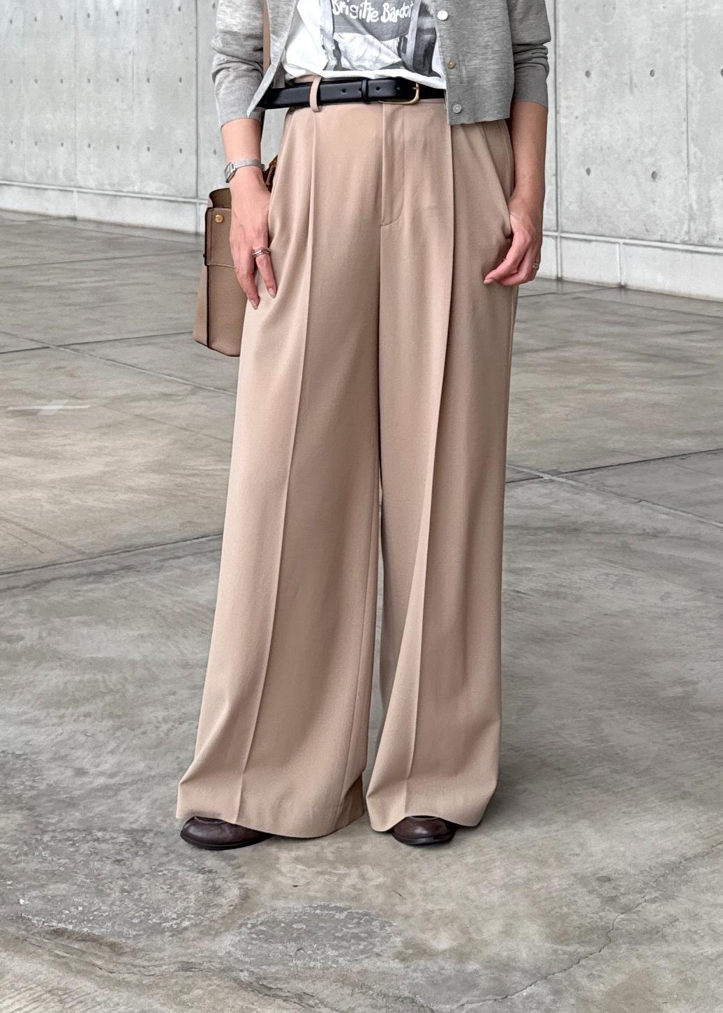 ワイドラインですが、落ち感のある生地なので、ボリュームが出過ぎることなく綺麗なラインです。