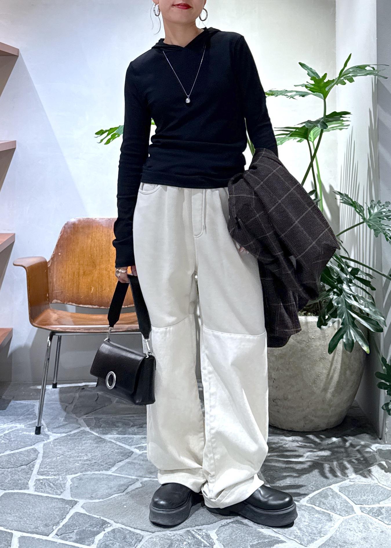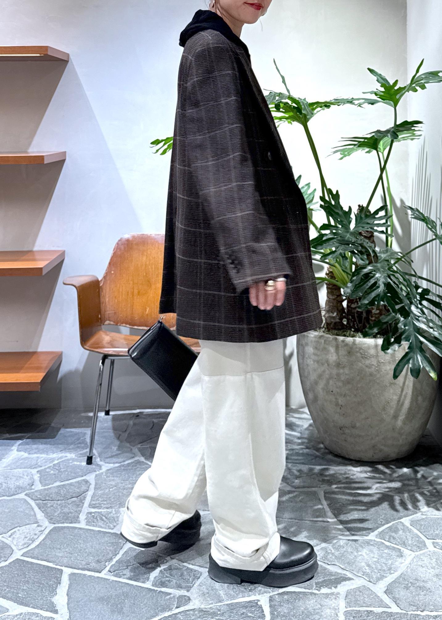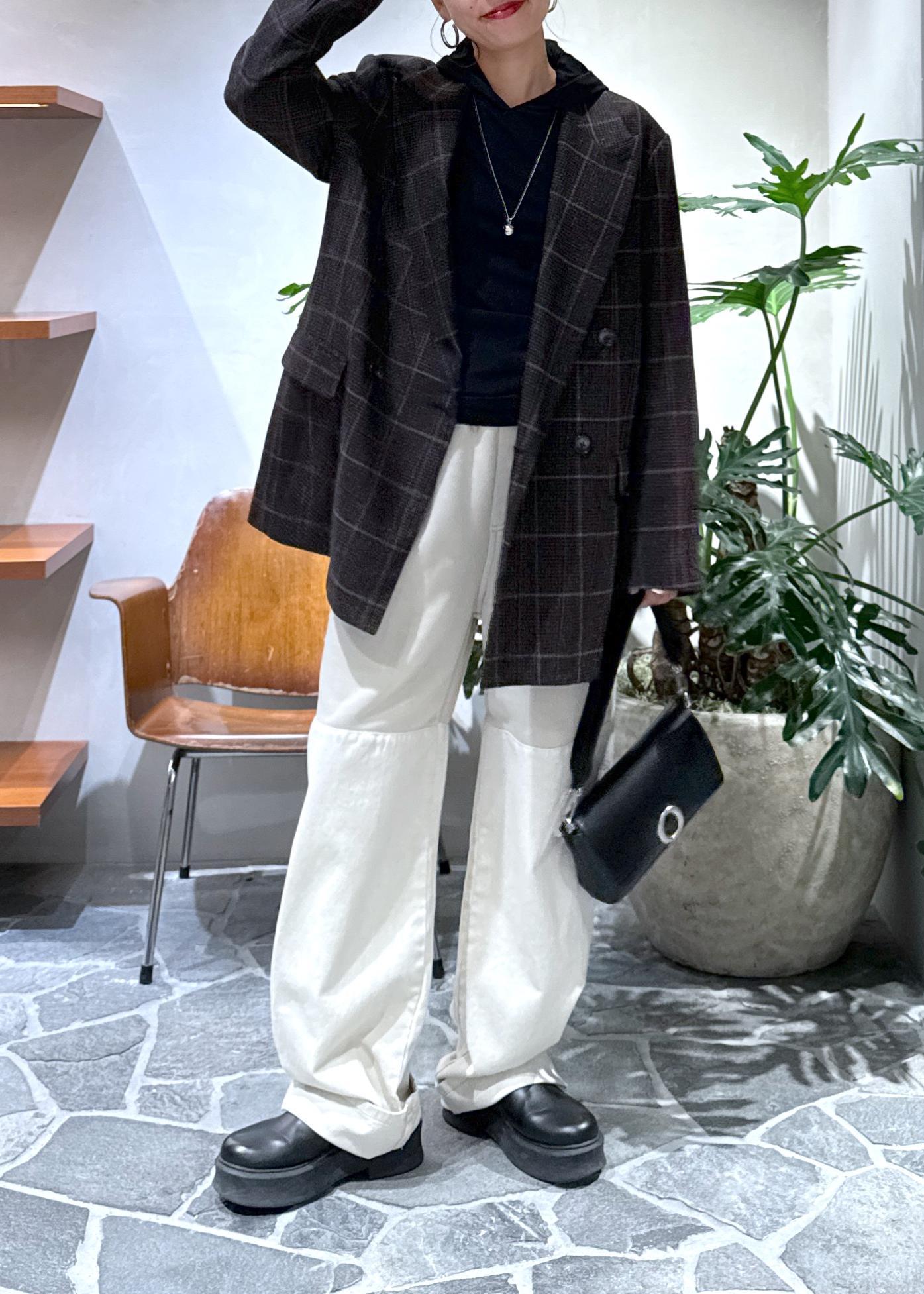 ジャケットのかっちり感と合わせる事で、スウェットパンツもお出かけの時に大活躍です!