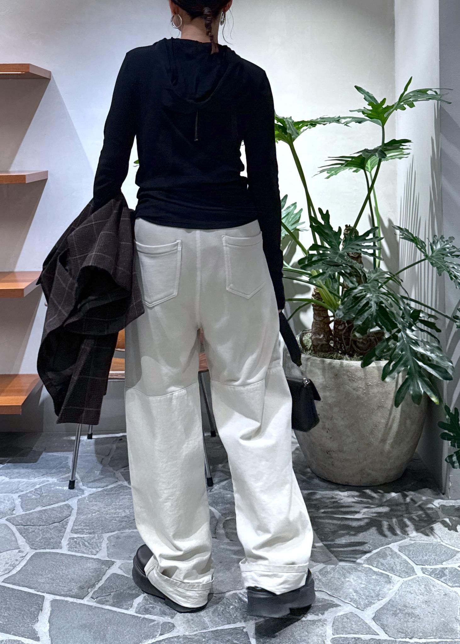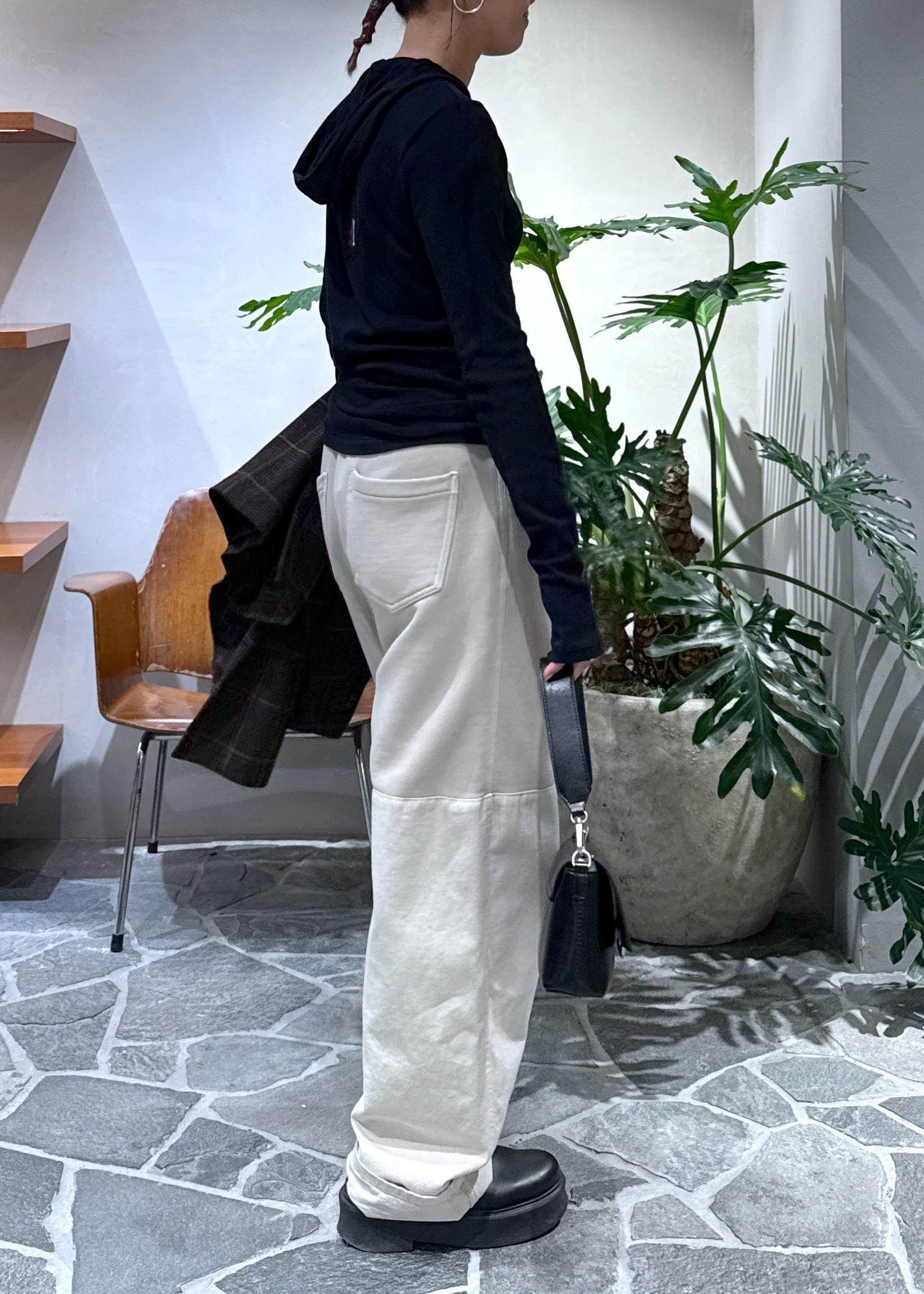 ADAM ET ROPÉ FEMME【AMOMENTO for ADAM ET ROPE'】別注DRAWSTRING DENIM PANTSベージュ / S¥30,800レビュー渡り幅は程よいゆとり感で足のラインやヒップラインを拾いません。