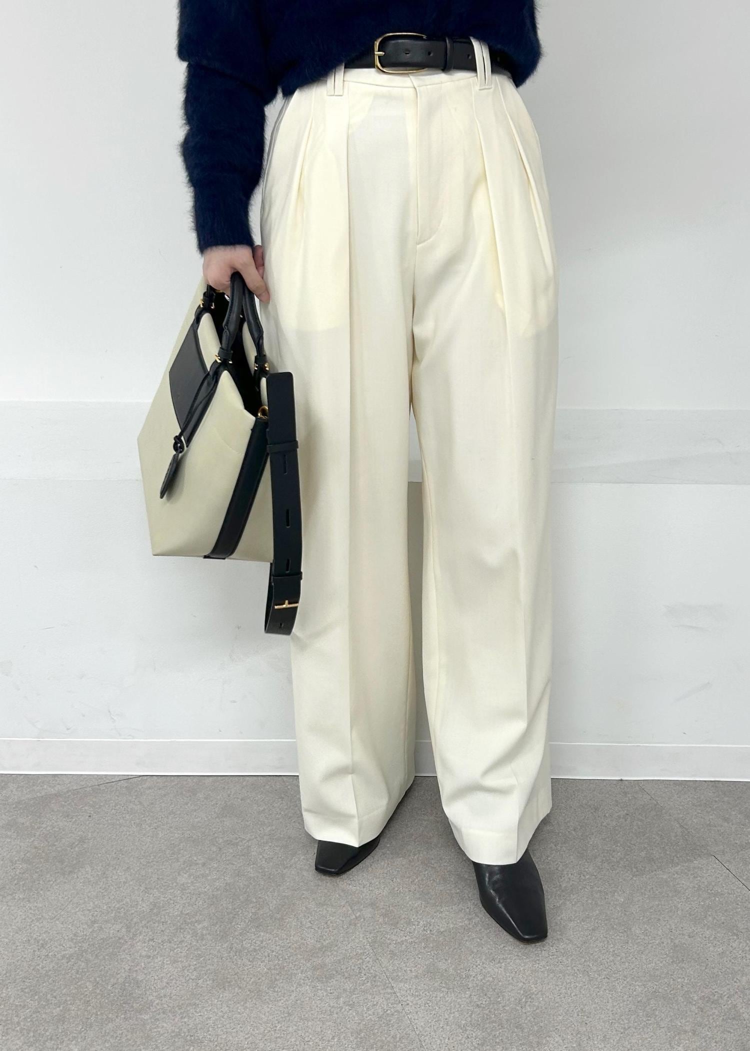 アウトレットROPÉ【撥水】ウールタックトラウザーパンツ【雑誌掲載】ホワイト / 38¥12,650レビュータックが入っているのでウエストはスッキリ見えし、腰回りのラインも拾いづらいです。太めのパンツですが落ち感があるのでシルエットが綺麗に見えます。