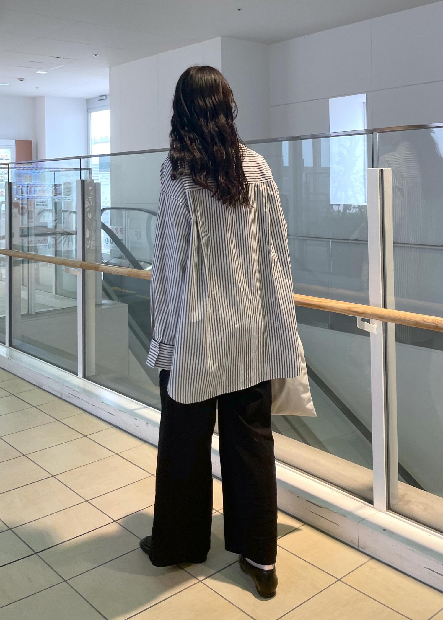 少々張りのある質感でイージーパンツでもカジュアルになりすぎずきちんと感も出せます。