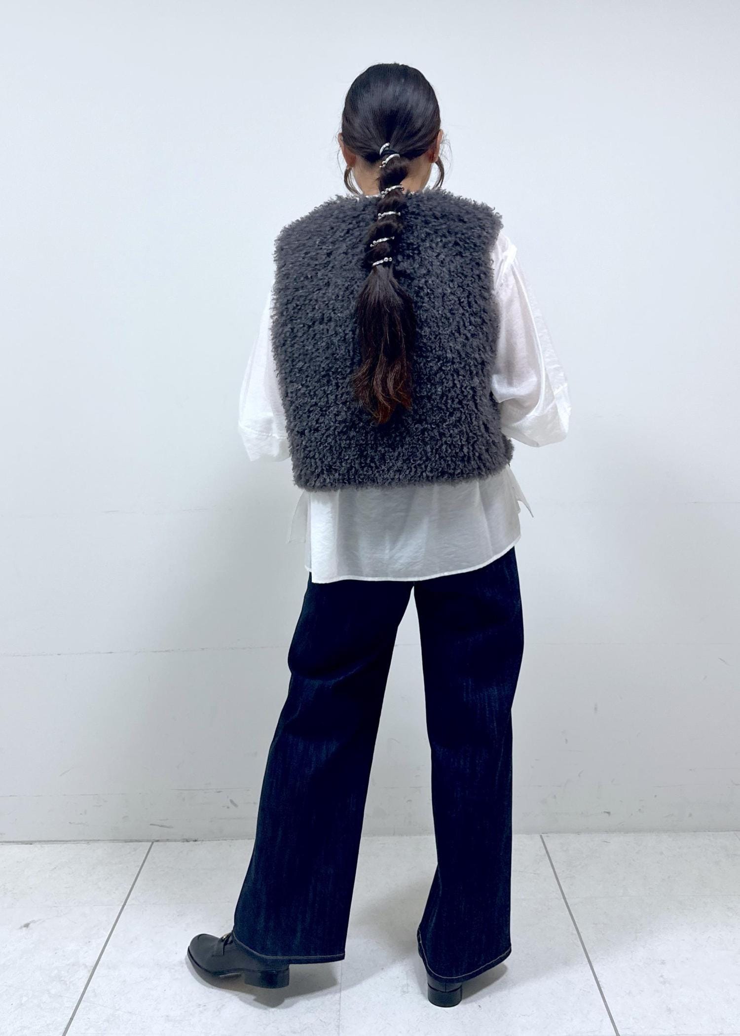 ROPÉフェイクファー ジレ ベストグレー / F¥38,500レビュー身長162㎝でFサイズ着用です。