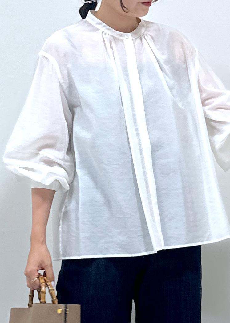 ROPÉキュプラシルクボリュームスリーブブラウス/イージーケアホワイト / F¥19,800レビュー身長162cmのフリーサイズ着用。