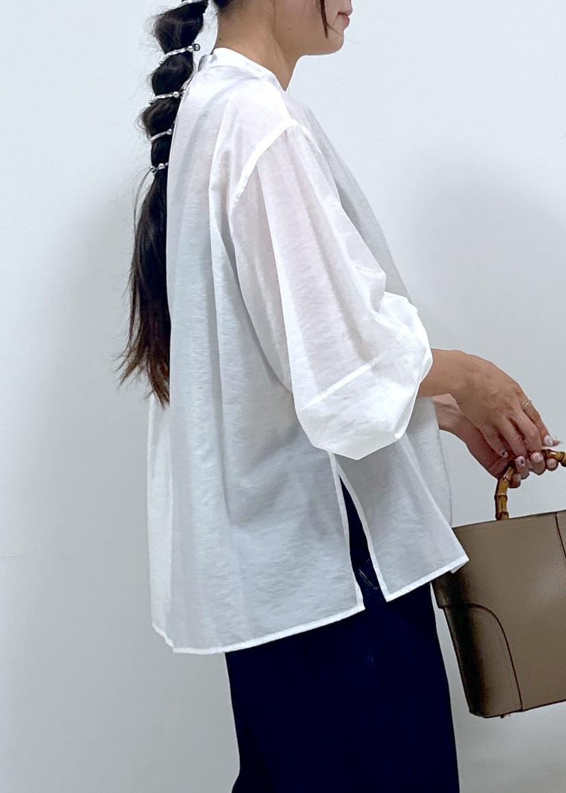 ボリューム袖のデザインで袖口にゴムが入っているので、袖を上げても落ちてこないです。インナーとしても、1枚着や羽織としても着回せる万能アイテムです。 -