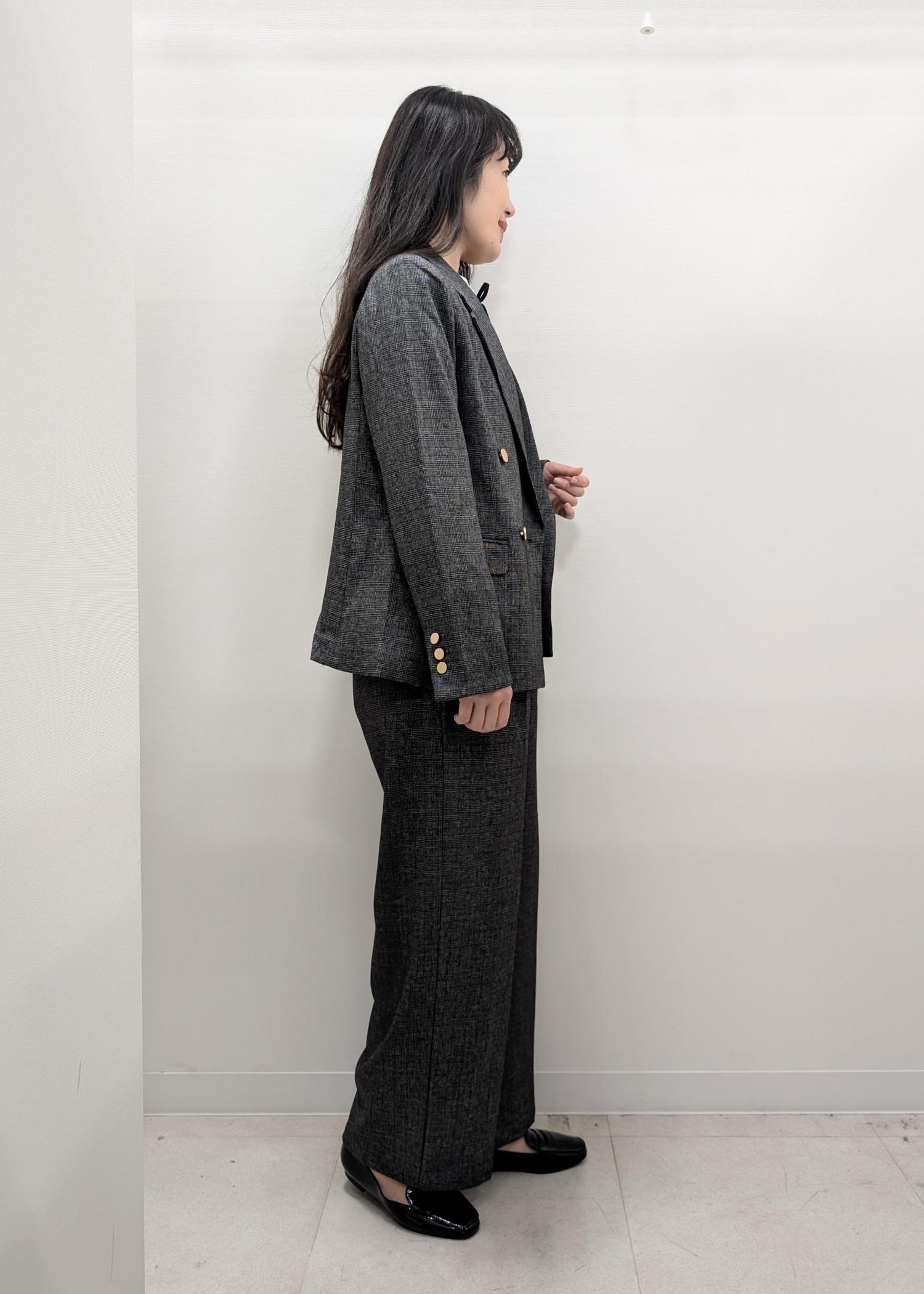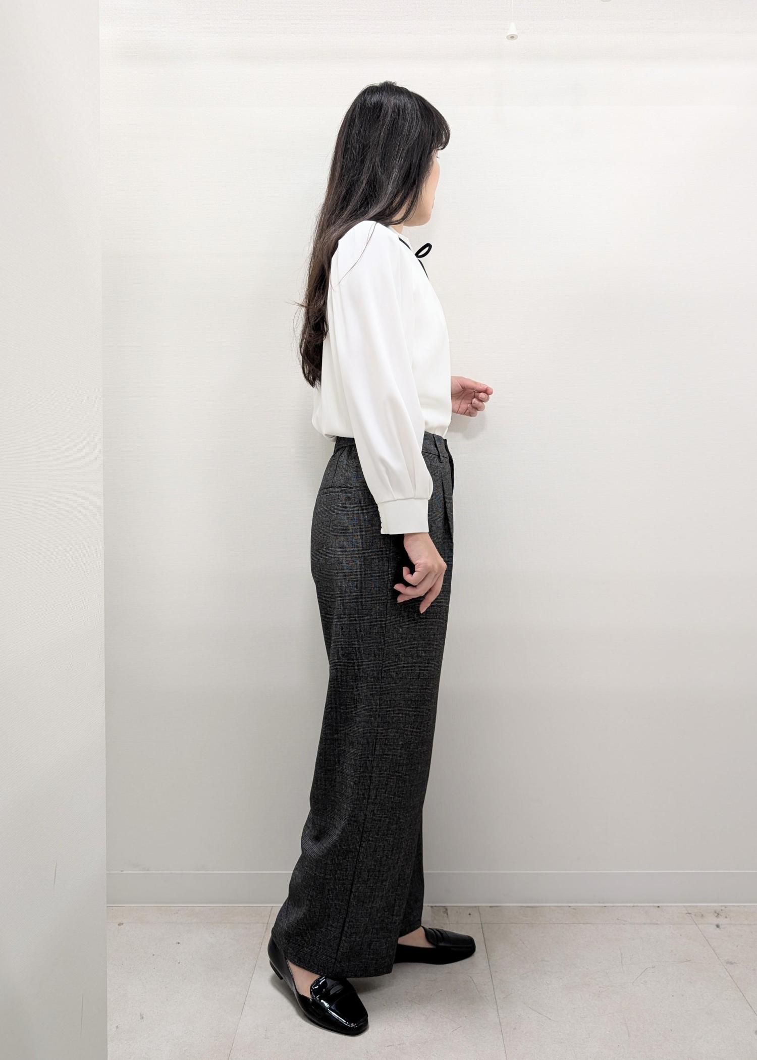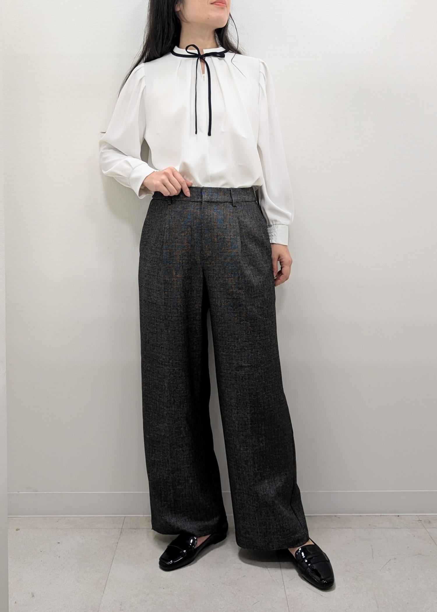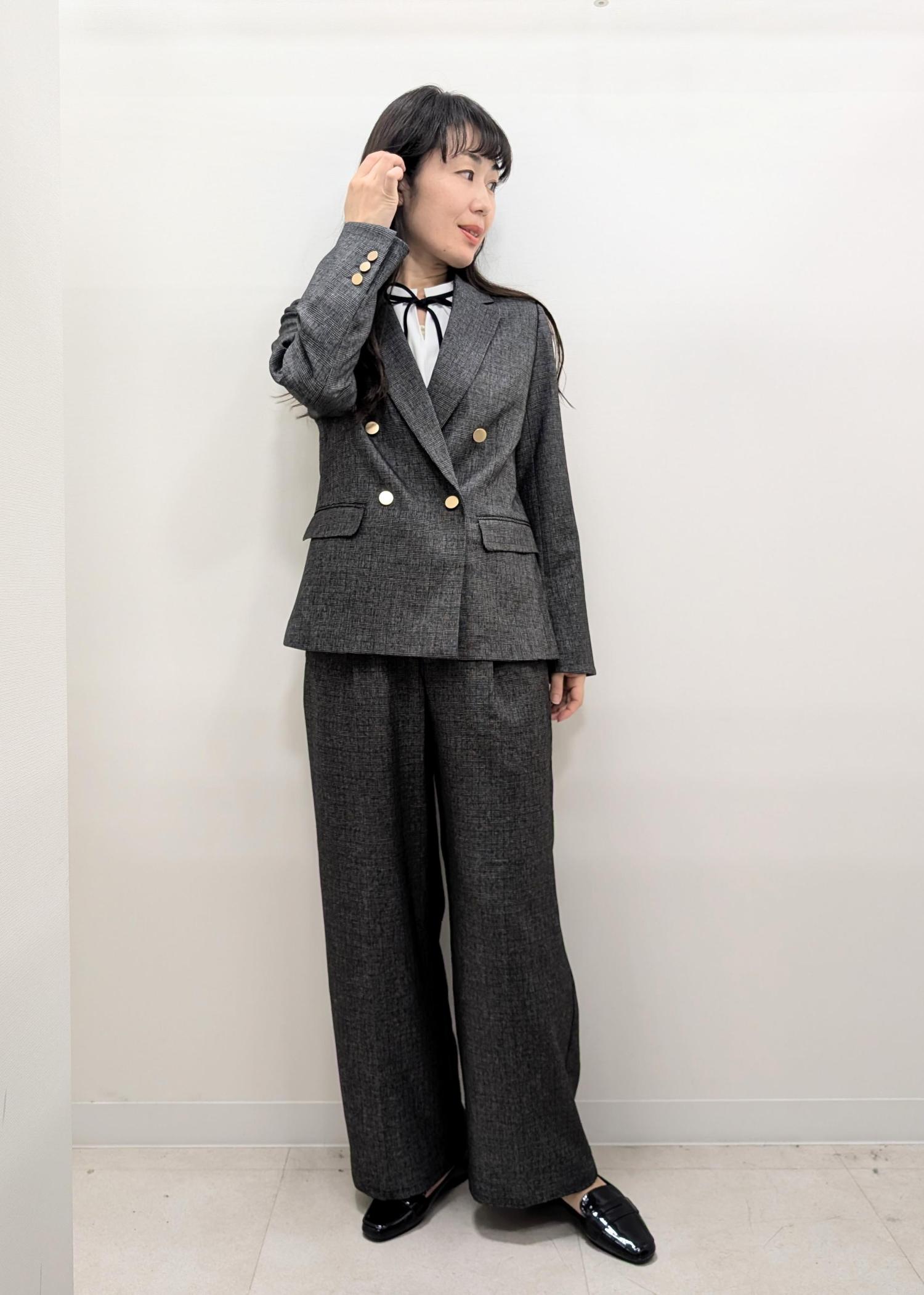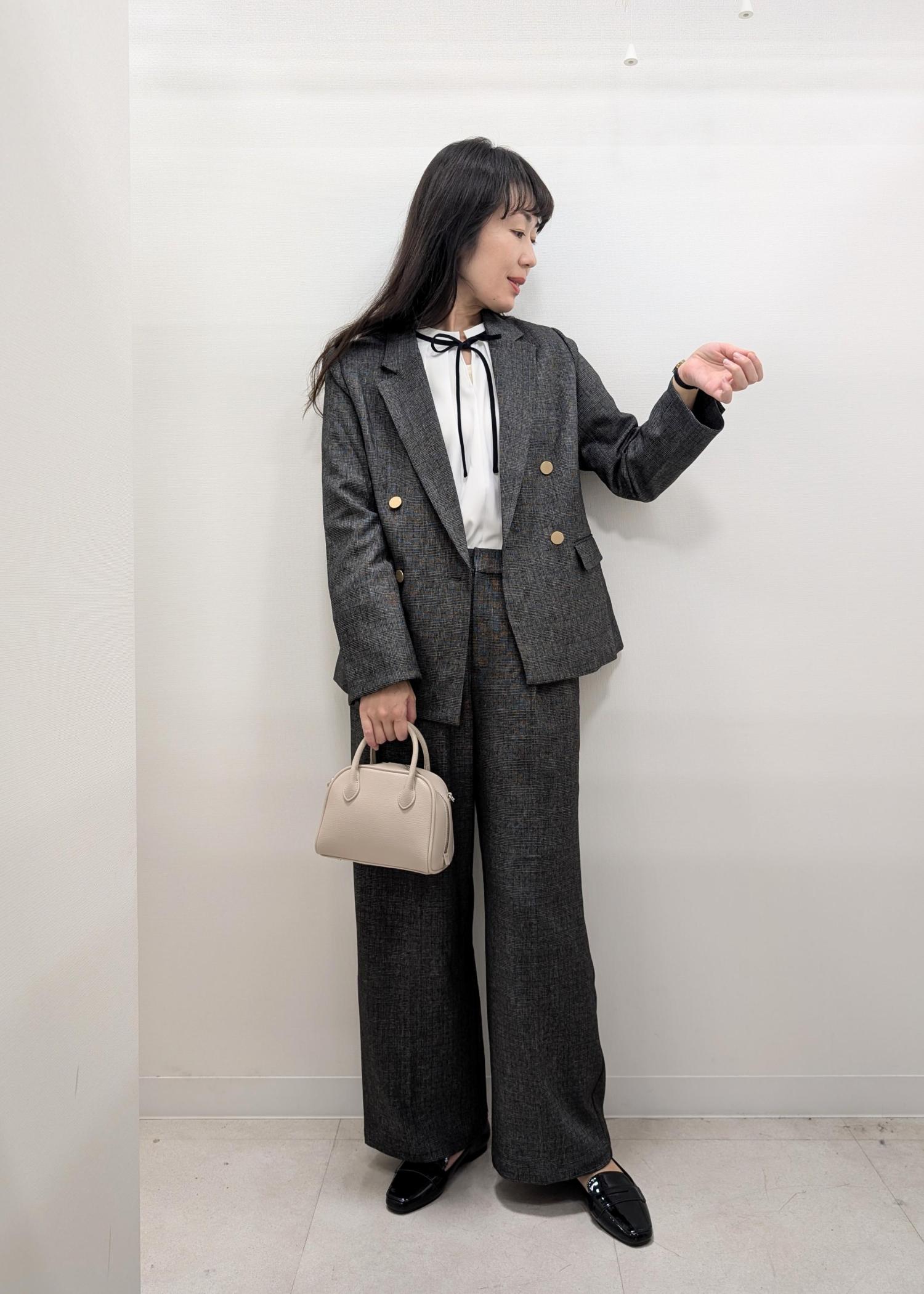 パンツのセットアップのインナーをリボンタイのブラウスにしてレディライクな雰囲気も漂うコーディネートにしました(^.^)
