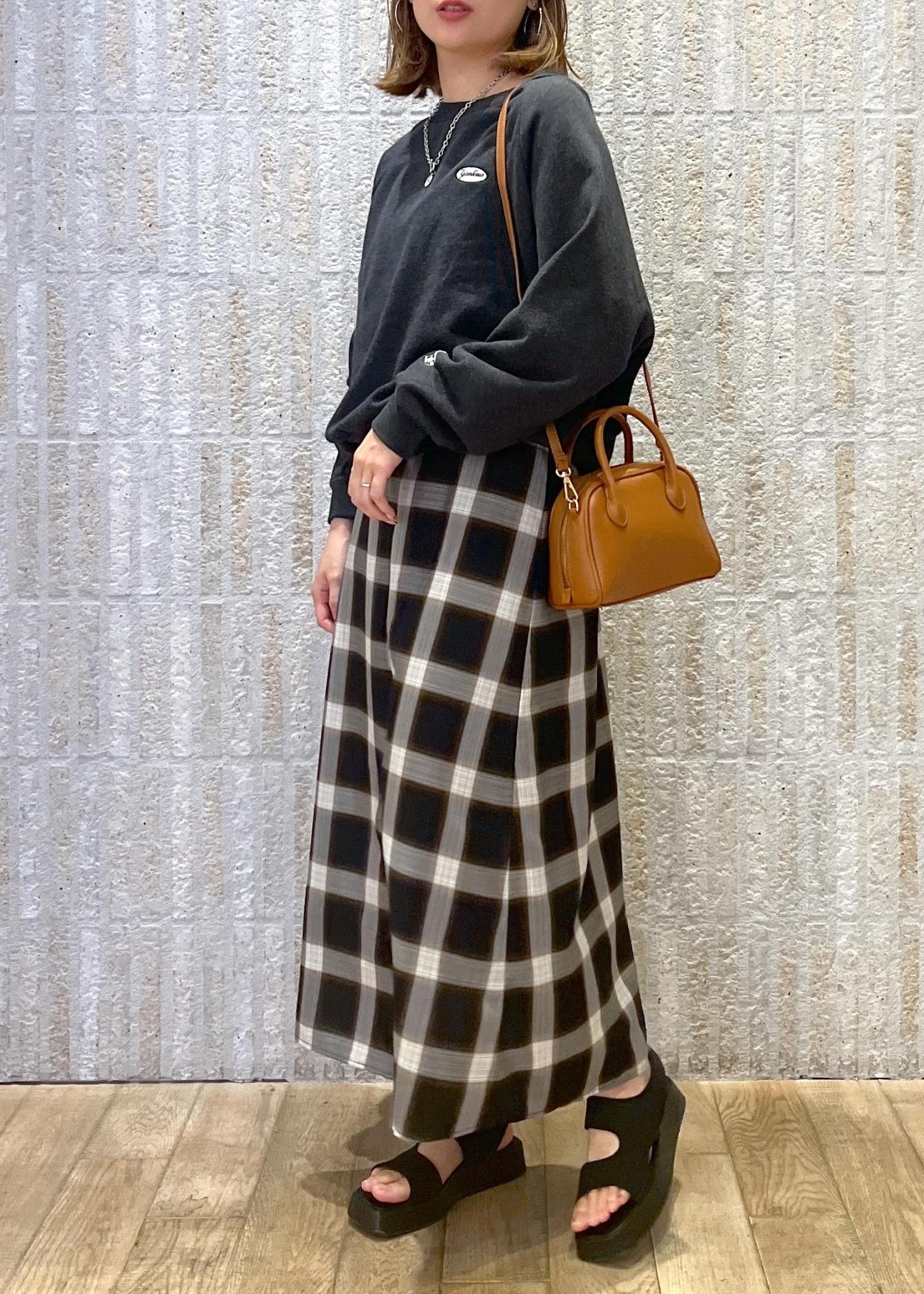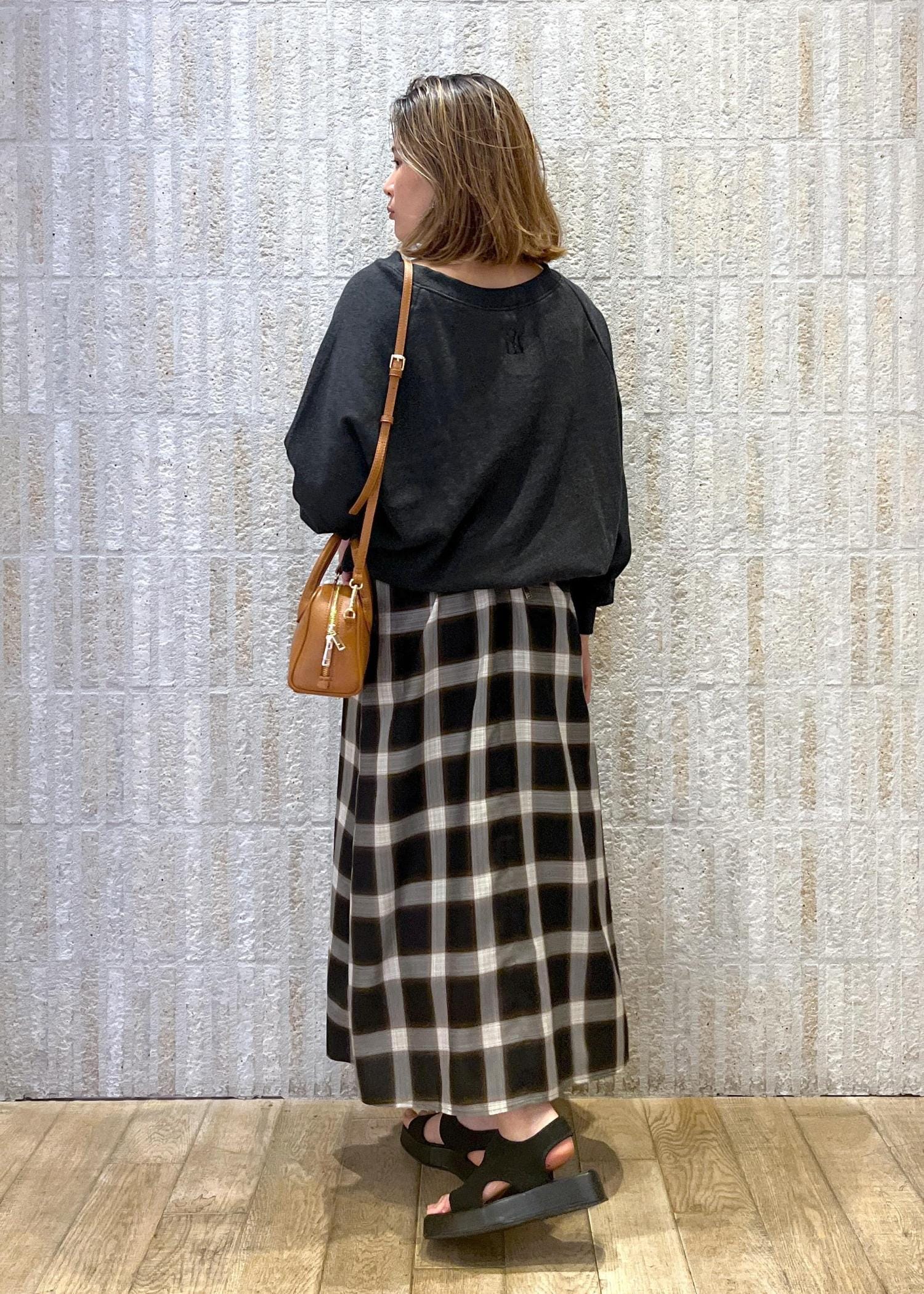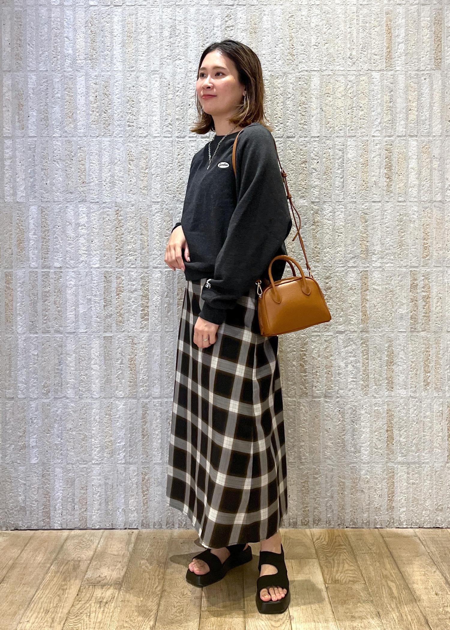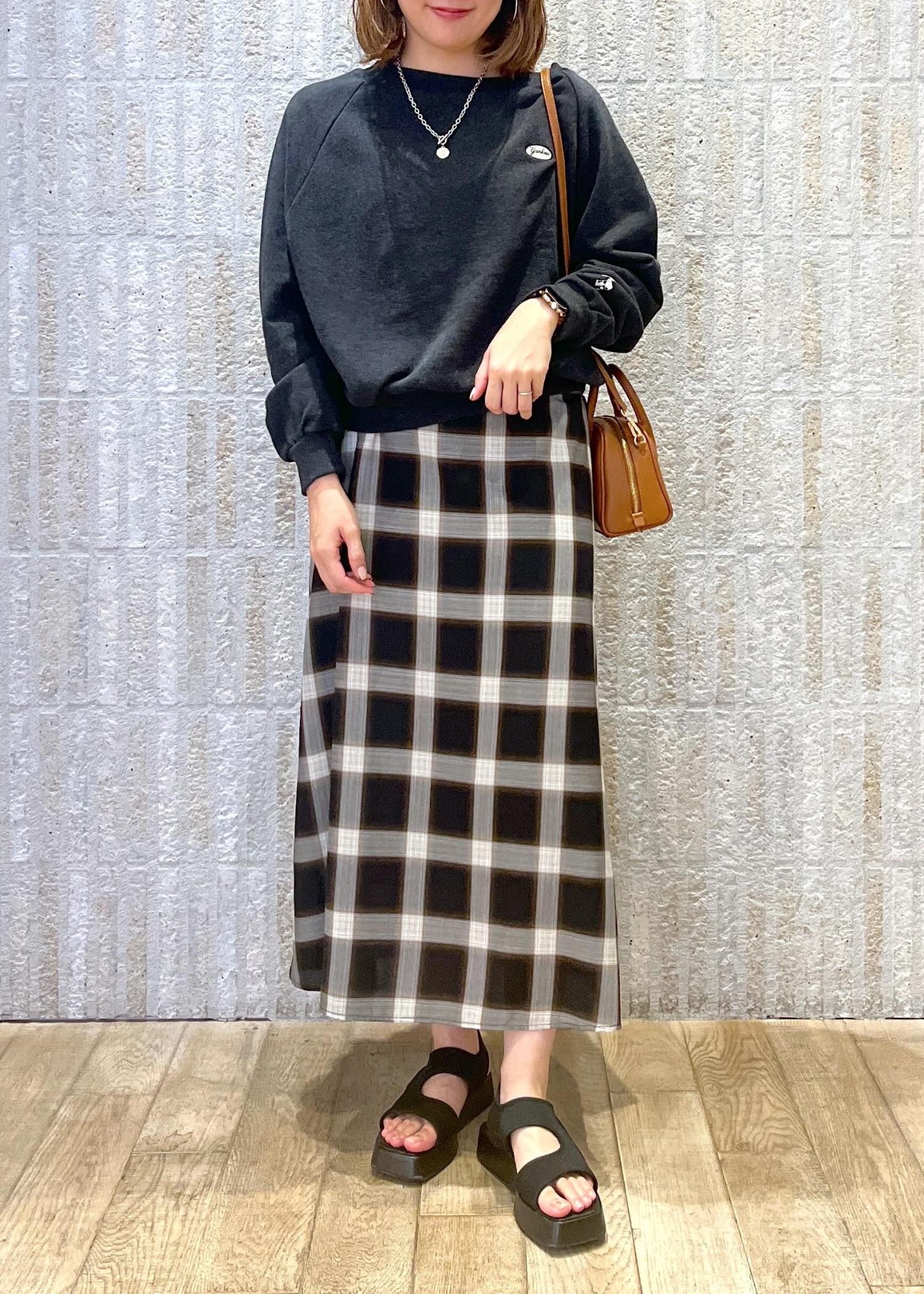 チャコールグレーは重たくなりすぎずきれいめなスカートに合わせても◎