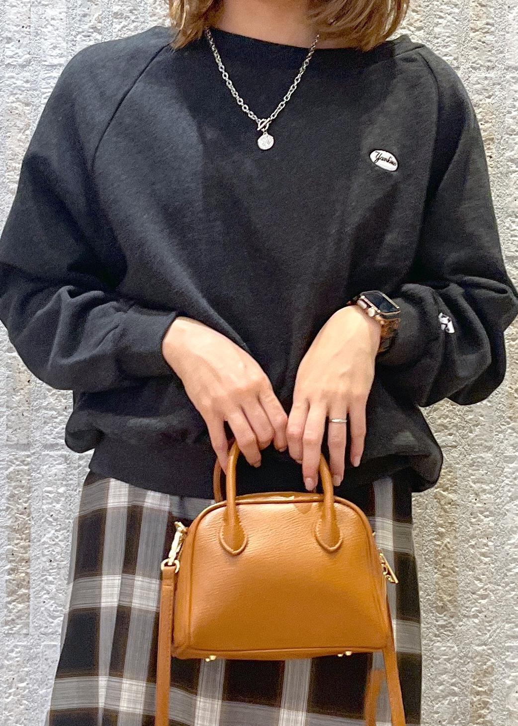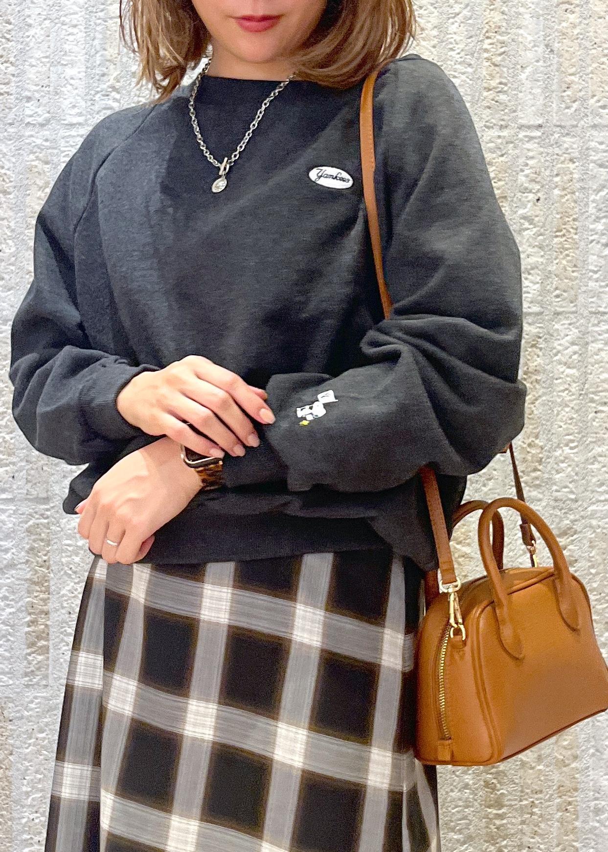 袖のスヌーピーがワンポイントになっていてかわいいスエットは大人可愛く、使いやすいデザイン。