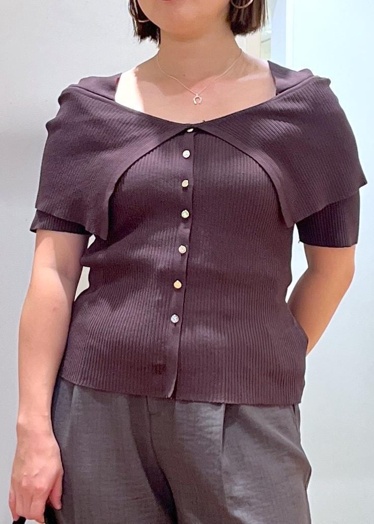 オフショル風ですが、下着の紐が見えないような肩のデザインになっているので、1枚でパッと着用いただけます。