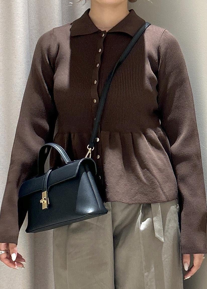 VIS【洗える】襟付きペプラムカーディガンダークブラウン / F¥6,589レビュー柔らかい素材で着やすいです◎