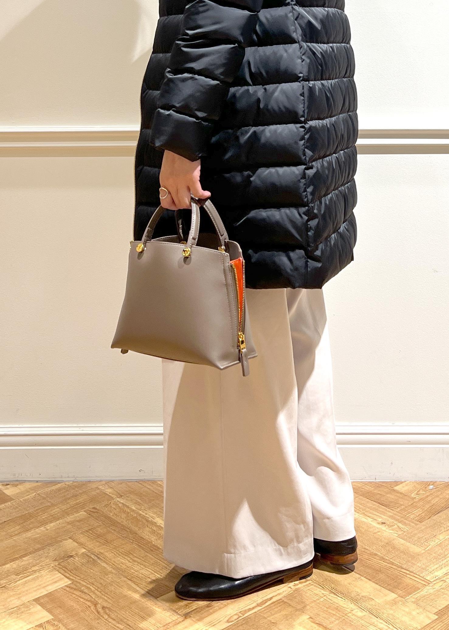 大きさもデザインも、本当に一番お洋服に合わせやすい。春夏秋冬も気にせず使える点も気に入っています。 -