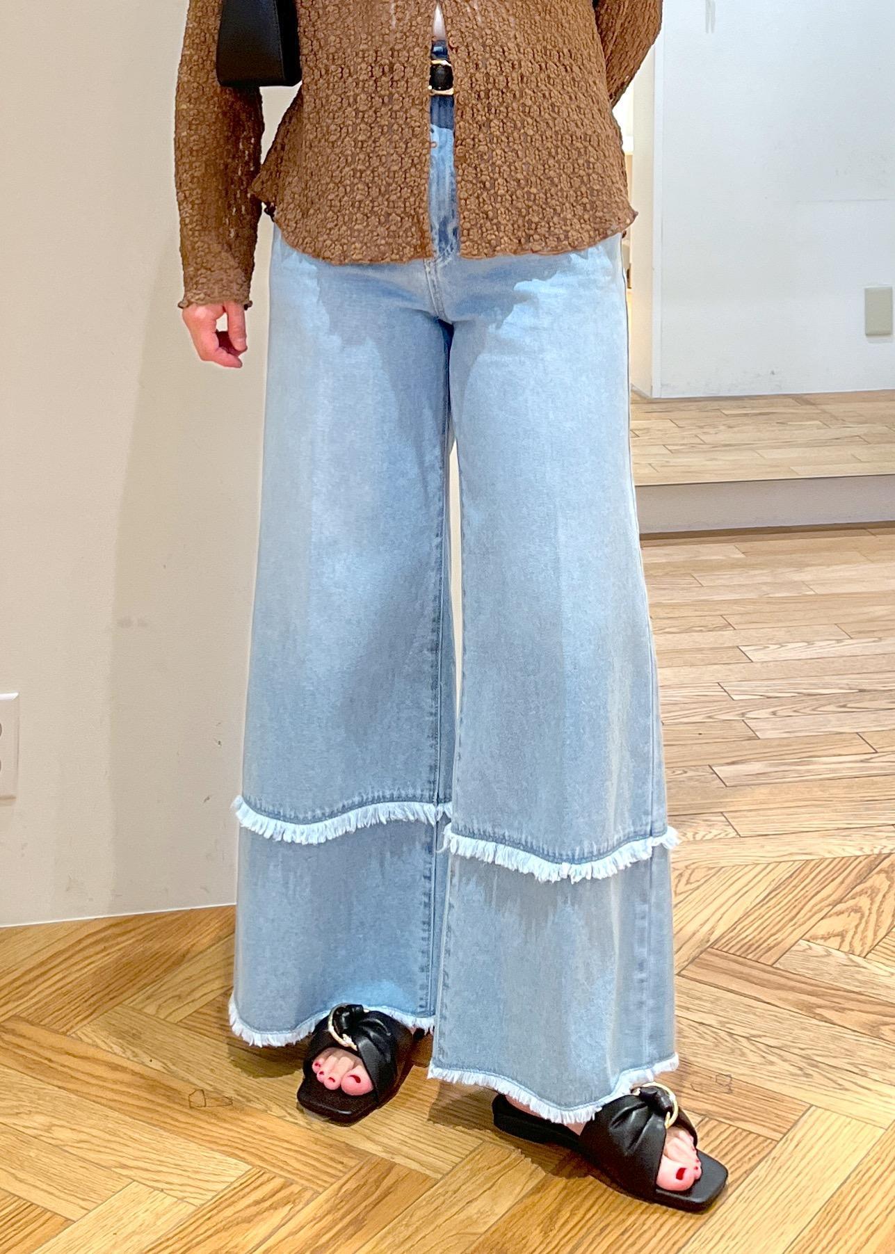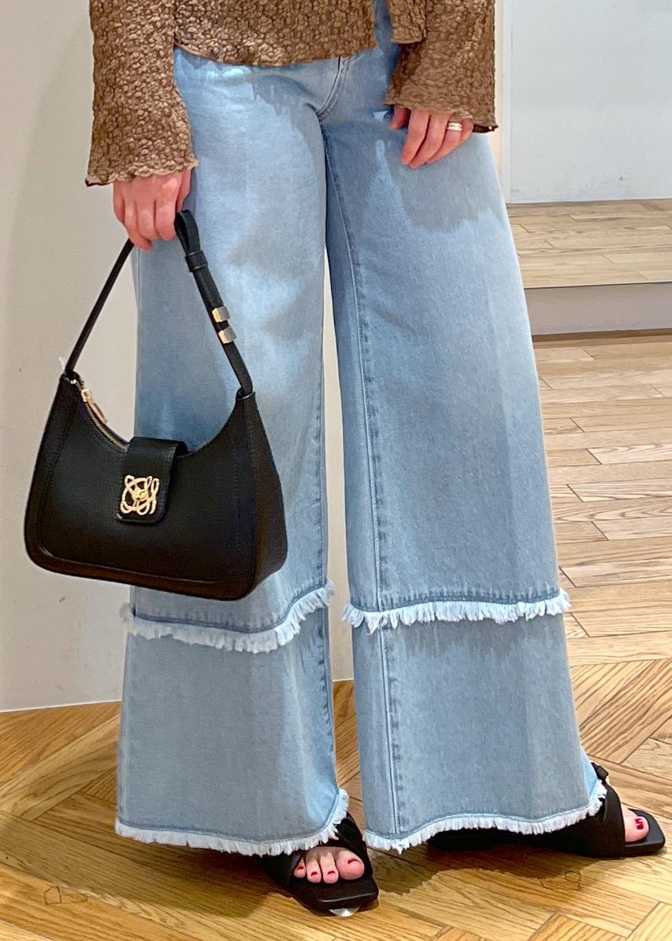 フリンジデザインが入っているので、シンプルなトップスと合わせてもおしゃれに決まります。