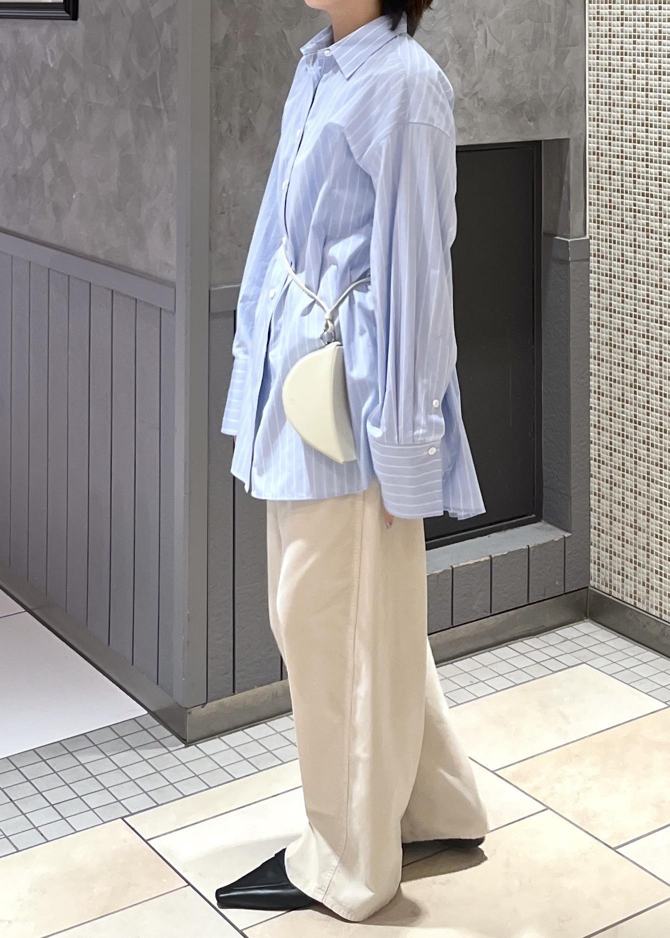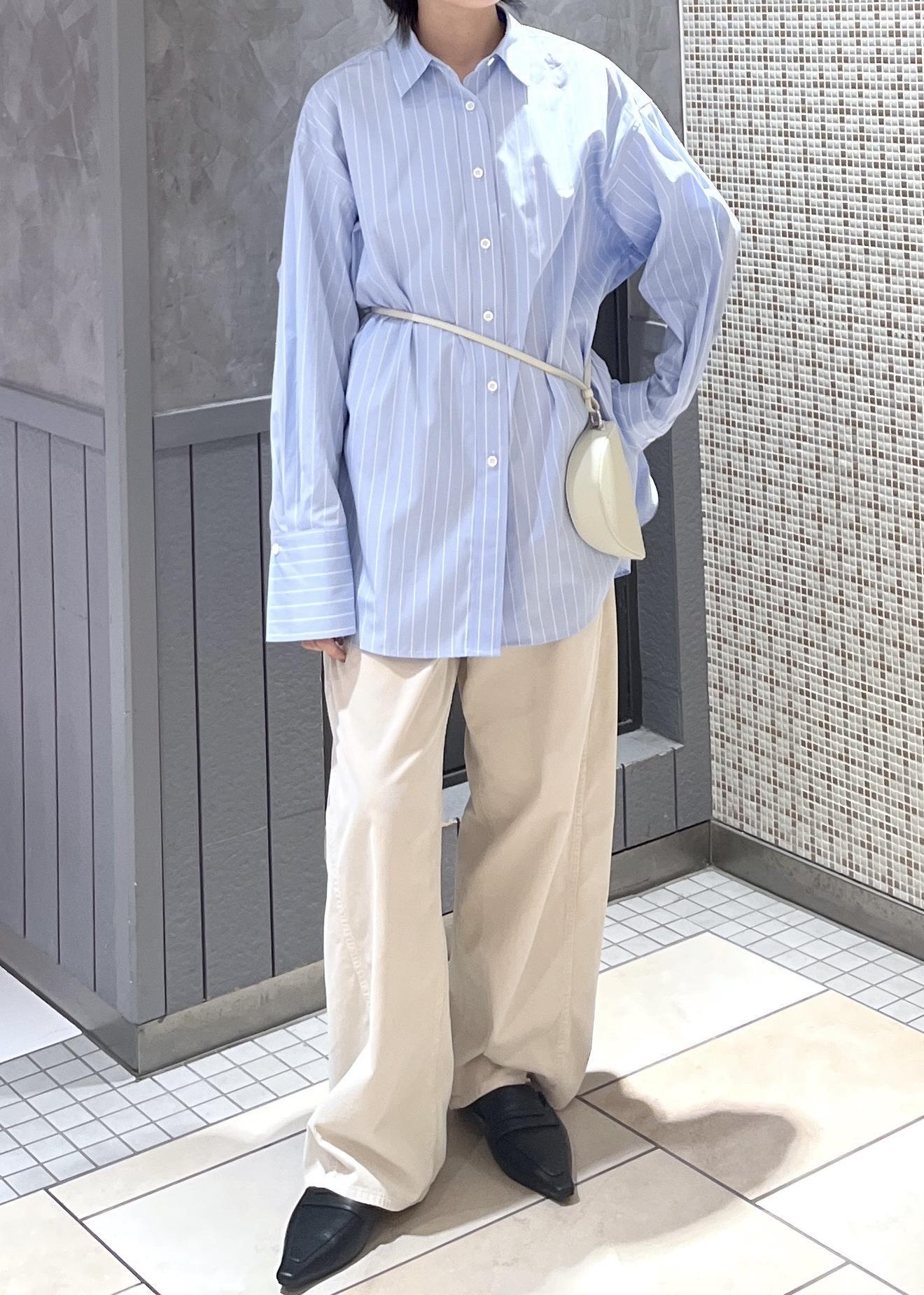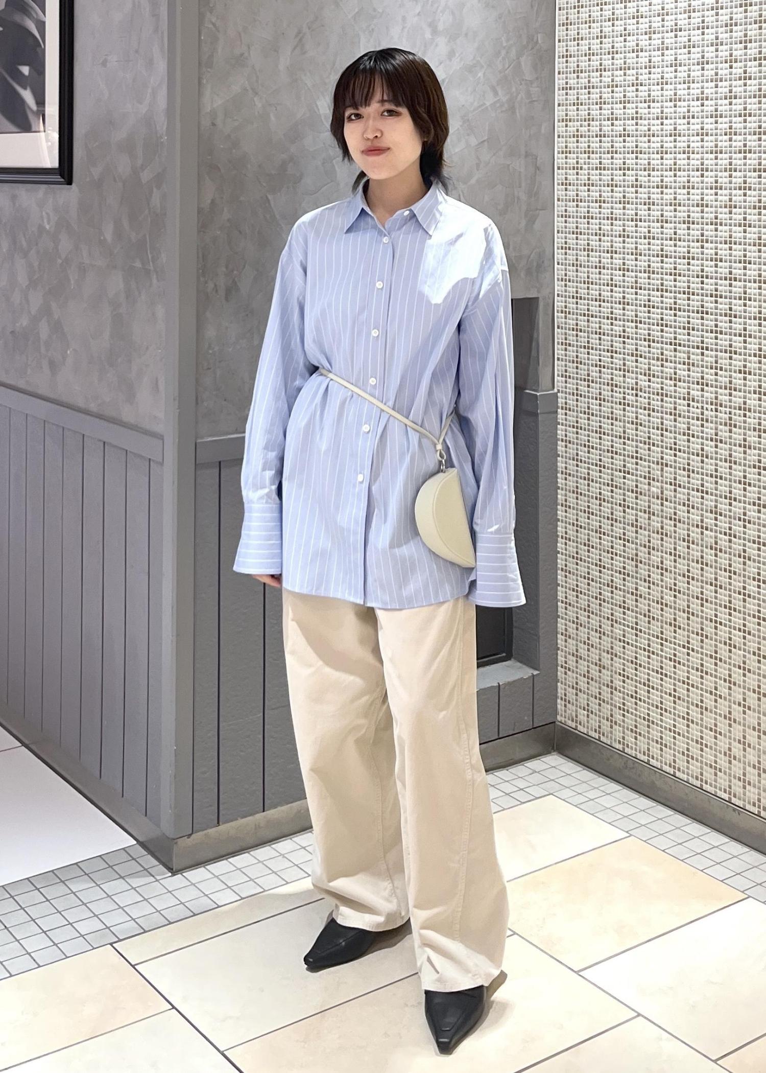 今回はPFTのチャームを腰巻きしたスタイルにしてみました。オーバーサイズシャツとよく合います◎ 私と同じ骨格ウェーブさんは特に、オーバーサイズのときに腰巻きすることでメリハリだせます!