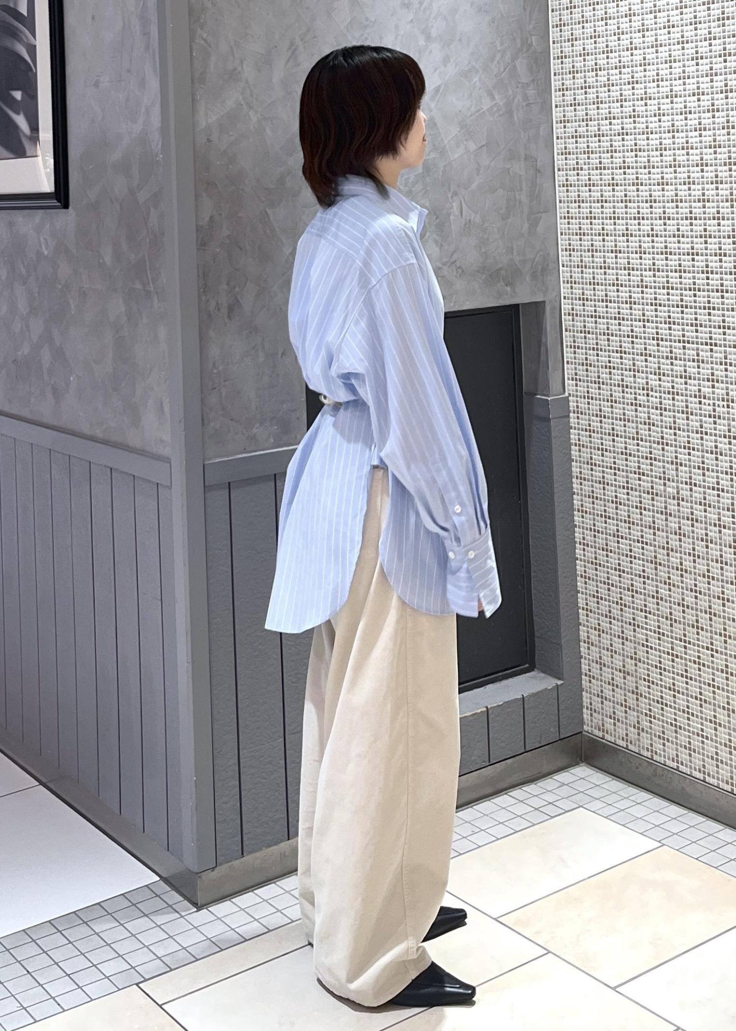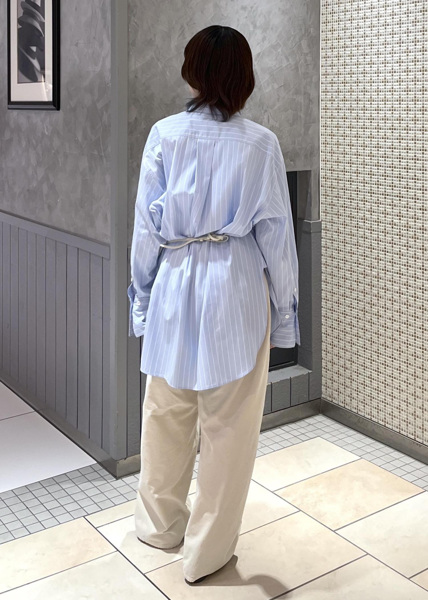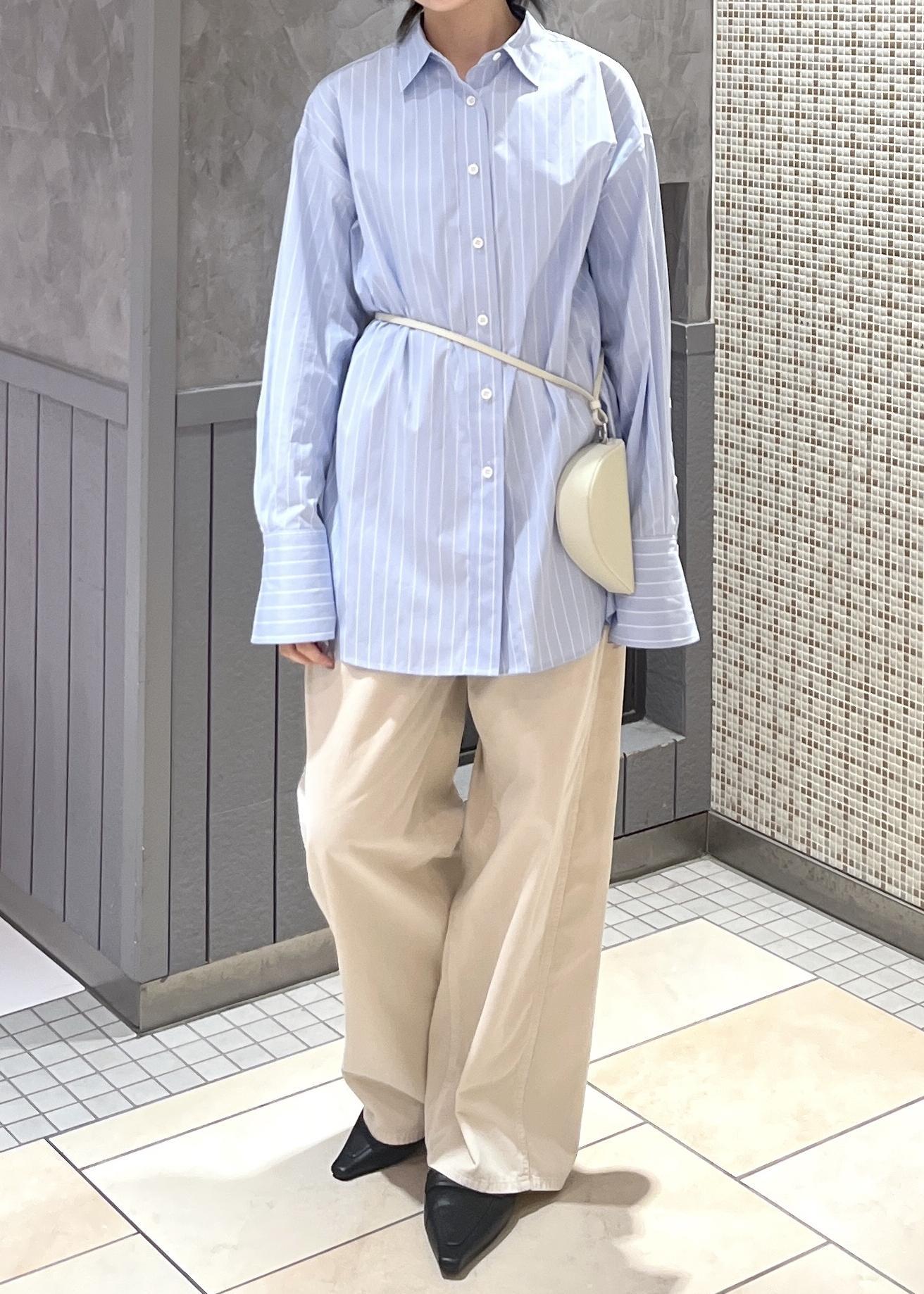 今回はPFTのチャームを腰巻きしたスタイルにしてみました。オーバーサイズシャツとよく合います◎ 私と同じ骨格ウェーブさんは特に、オーバーサイズのときに腰巻きすることでメリハリだせます!