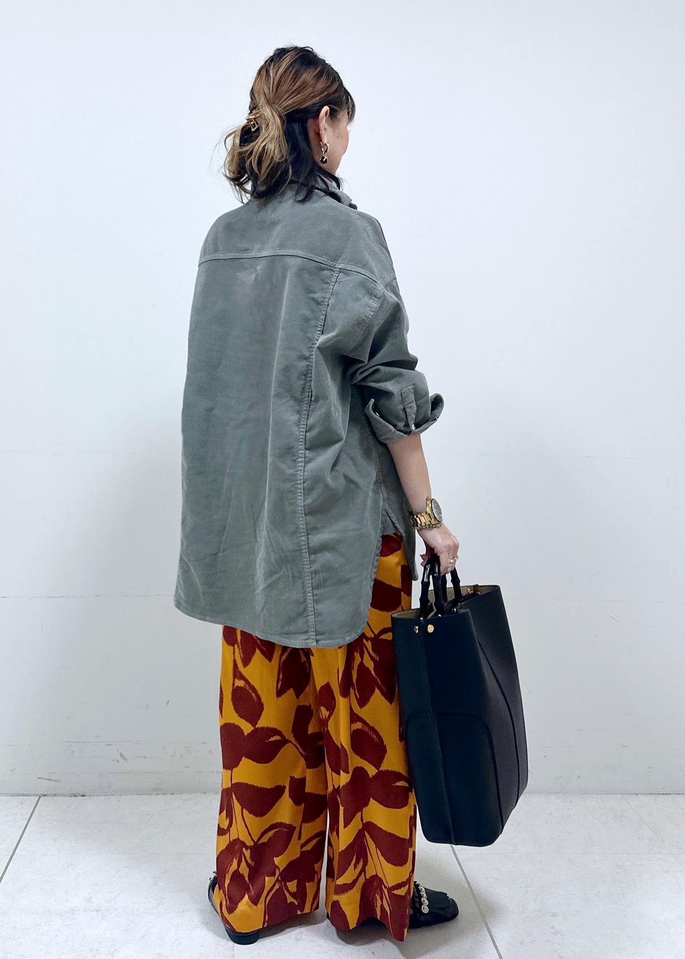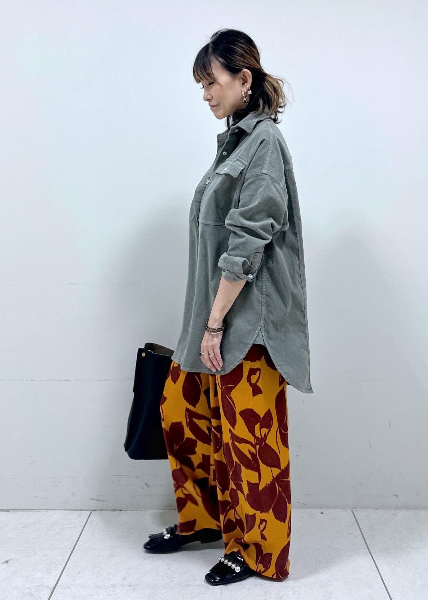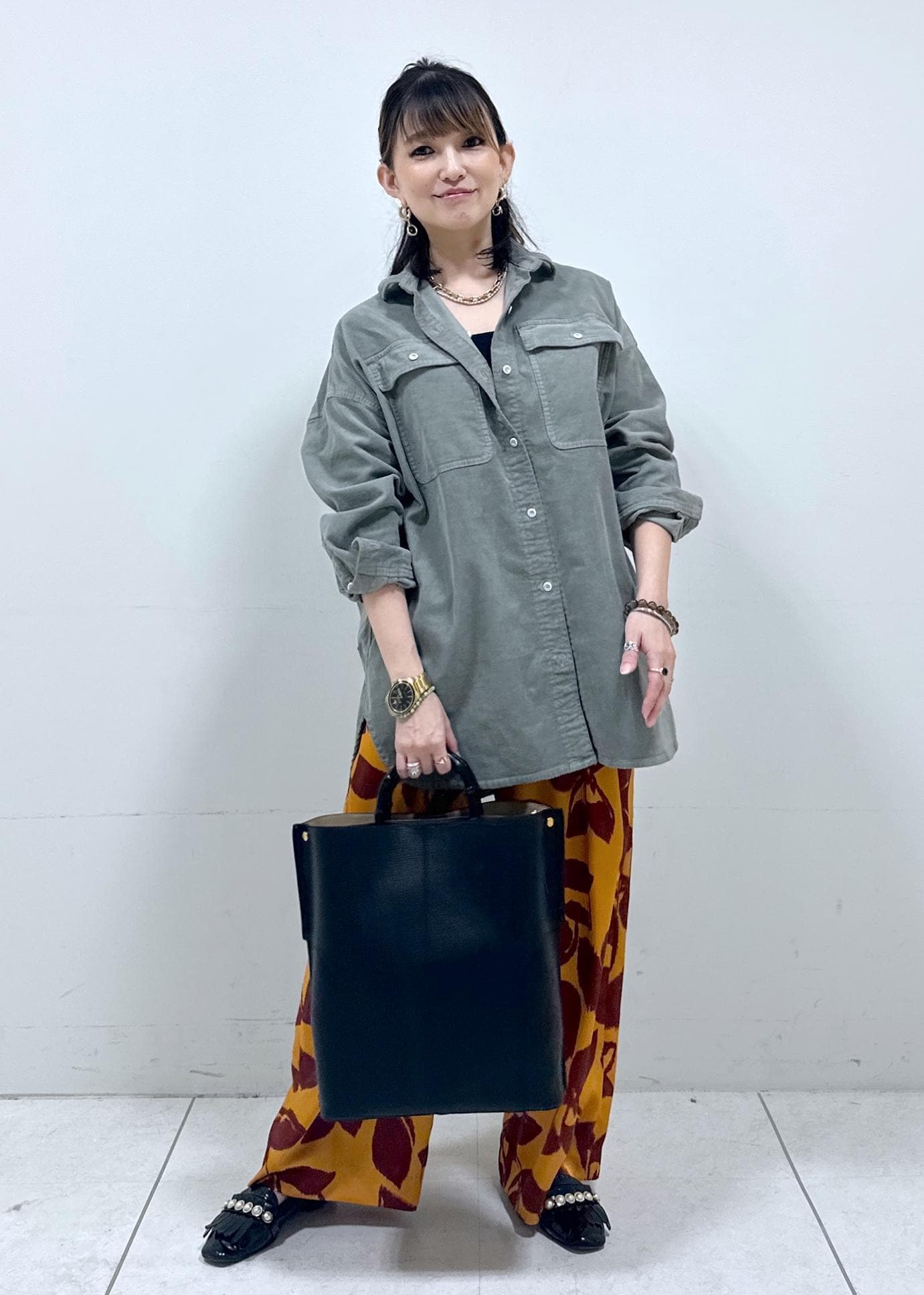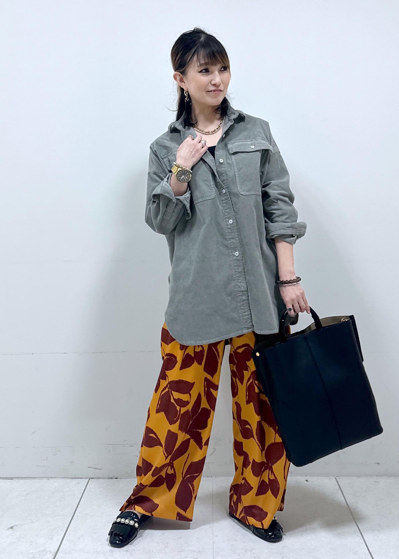 コーデュロイのオーバーサイズシャツで、秋らしいコーデにしました!