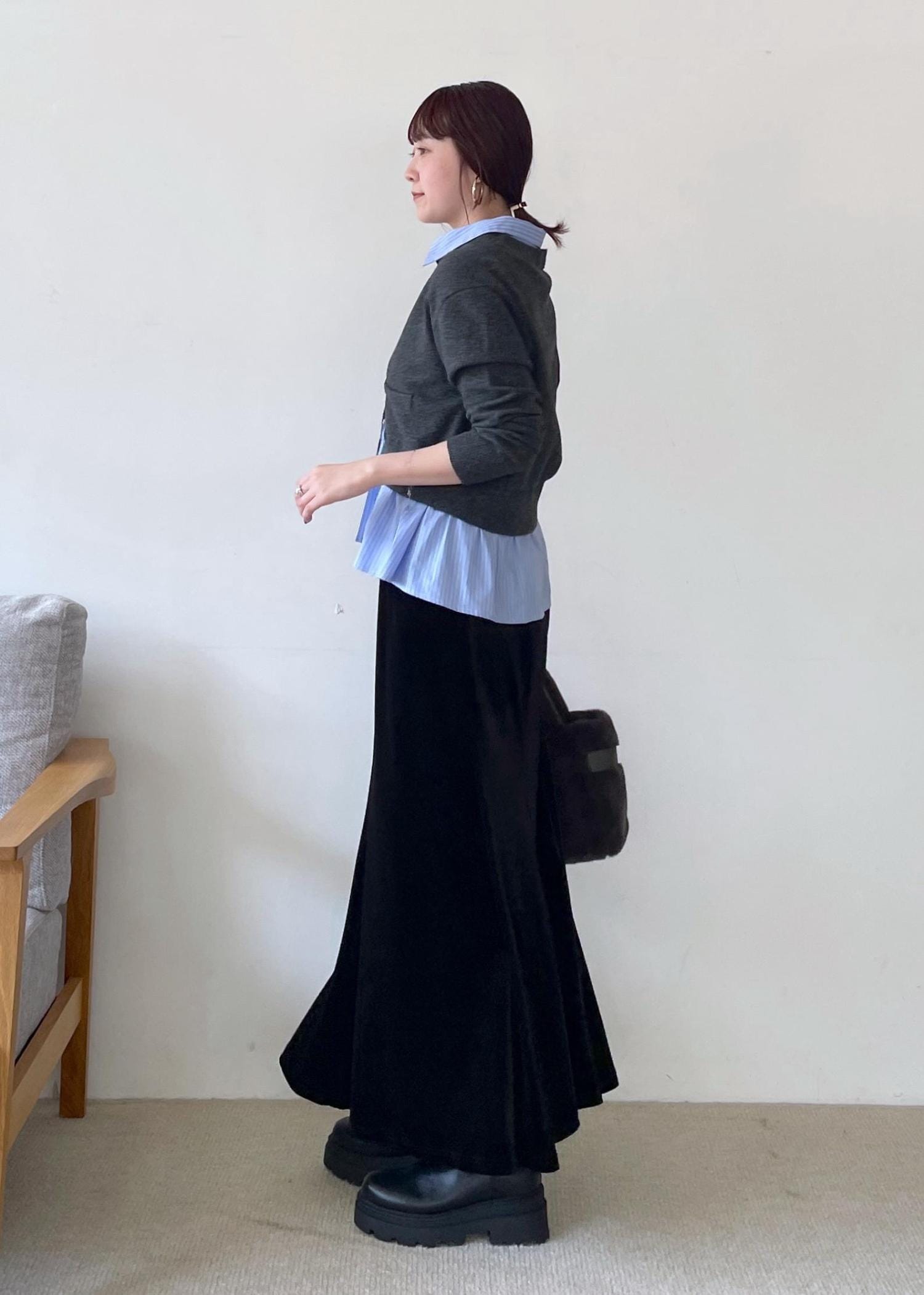 VISベロアナロースカートブラック / M¥6,589レビュー身長159cm/Mサイズ着用、トレンド感のあるしっかりロング丈で履けました◎ウエスト部分を1.2回折ってもシルエットは変わらないので、着丈の調節もしやすいです。ボディラインを綺麗に見せてくれるナローシルエット、ベロア生地で高見えもします❤︎