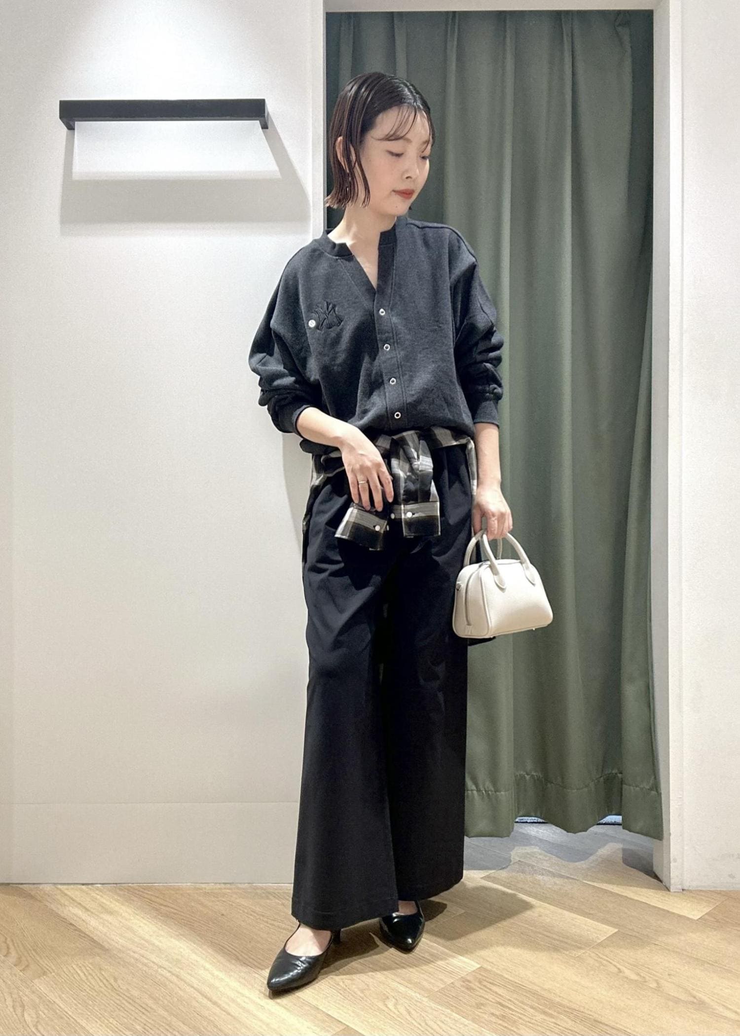 大人気のMLBカーディガンにブラックのパンツ、シャツでガラを追加してアクティブなコーディネートにしました♪