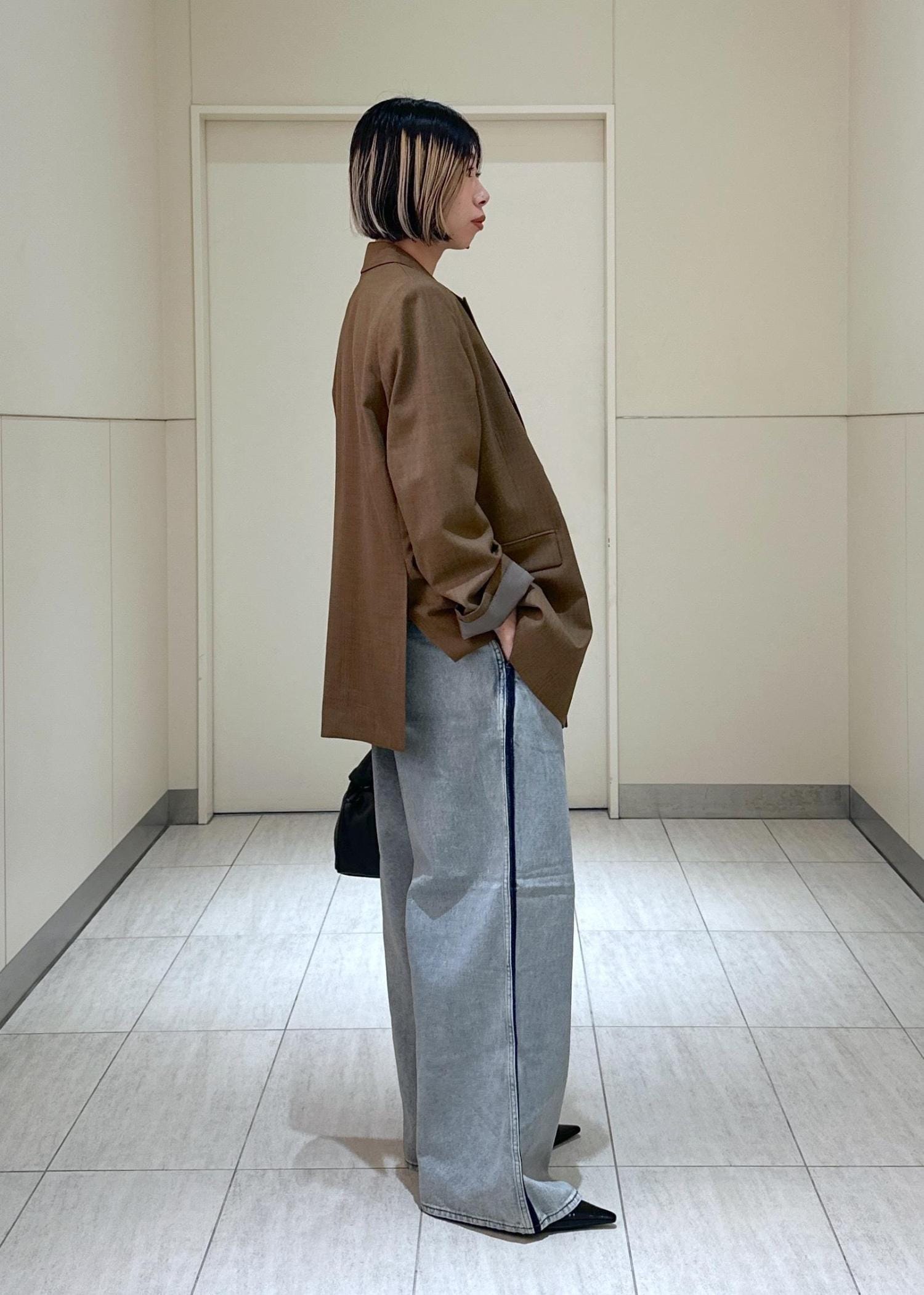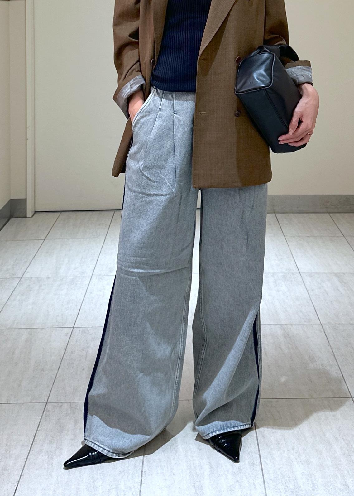 ドレスデニムパンツは新色が先日発売になり、試着してみたら前よりも長くなっていて36サイズでもいい長さで履くことが出来ました◎165cmで腰で落としてこの感じです!
