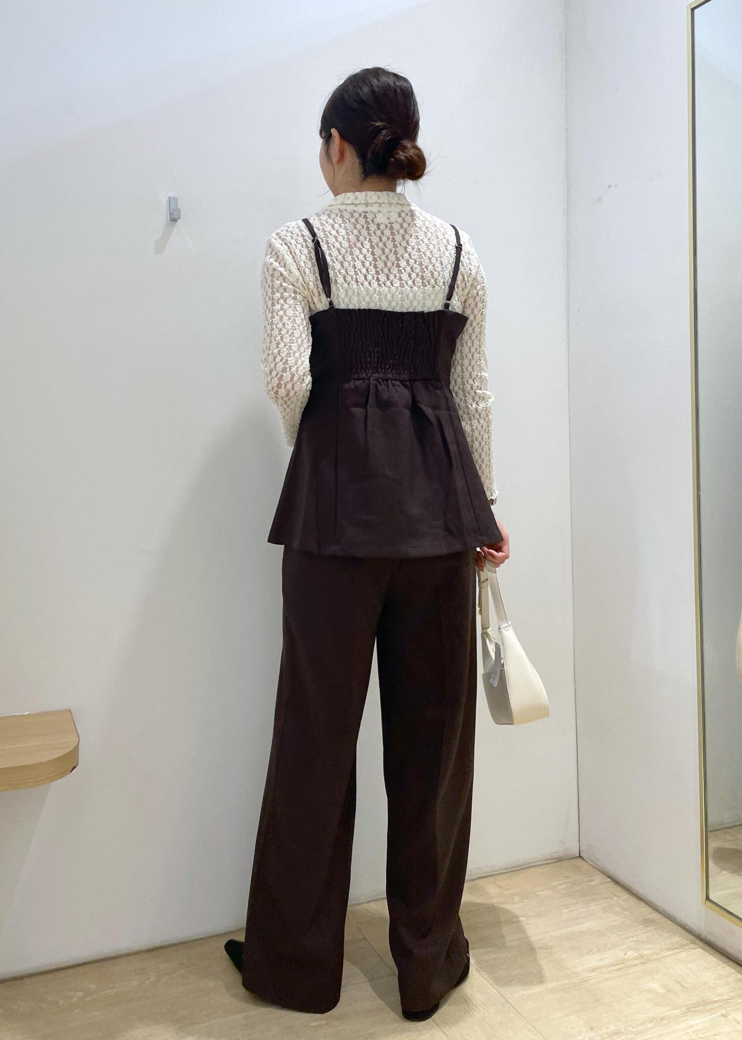 後ろがゴムになっているので着脱もしやすく、肋辺りからシュッとウエストが綺麗に見える形になっています!変に膨らまないので、骨ストさんでも◎ -