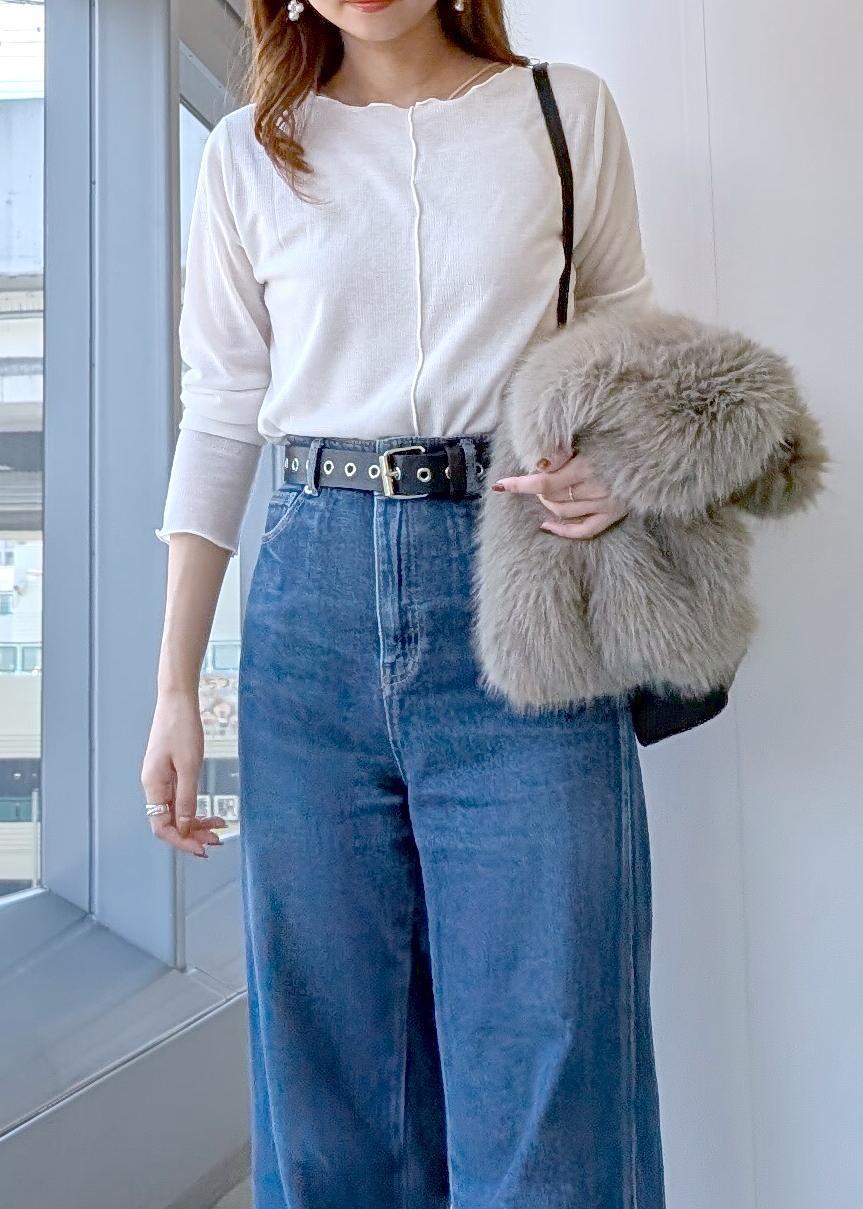 ハイウエストなので短め丈やトップスインする合わせがおすすめです。