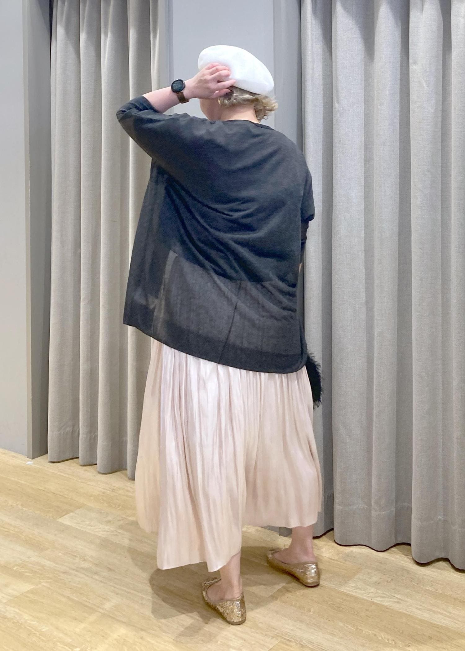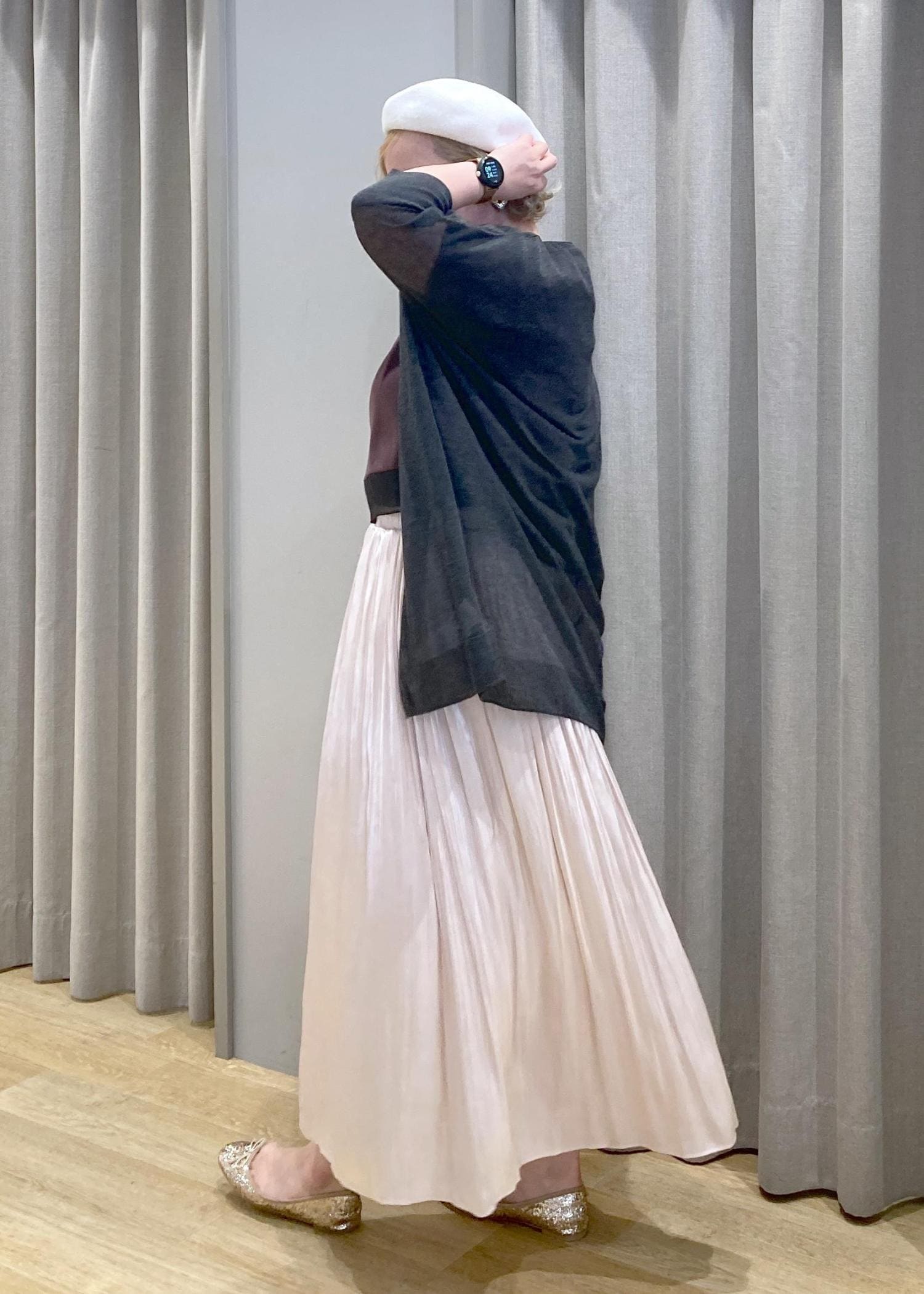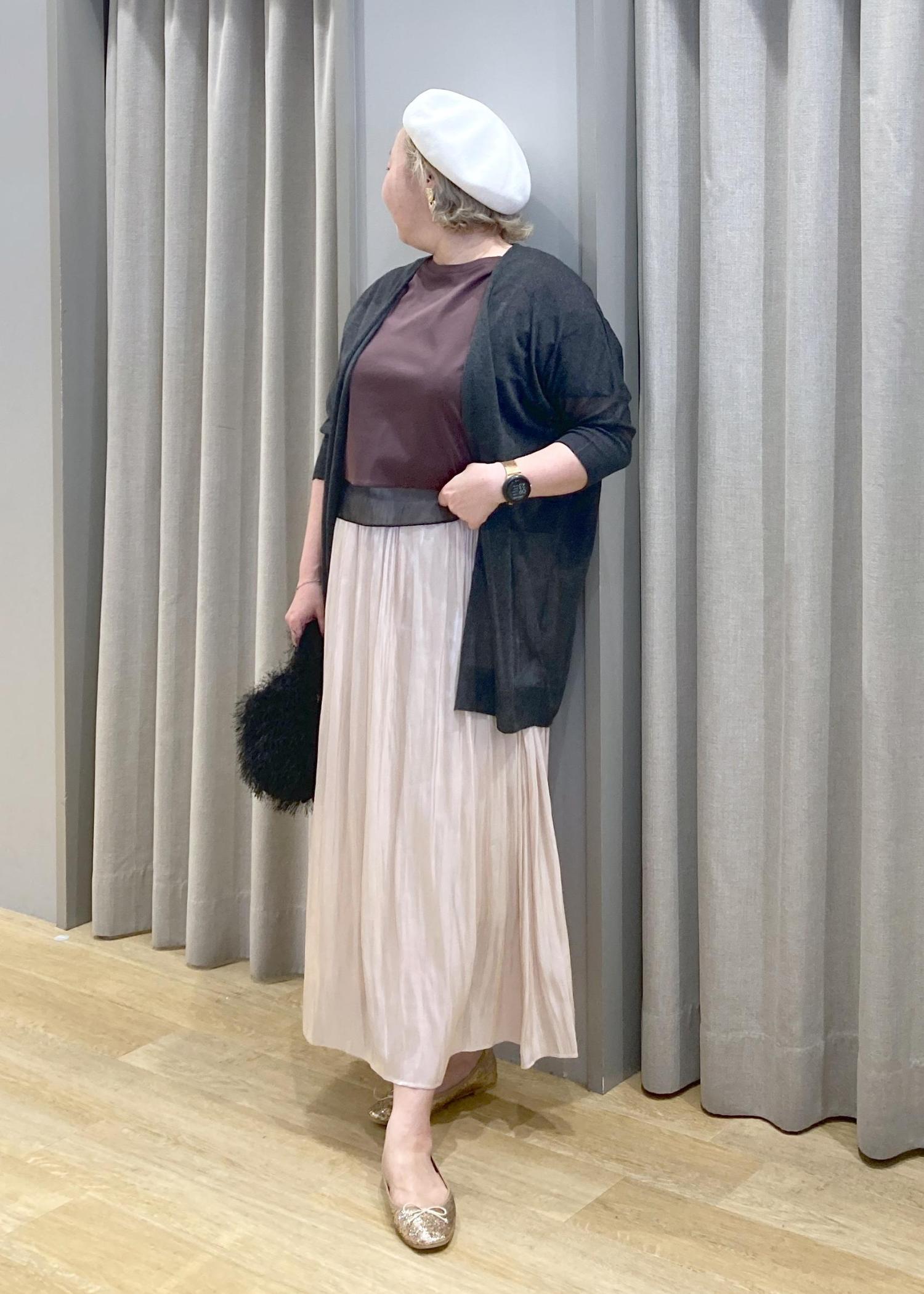 気になる腰まわりもすっきり見せてくれるプリーツスカートは、体型カバーの強い味方です。