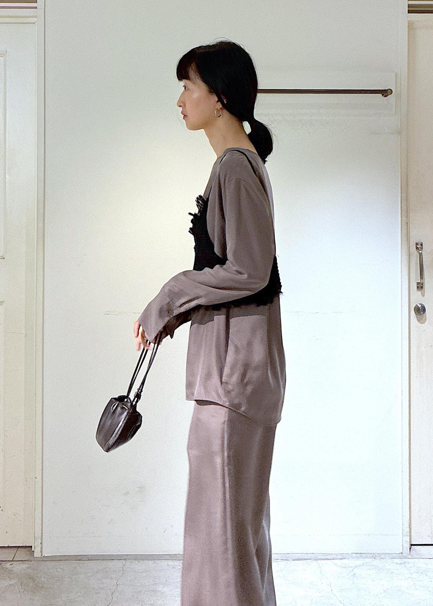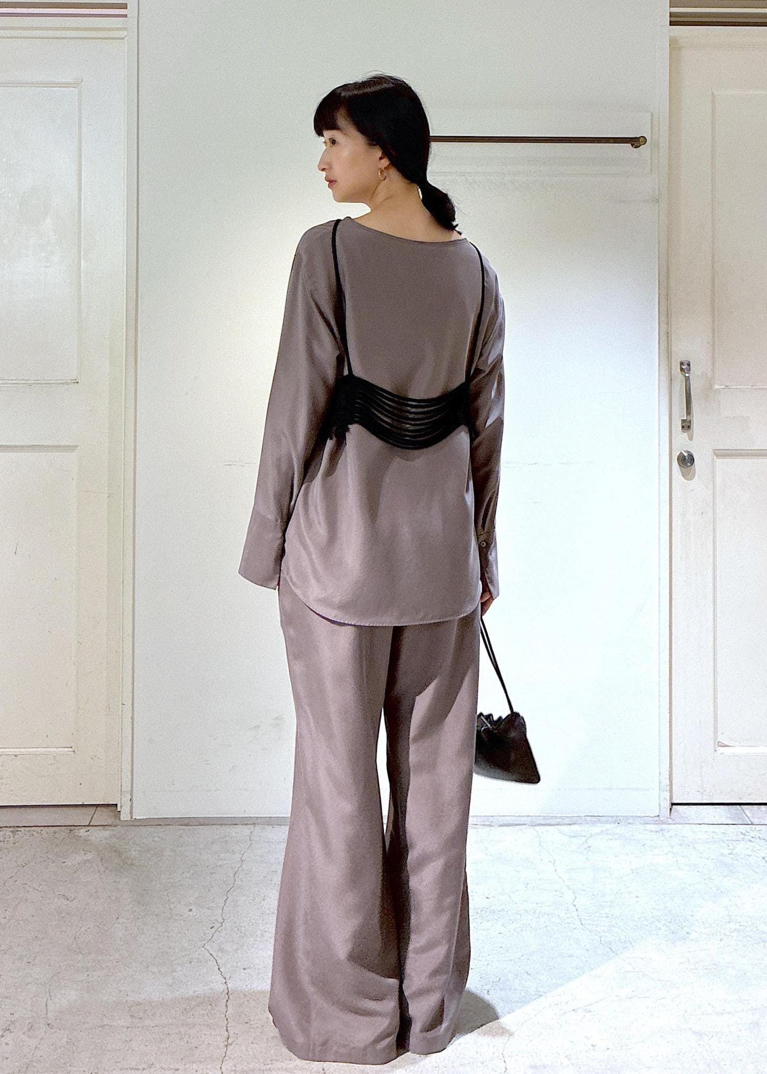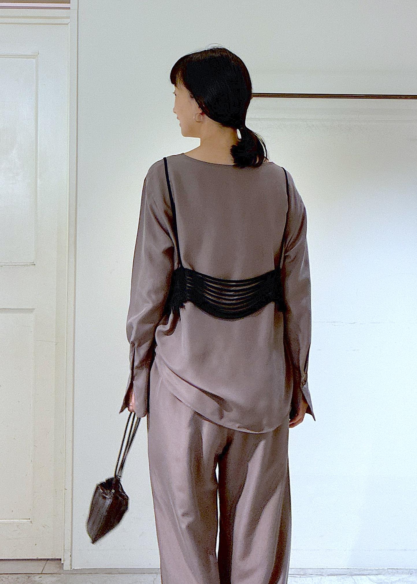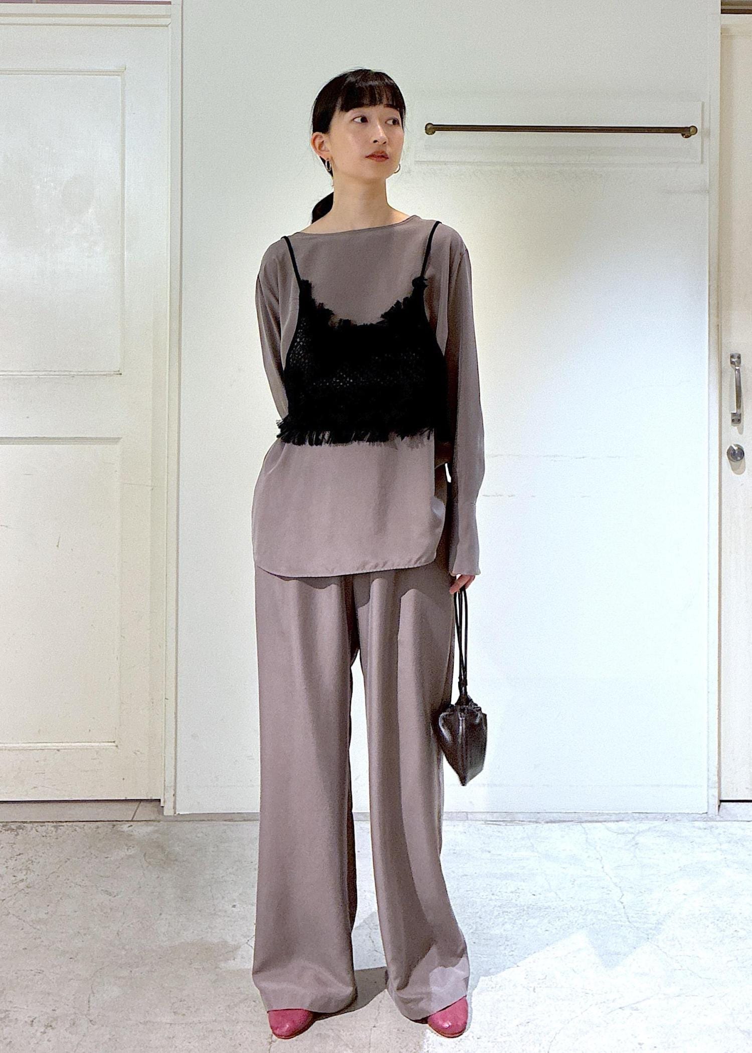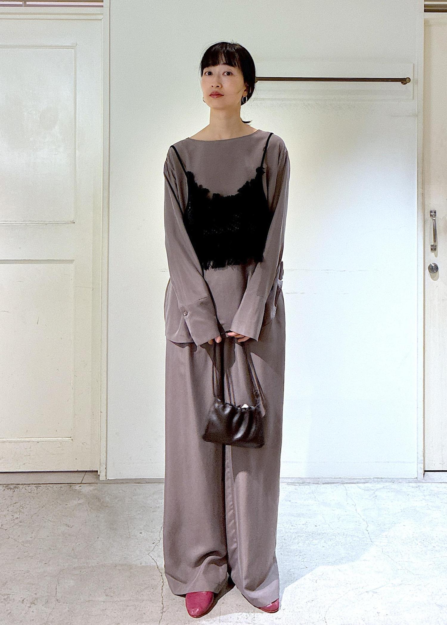 gentle silkブラウスとパンツのセットアップにレースキャミをプラスしました。