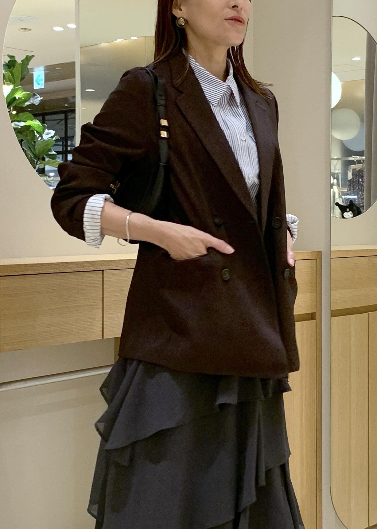 VIS【美easy】ウーリッシュダブルブレストテーラードジャケット【セットアップ対応/洗える】ダークブラウン / M¥8,899レビューWボタンでも、比較的コンパクトに着れるジャケットです。裏地が付いているので、滑りが良く着脱しやすいです。襟のカットも綺麗で胸元シルエットがスッキリ!