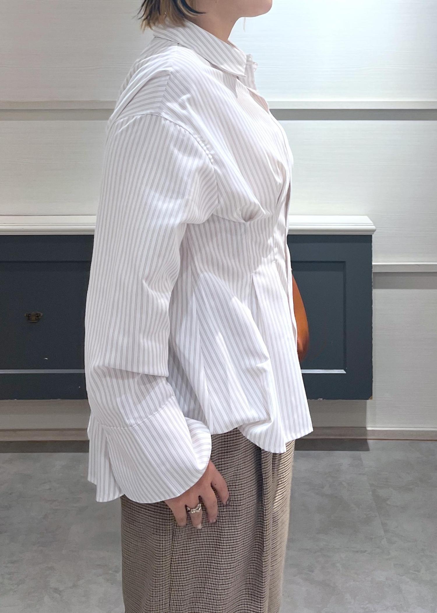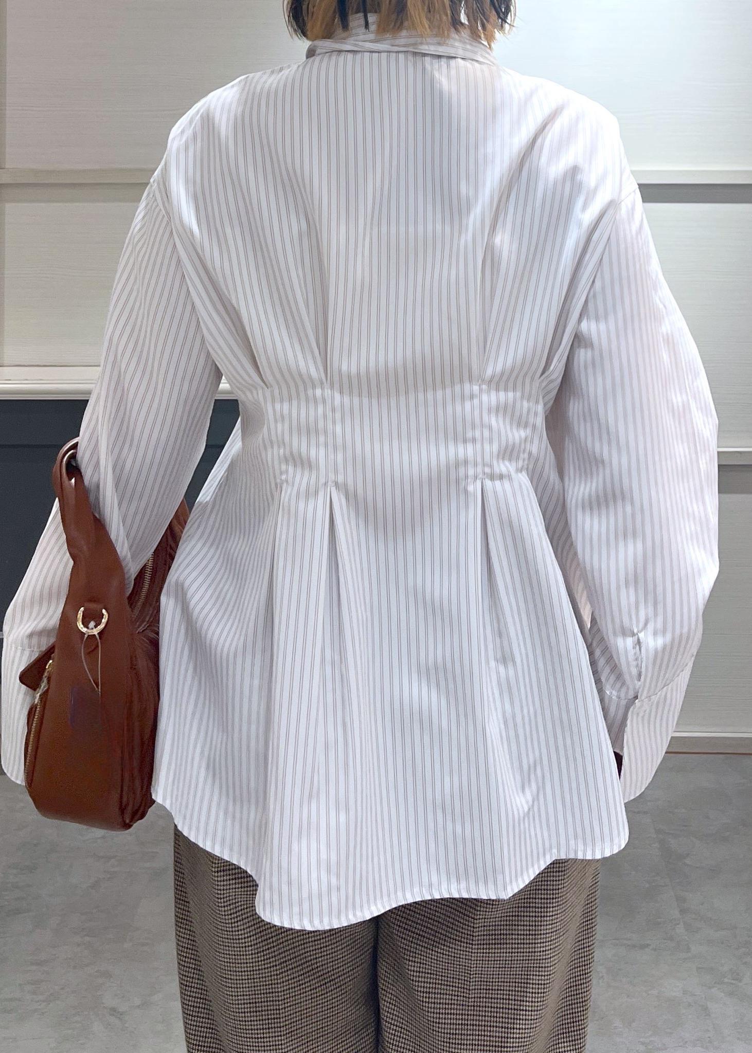 ゆったりシルエットのストライプシャツに、