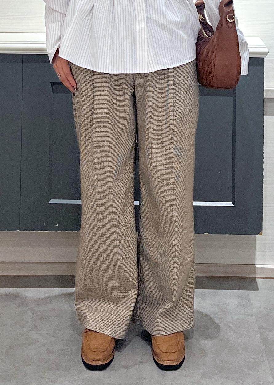 チェック柄のワイドパンツを合わせたリラックススタイル☆