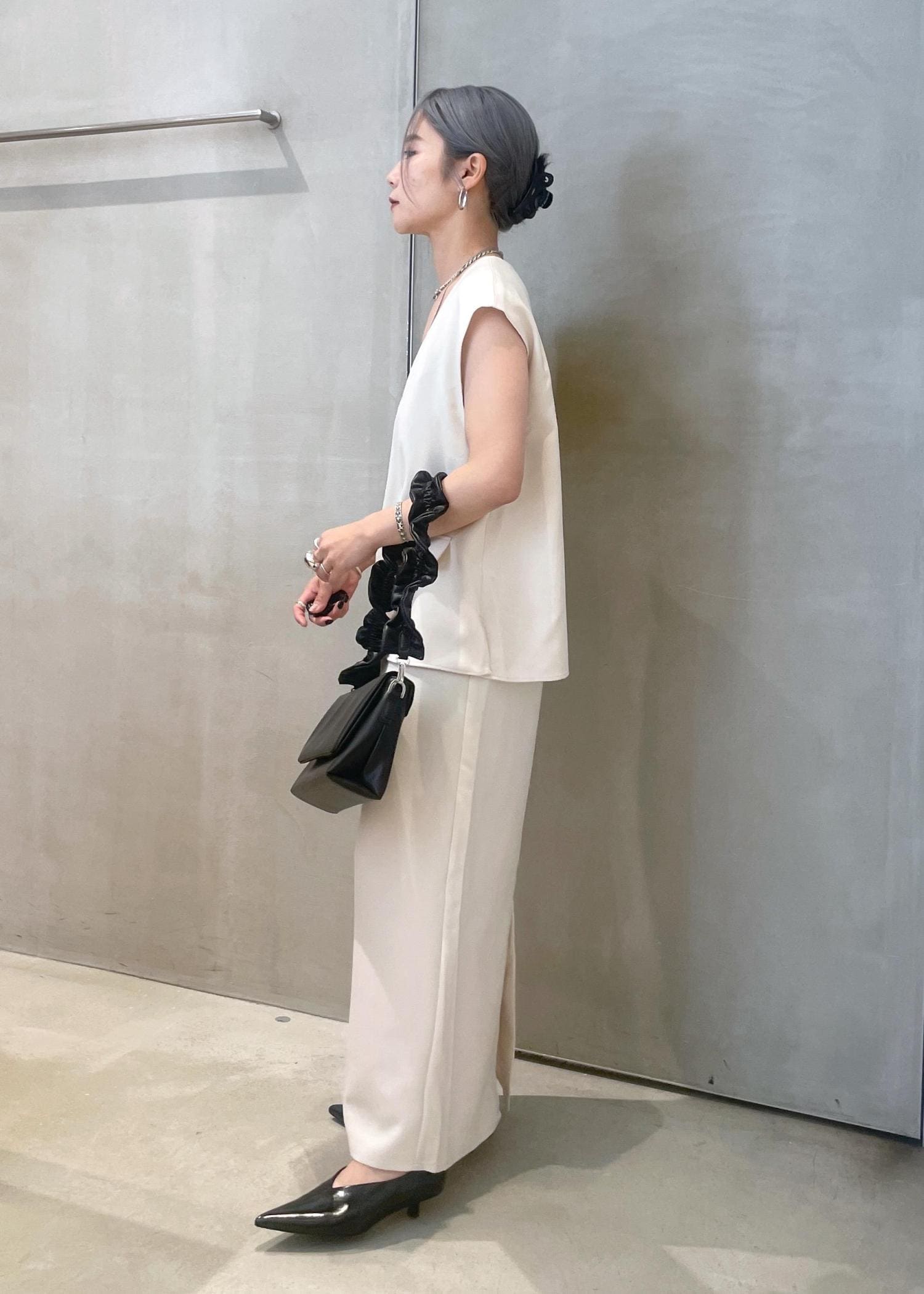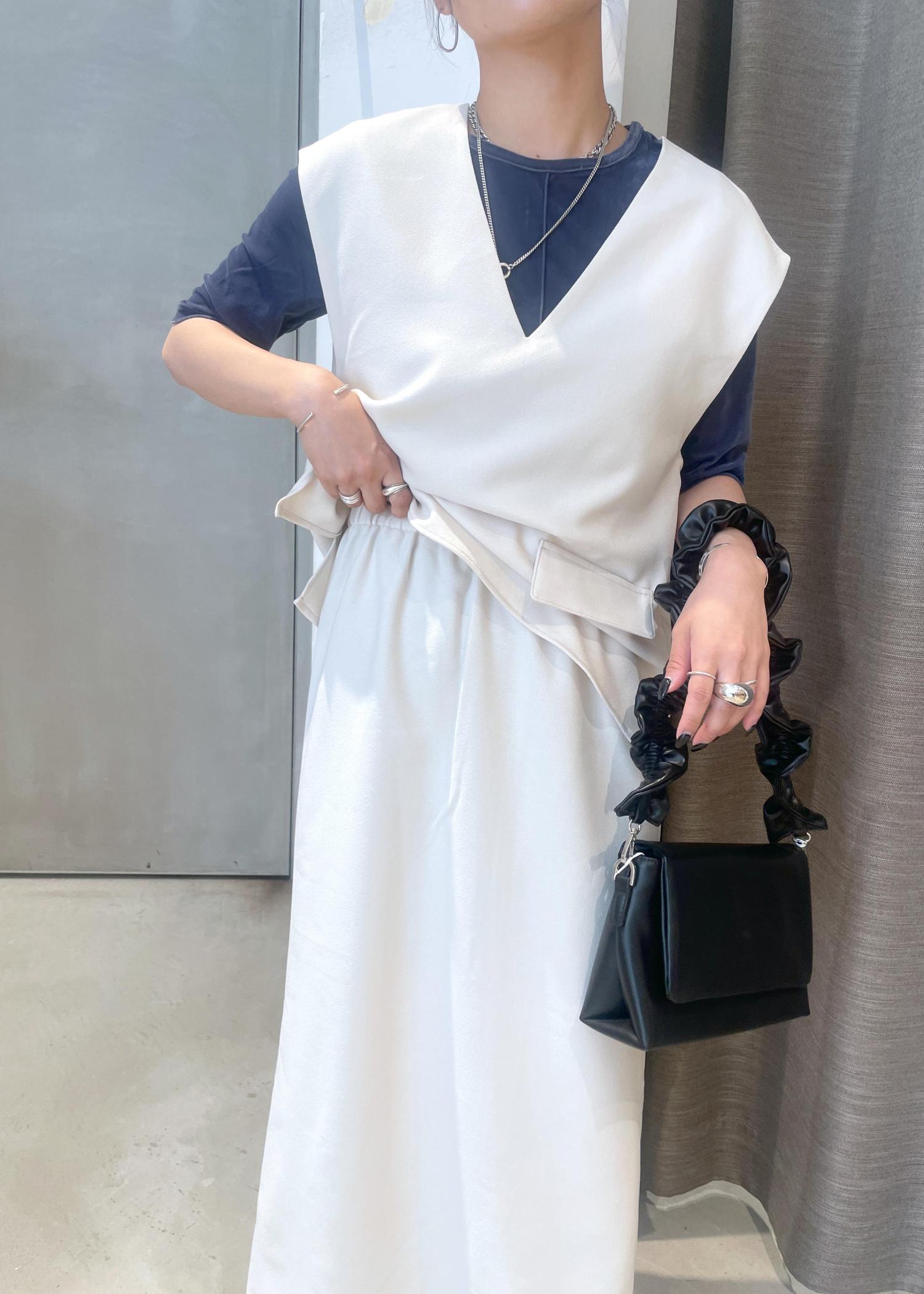 ノースリで涼しく、タイトなニットをインナーに重ねて秋から冬にかけてもお召しいただけるオールシーズン対応可能なワンピースです。