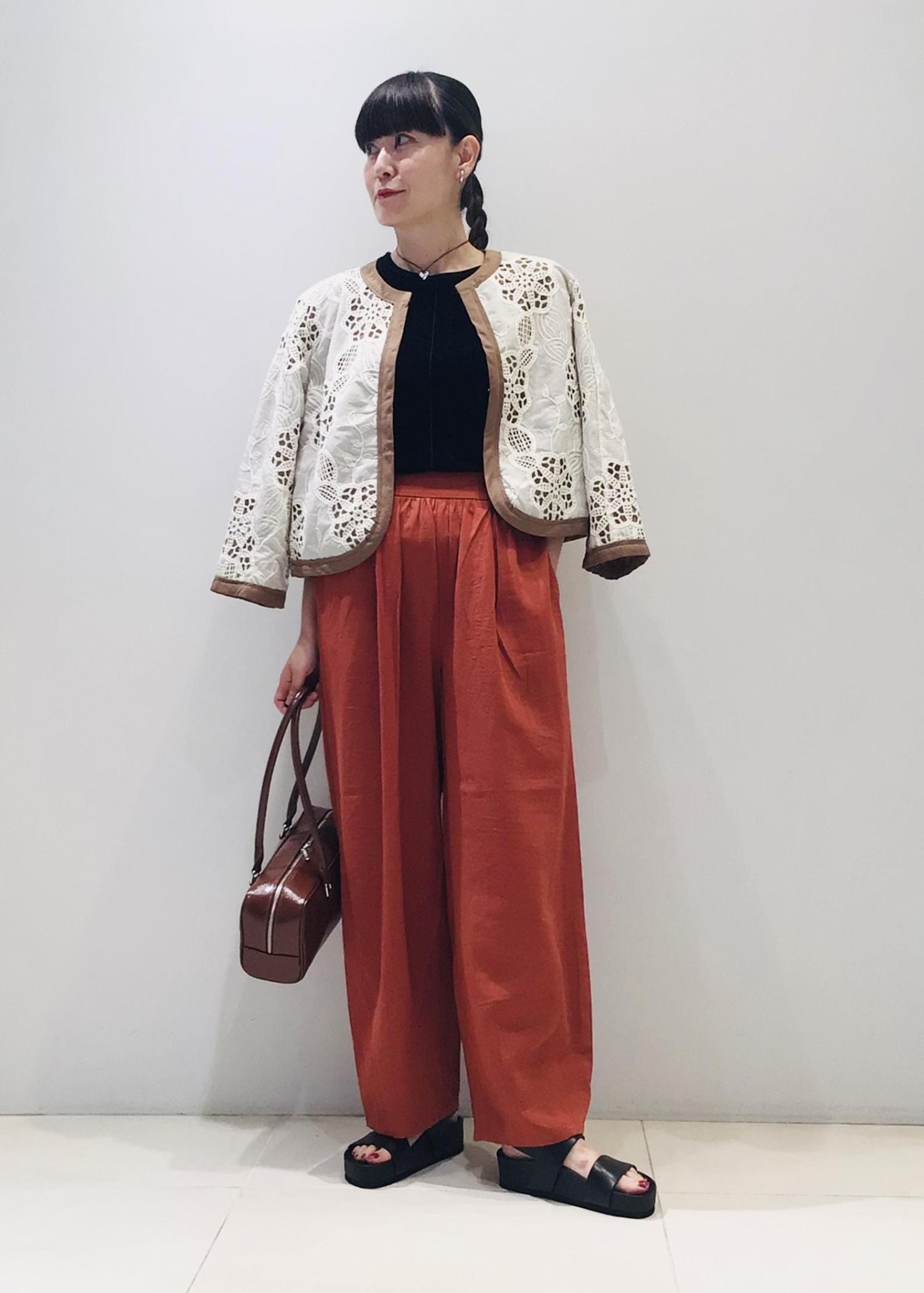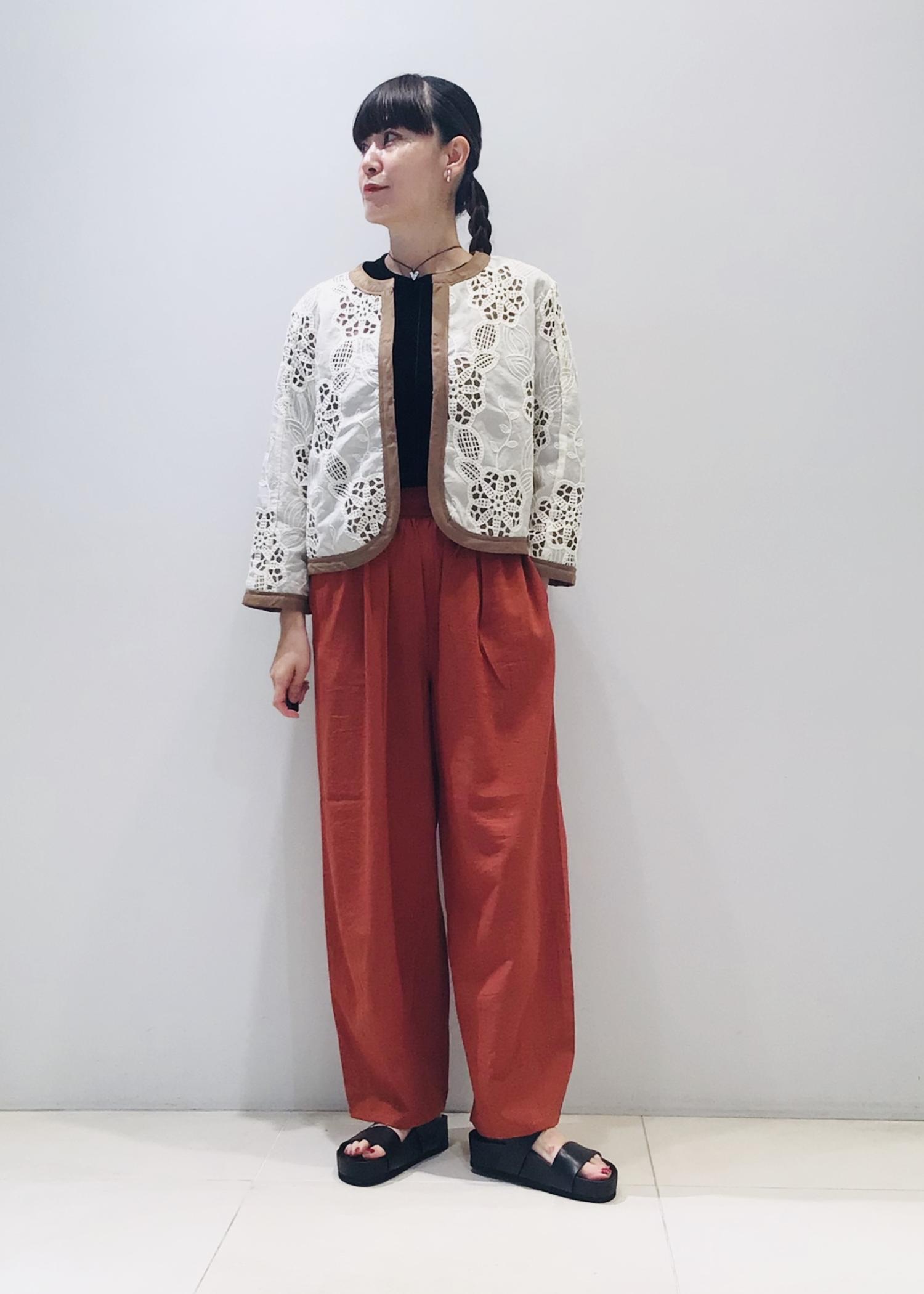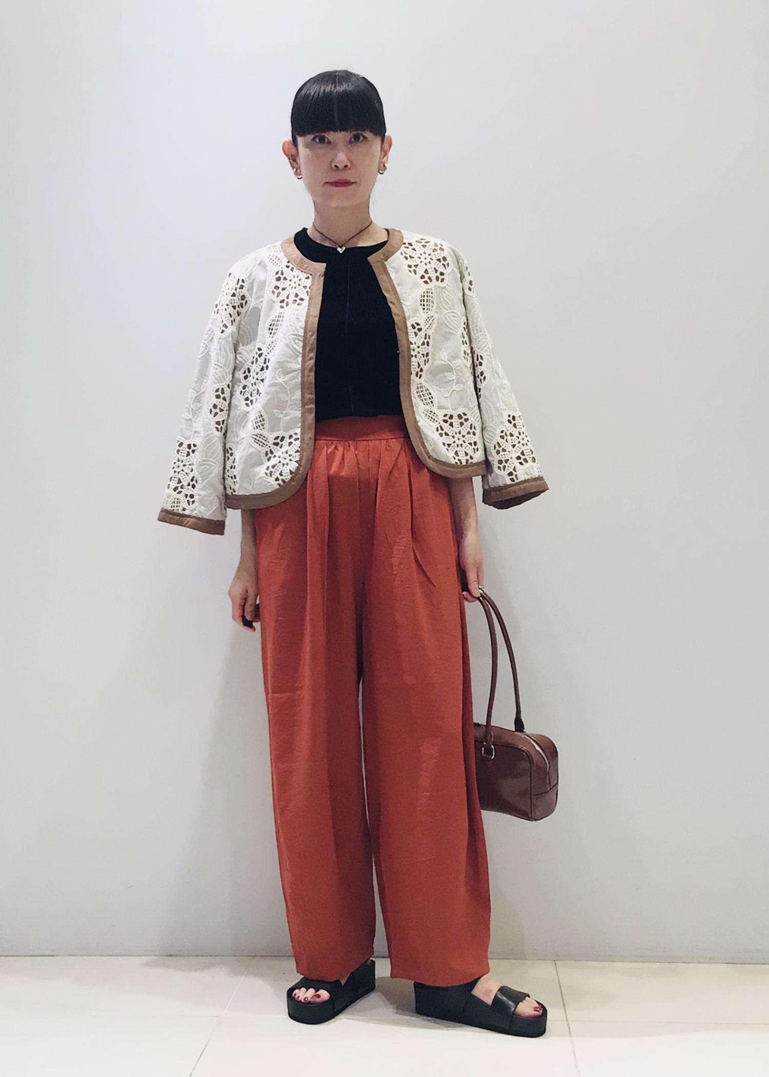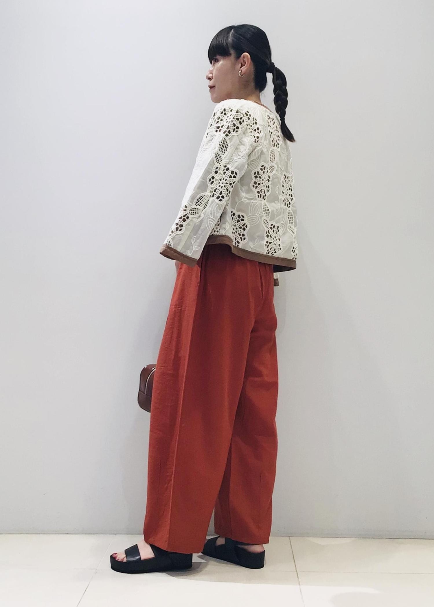 今日はレンガ色の麻パンツとの合わせで秋コーデに♩