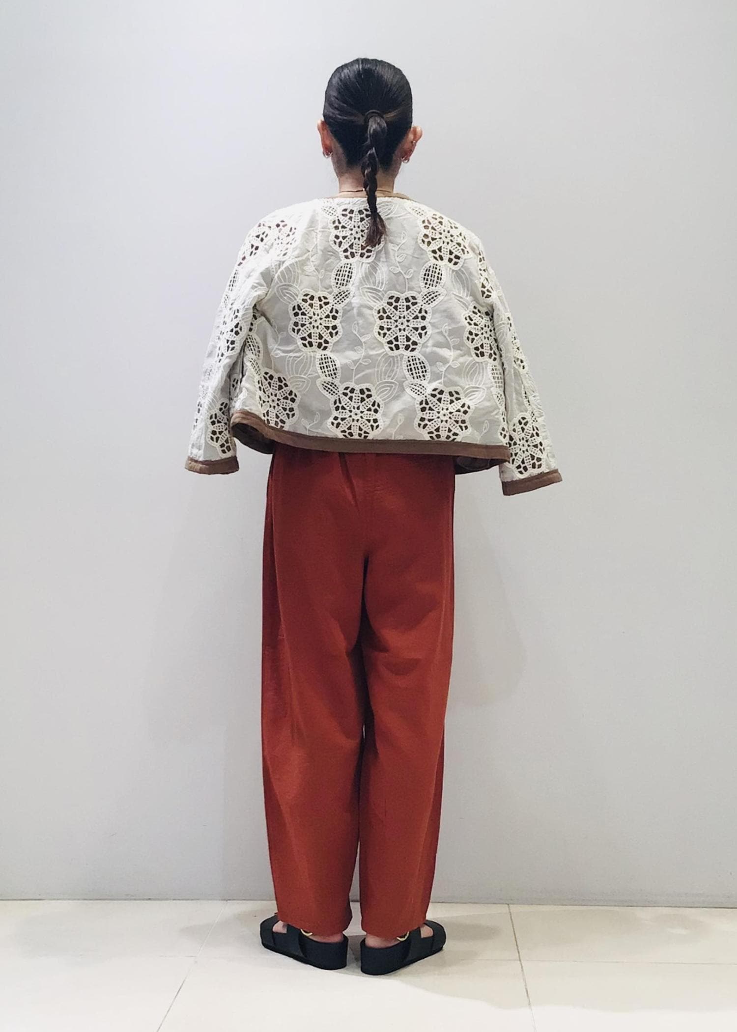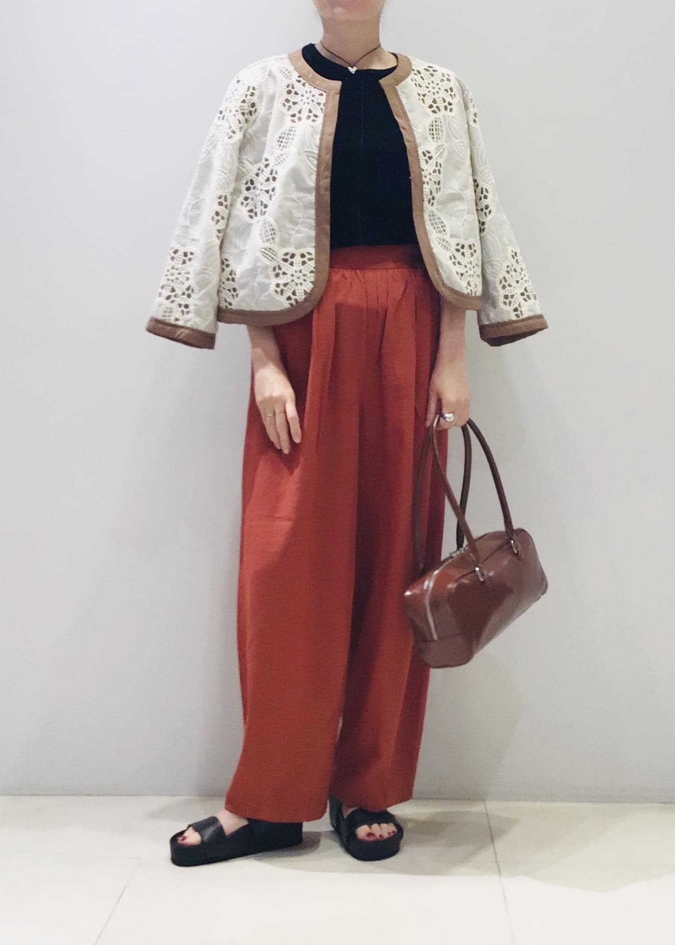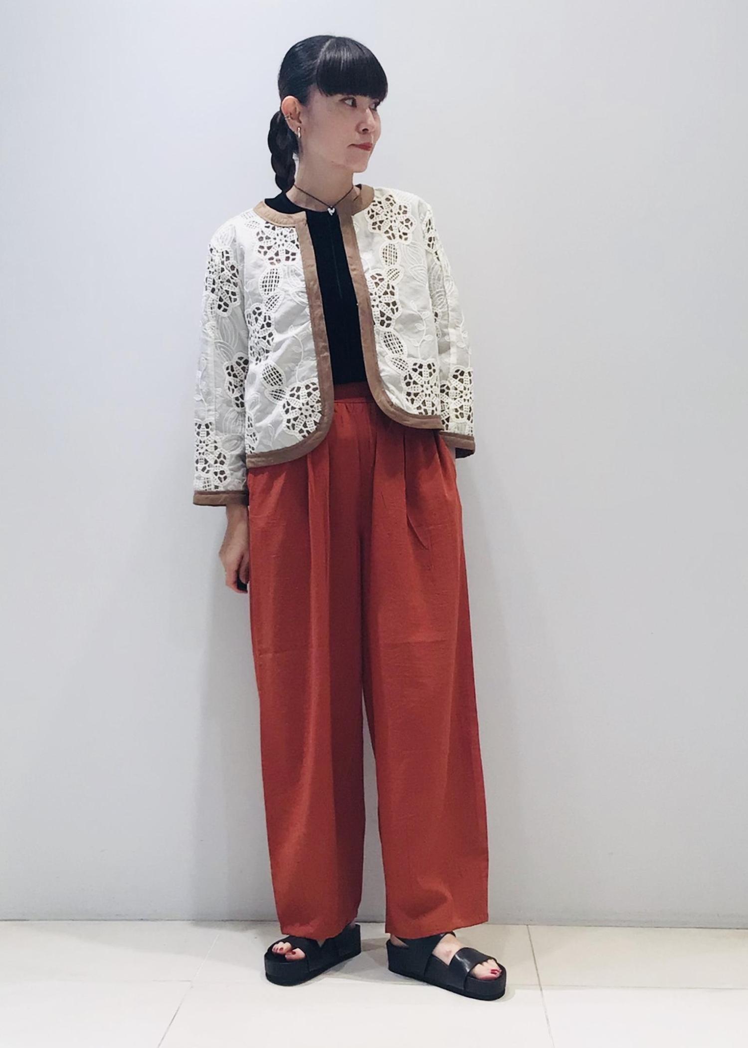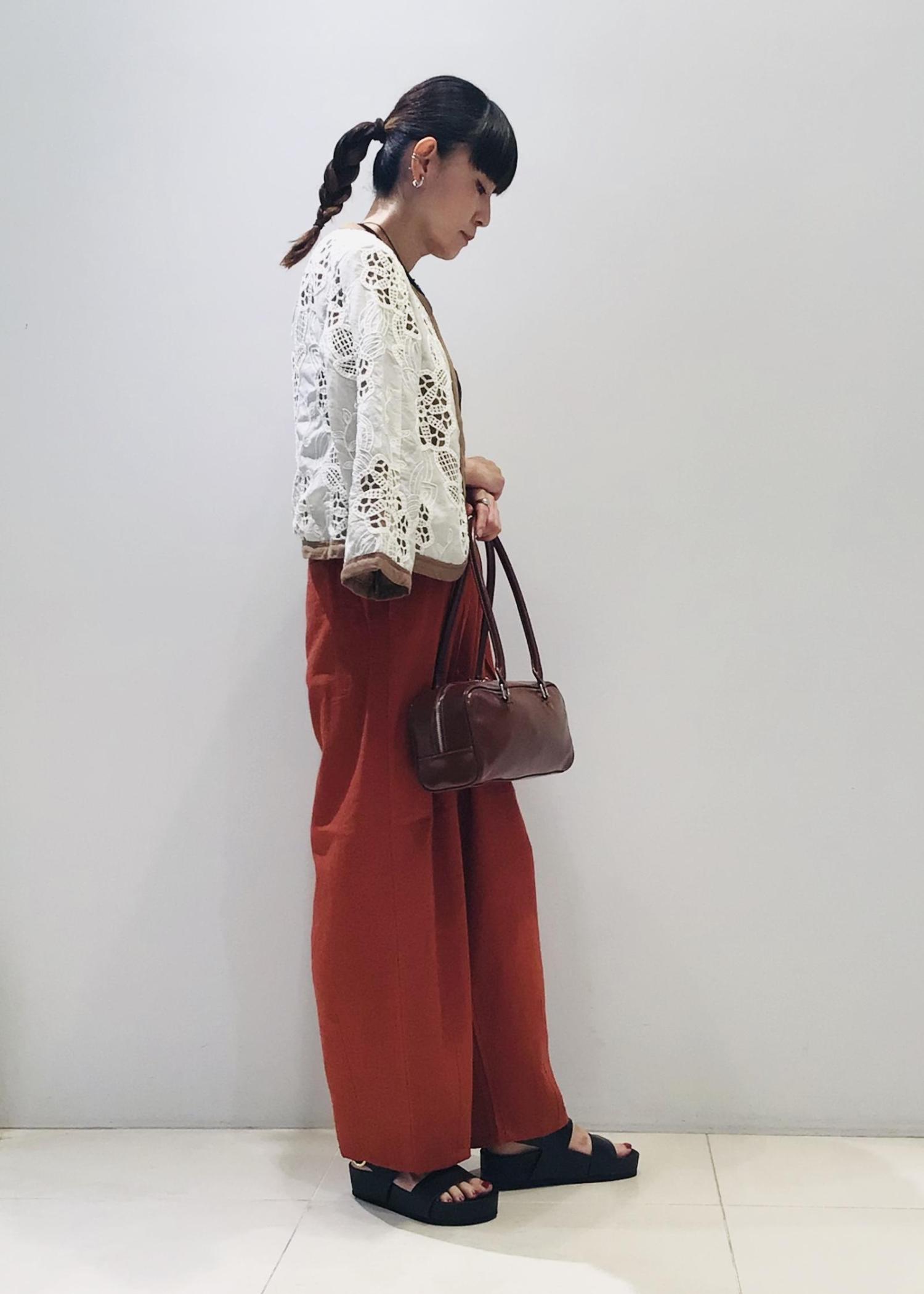 今日はレンガ色の麻パンツとの合わせで秋コーデに♩