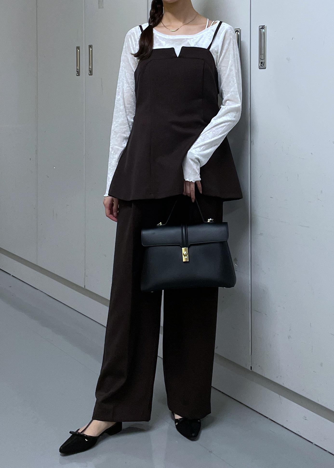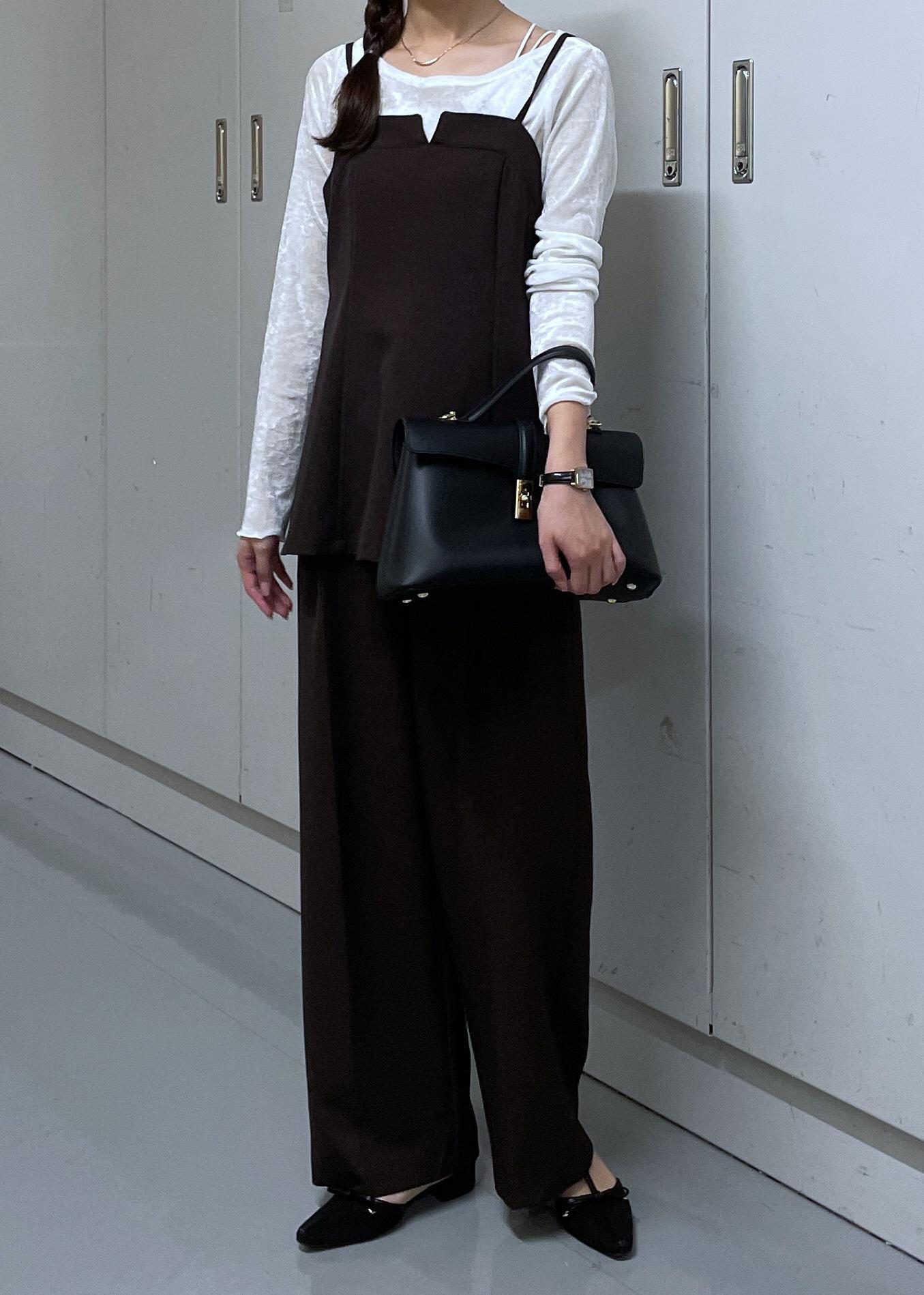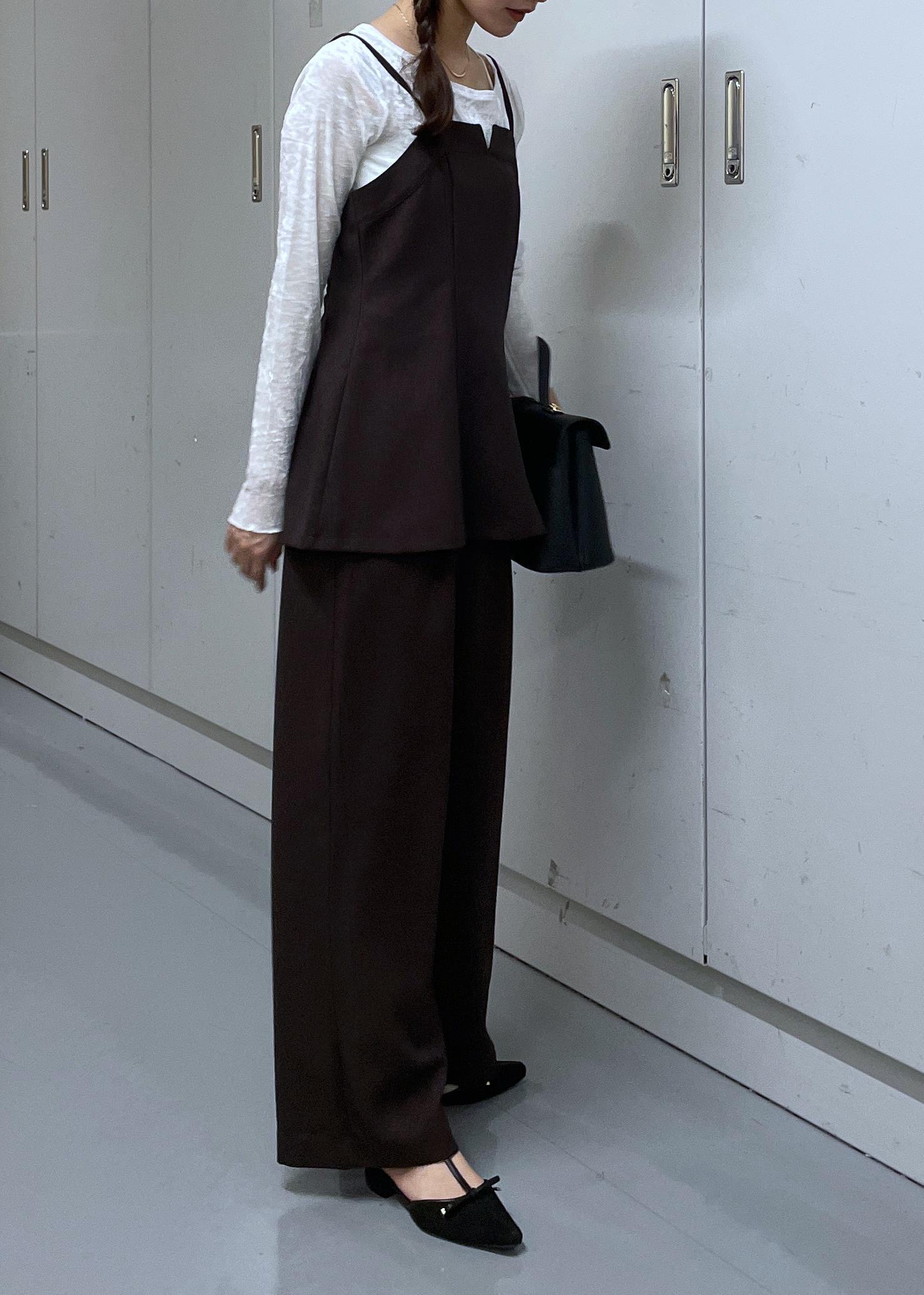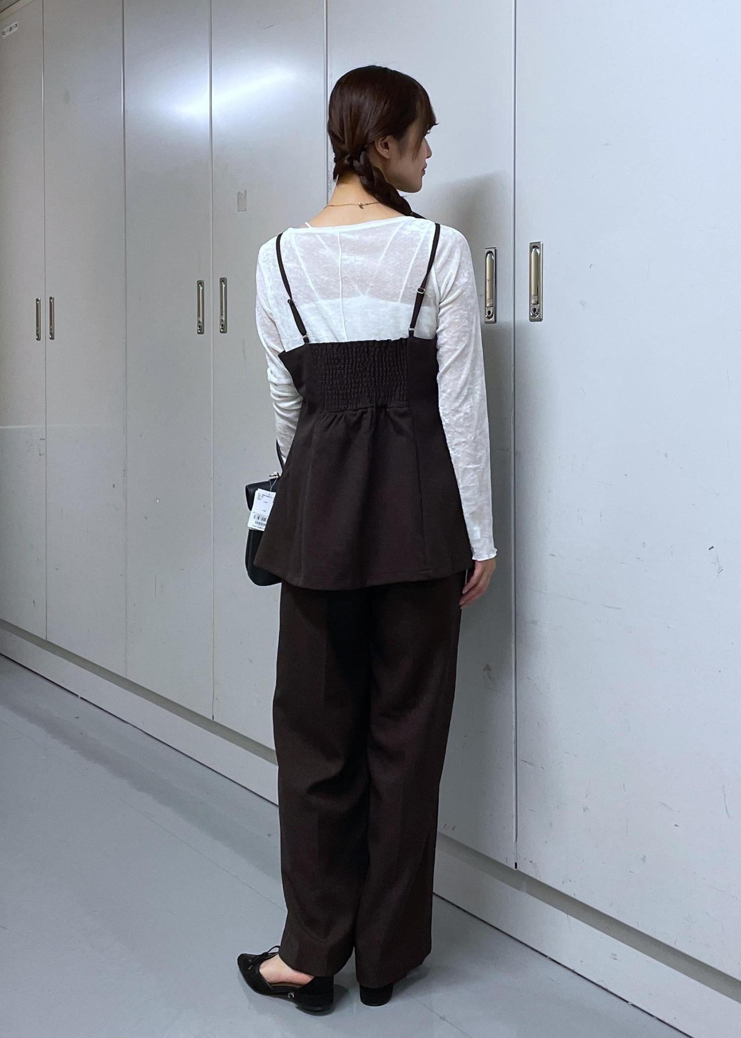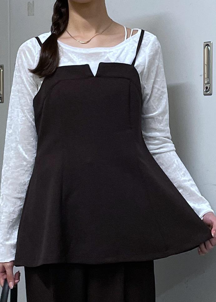 VIS【美easy】ウーリッシュチュニック丈ビスチェ【セットアップ対応/洗える】ダークブラウン / F¥6,589レビュー肩紐で調節ができるので高身長の私でも安心して着ることができました。