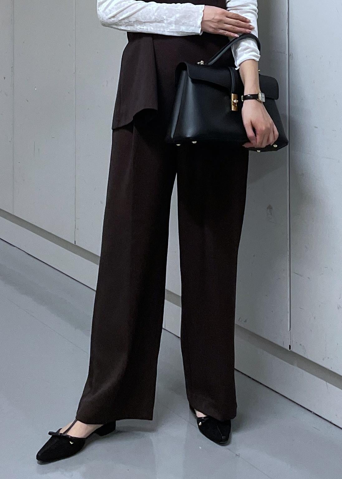 VIS【美easy】ウーリッシュワンタックワイドパンツ【セットアップ対応/洗える】ダークブラウン / M¥6,589レビュー167cm、骨格ウェーブの私でMサイズがちょうどよく踵が隠れるぐらいの長さでした。サイドにボタンがあるのでウエスト調節ができるのがよかったです◎