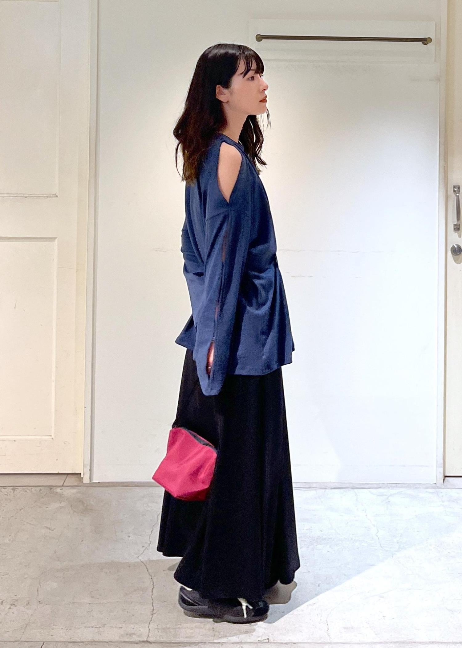 柔らかいコットン素材。袖に穴が空いており、ヘルシーに肌見せができます。インナーと合わせてレイヤードもおすすめです。 -