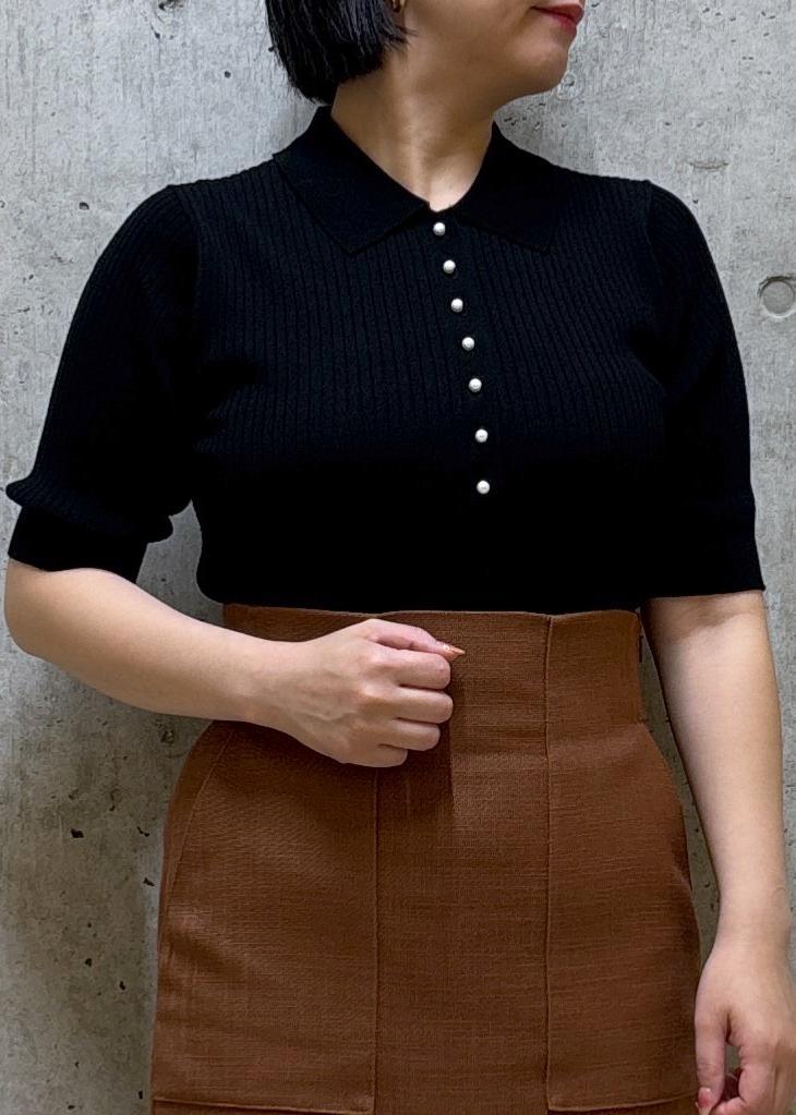 ROPÉパール釦ポロニット/イージーケアブラック / F¥19,800レビュー152cmでサイズ着用