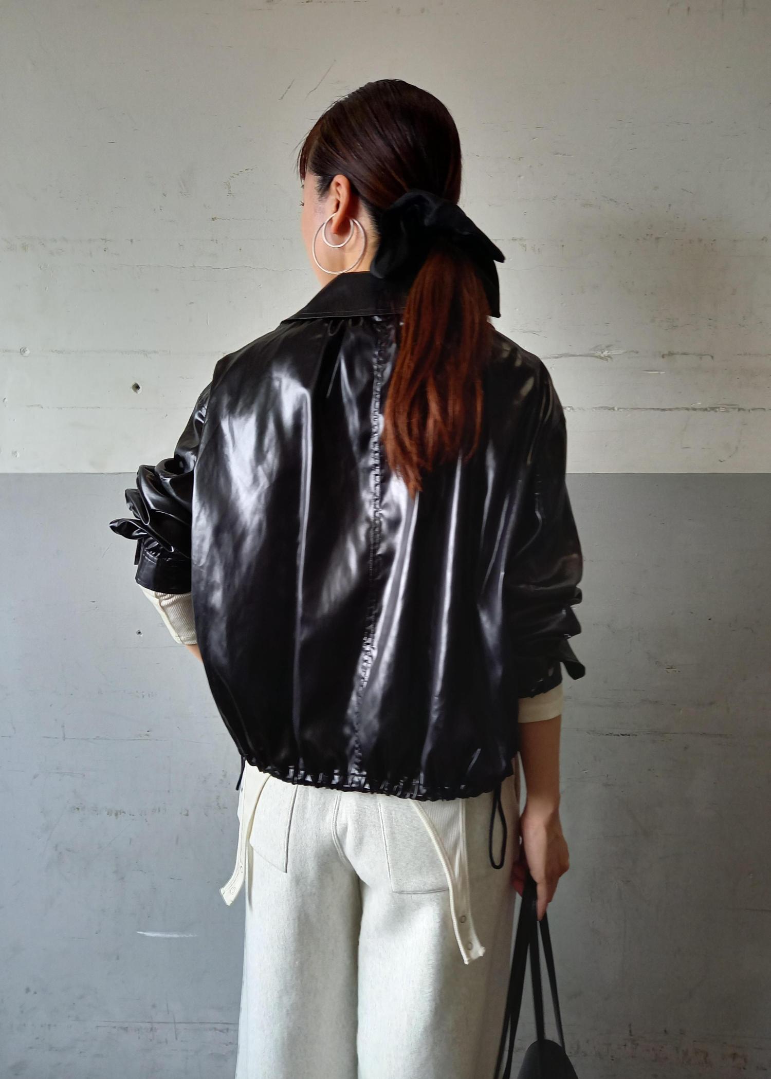 ADAM ET ROPÉ FEMMEレザーライクサテンブルゾンブラック / F¥15,840レビュー一見レザーのような風合いなのですが、素材はポリエステルなのでご自宅でのお手入れも可能✨
