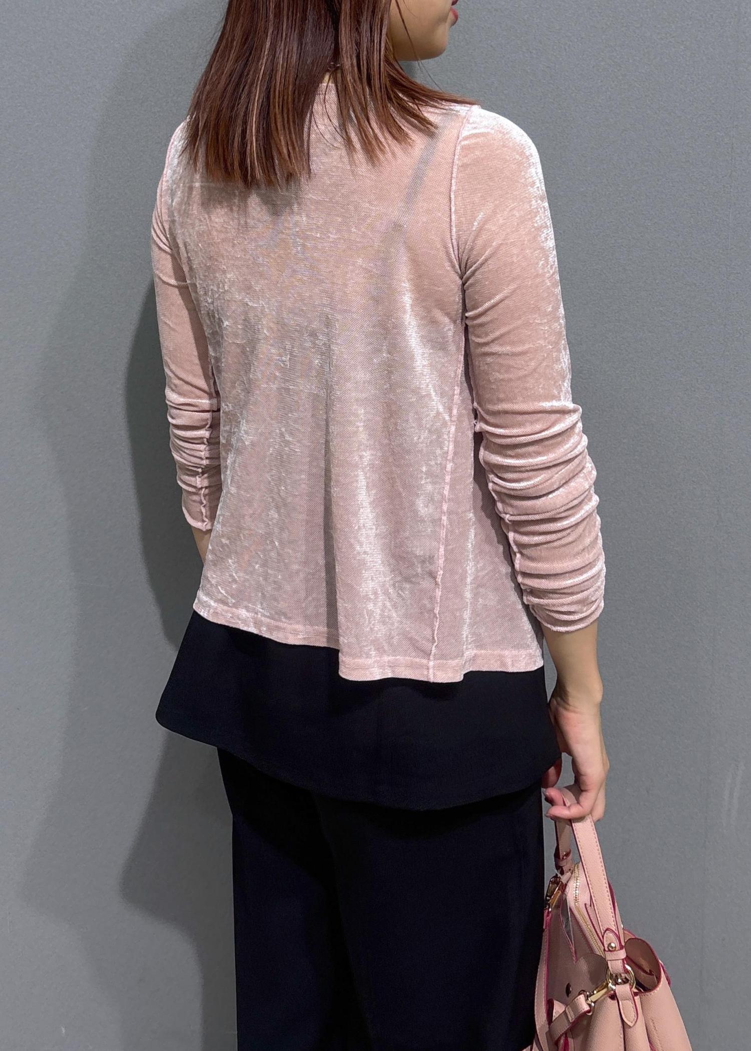 VIS【2WAY】花柄&無地アソート袖シャーリングベロアカーディガンピンク / F¥3,951レビューシアー感のあるベロア生地です。