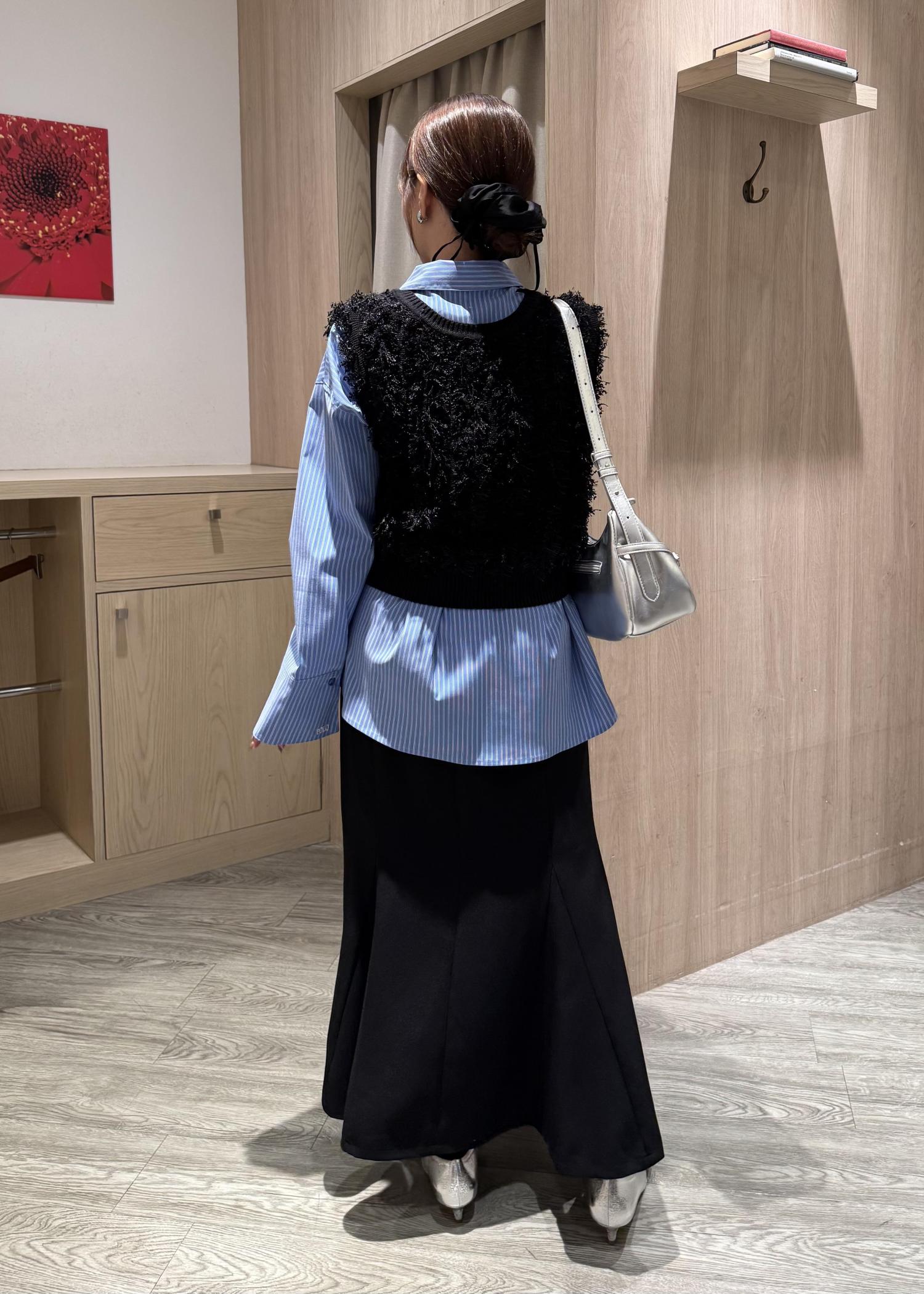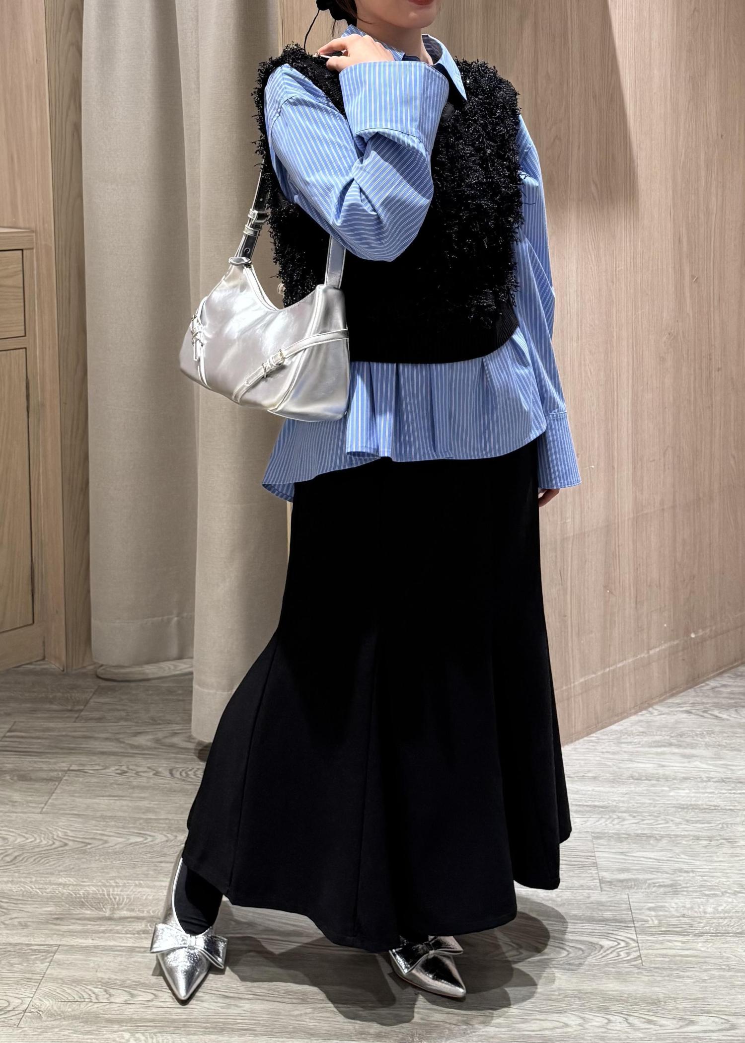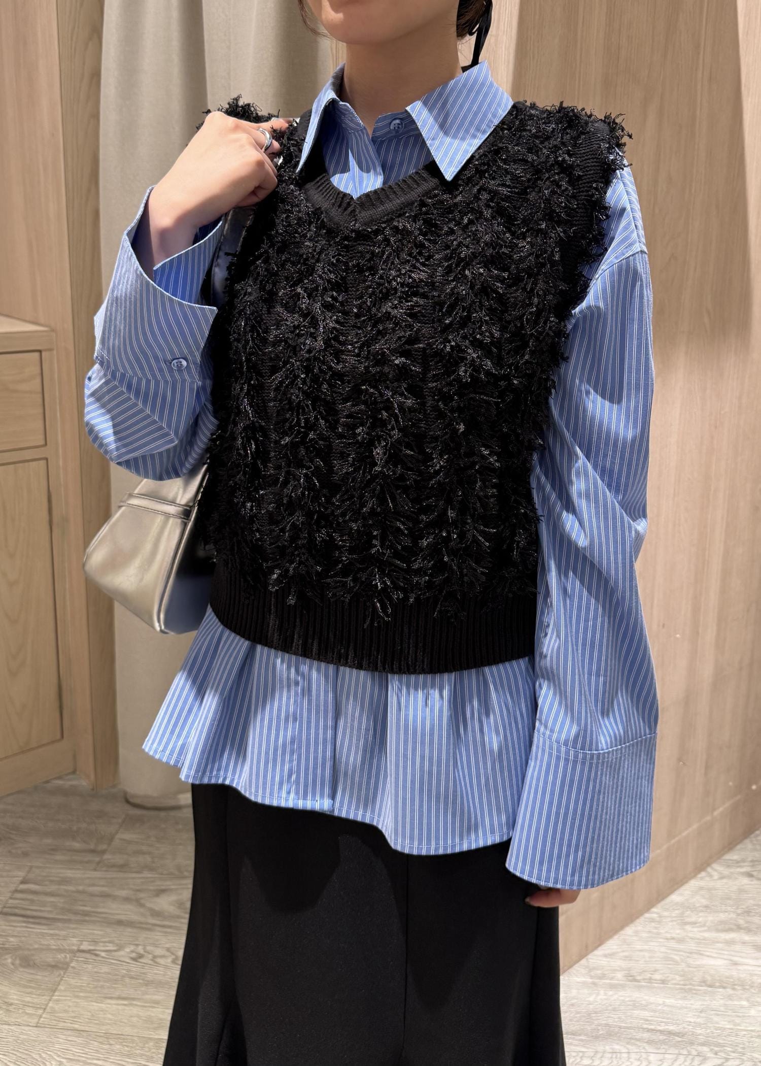 VIS【2WAY】フリンジニットベストブラック系 / F¥5,929レビュー身長157cm / Fサイズ着用
