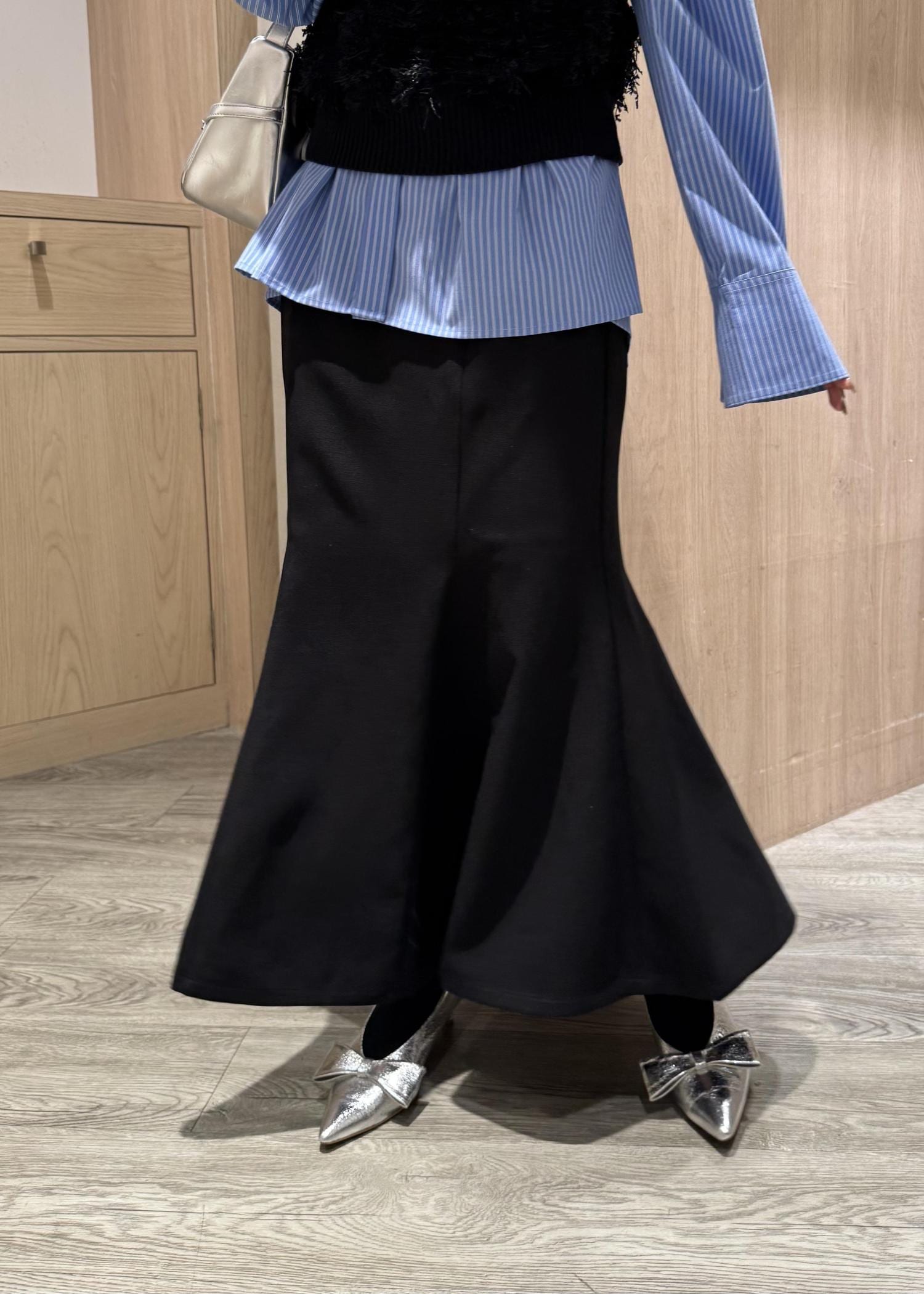 VIS美easyウーリッシュマーメイドスカート/セットアップ対応・イージーケアブラック / M¥6,589レビュー身長157cm / Mサイズ着用 / ウエスト両サイドのボタンで調節しました。