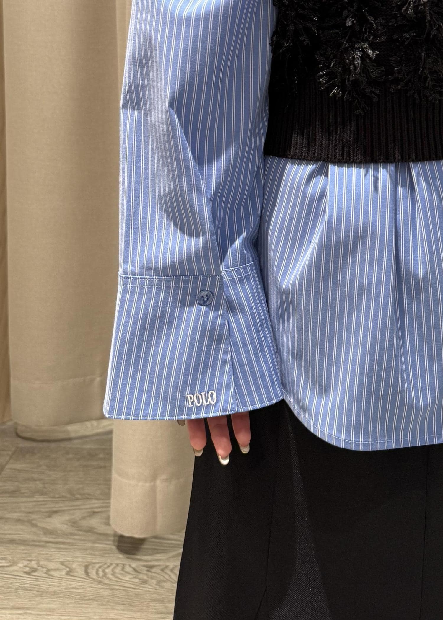VIS【POLOBCS】VIS別注ウエストタックフレアシャツブルー系 / F¥6,930レビュー身長157cm / Fサイズ着用
