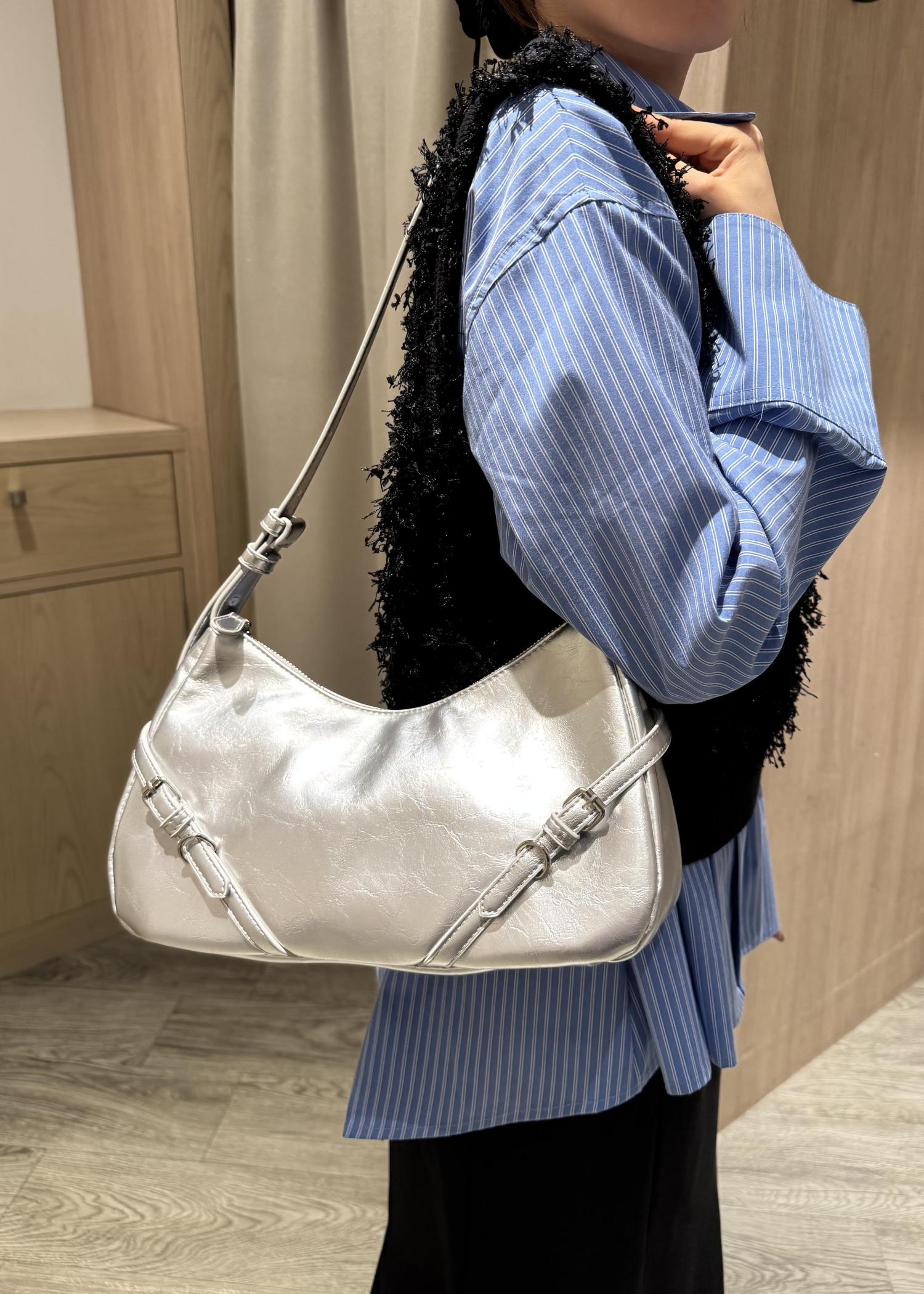 アウトレットVISフロントベルトショルダーバッグシルバー / F¥2,768レビュー500mlのペットボトルや長財布も入る長さです!外側にICカードや鍵などを入れることのできるチャック付きのポケットがあるのも嬉しいポイント!