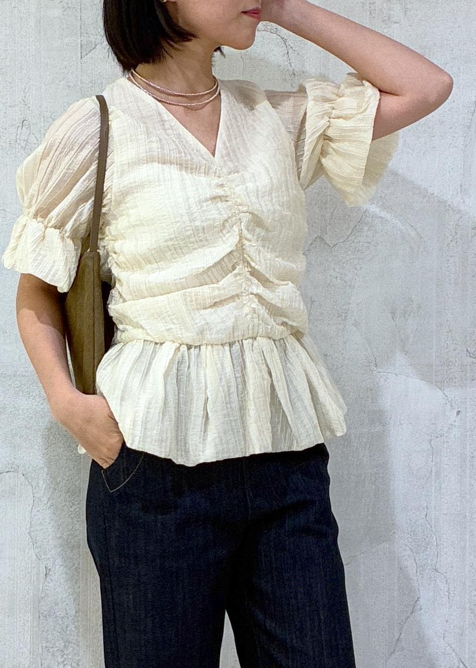 ROPÉ SELECT【一部店舗限定】【REALM(レルム)】PEPLUM TOPS|トップスホワイト / 38¥30,800レビューギャザーデザインの五分袖ブラウスです。