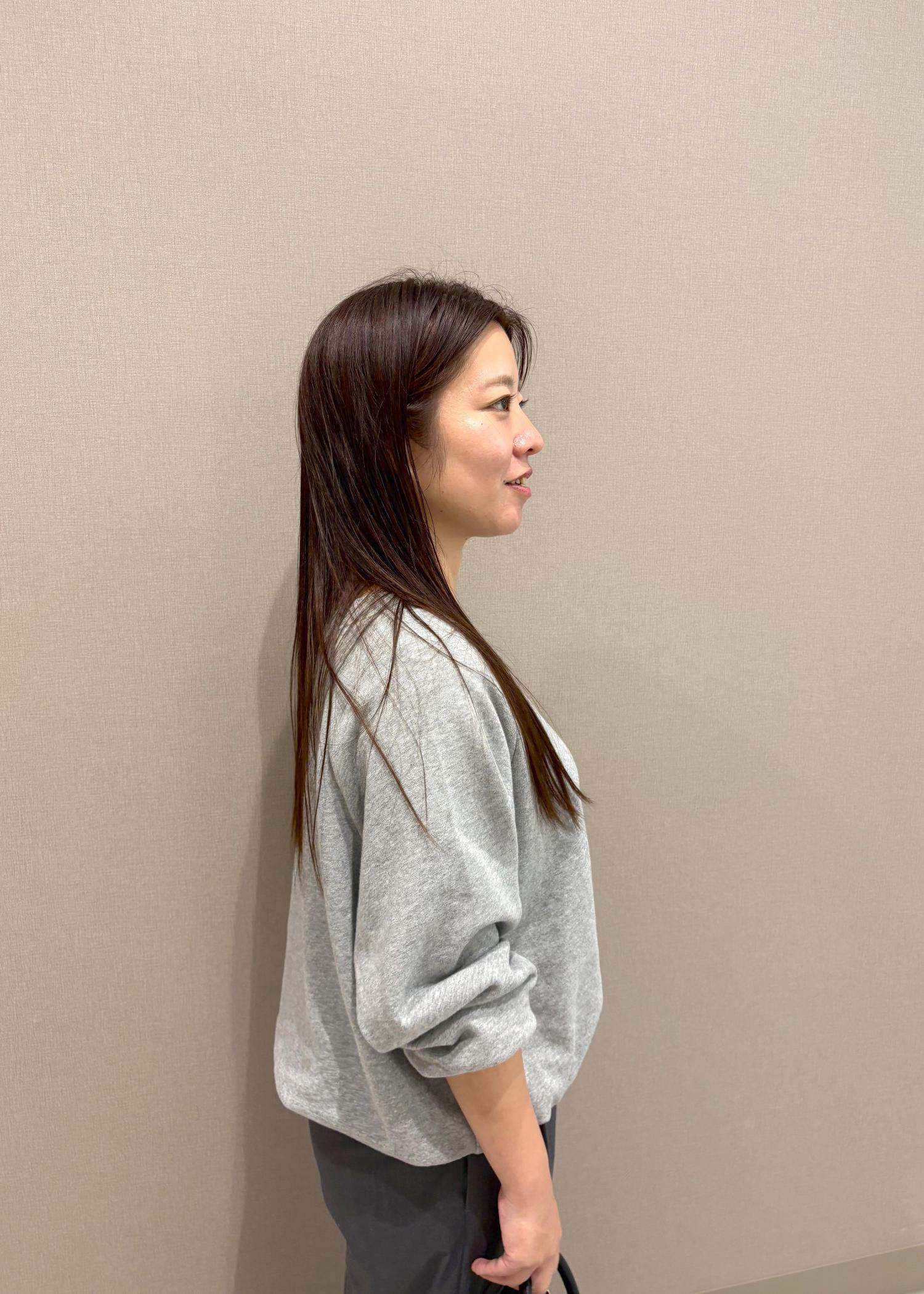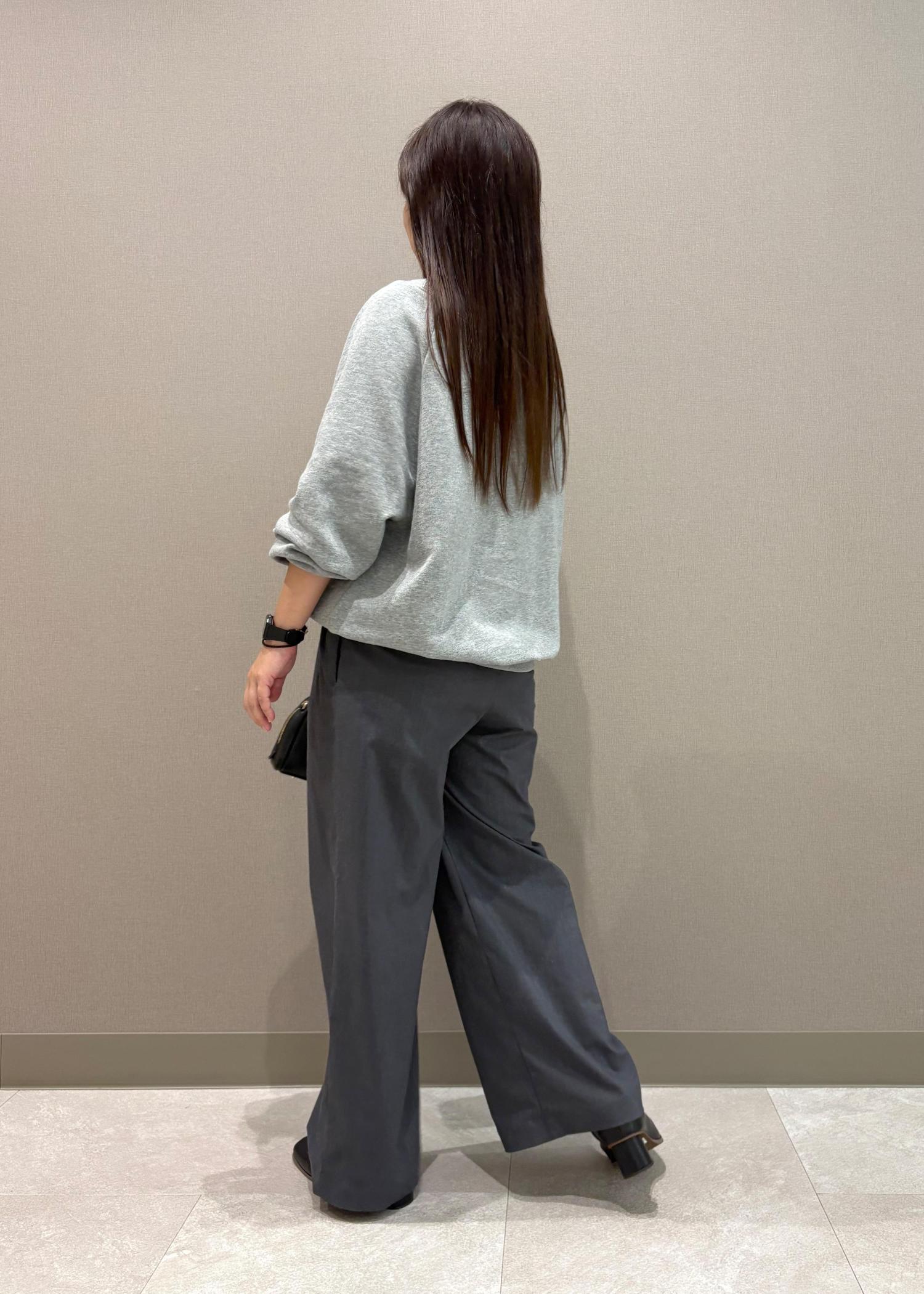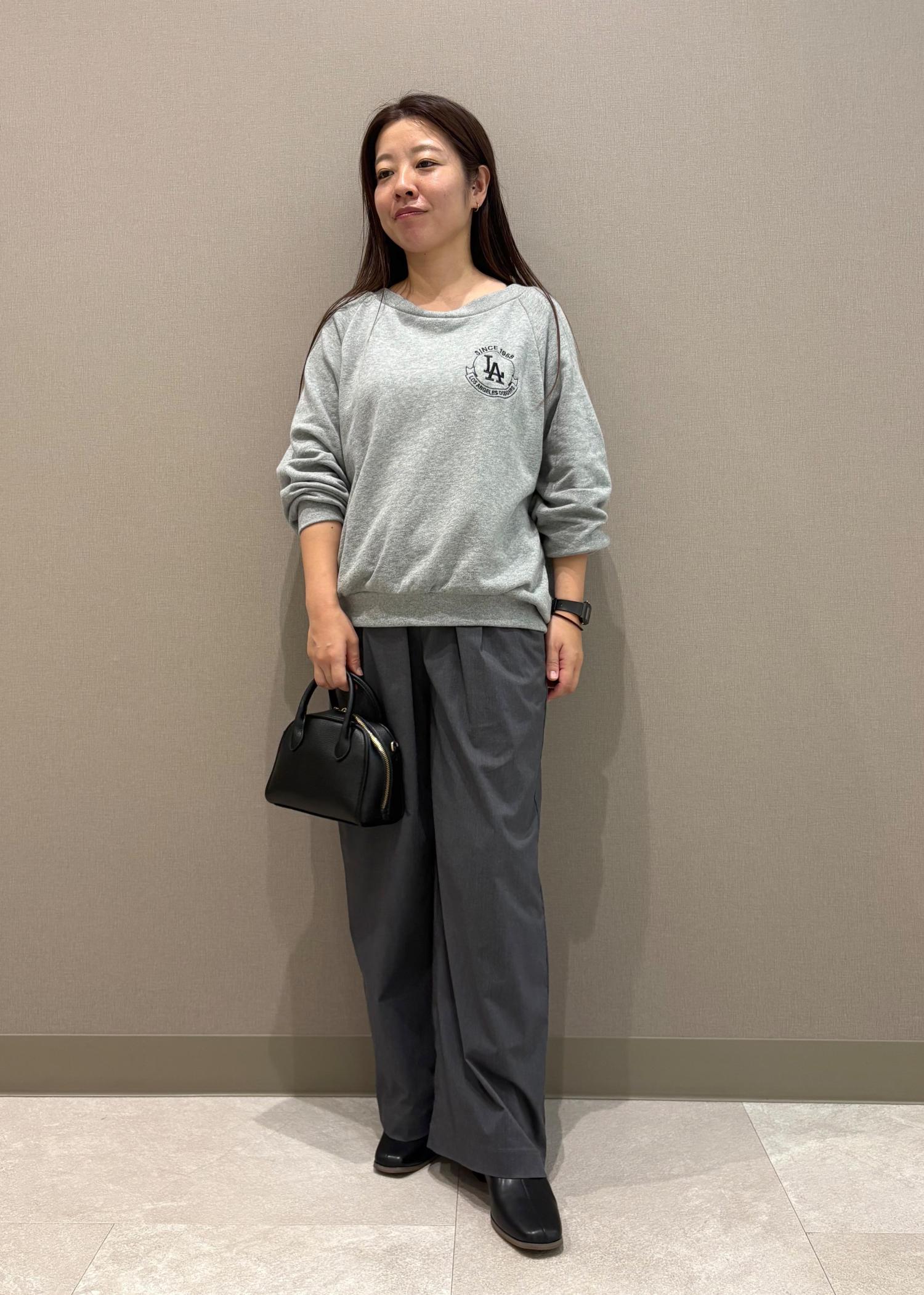 オフショルでも着られるので、首元が広く、骨格ストレートさんでも着膨れしないスウェットです! -