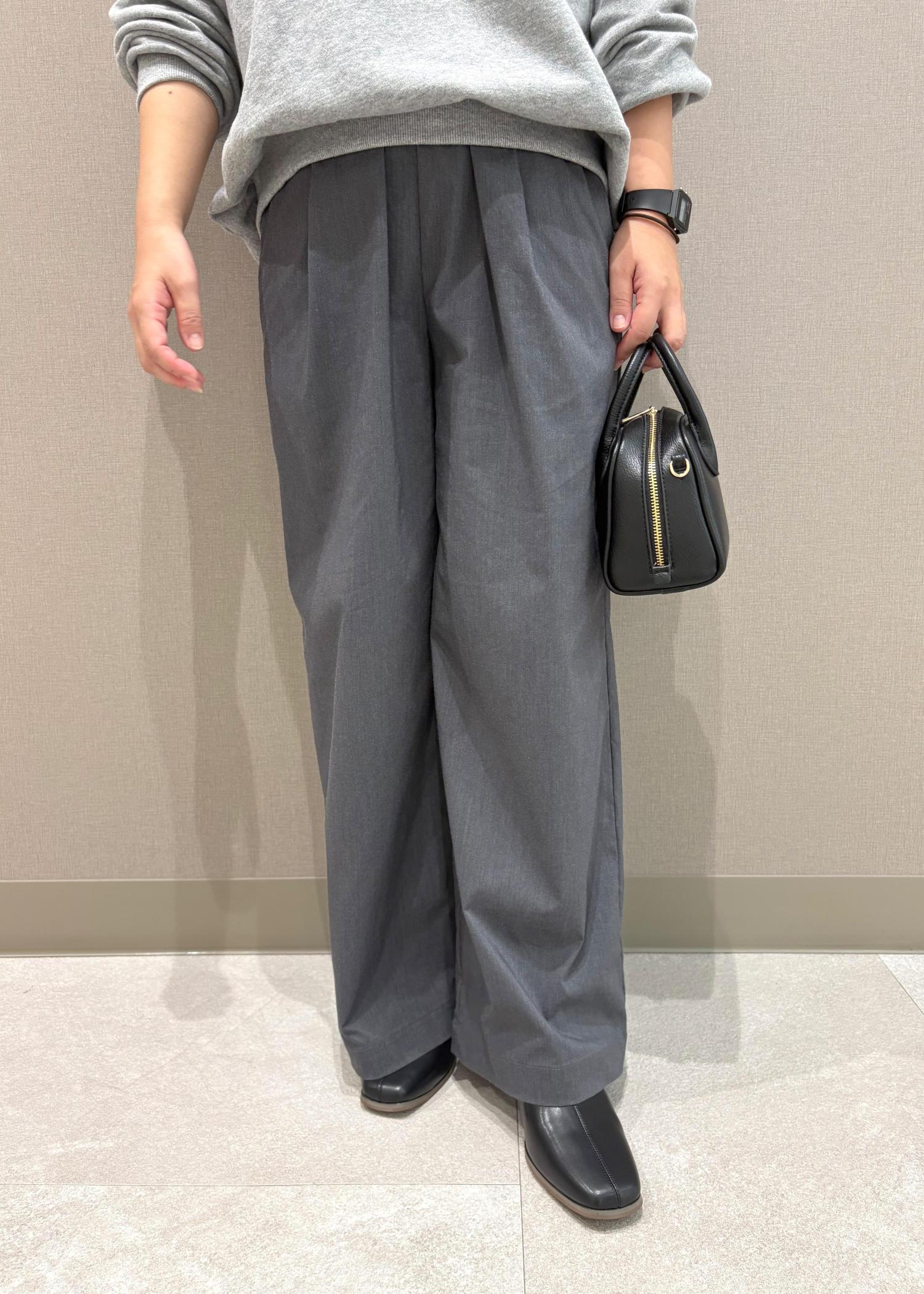 ウエストがまだ楽ちんですが、生地にハリ感があり、いろんなスタイリングに合わせやすいです! -