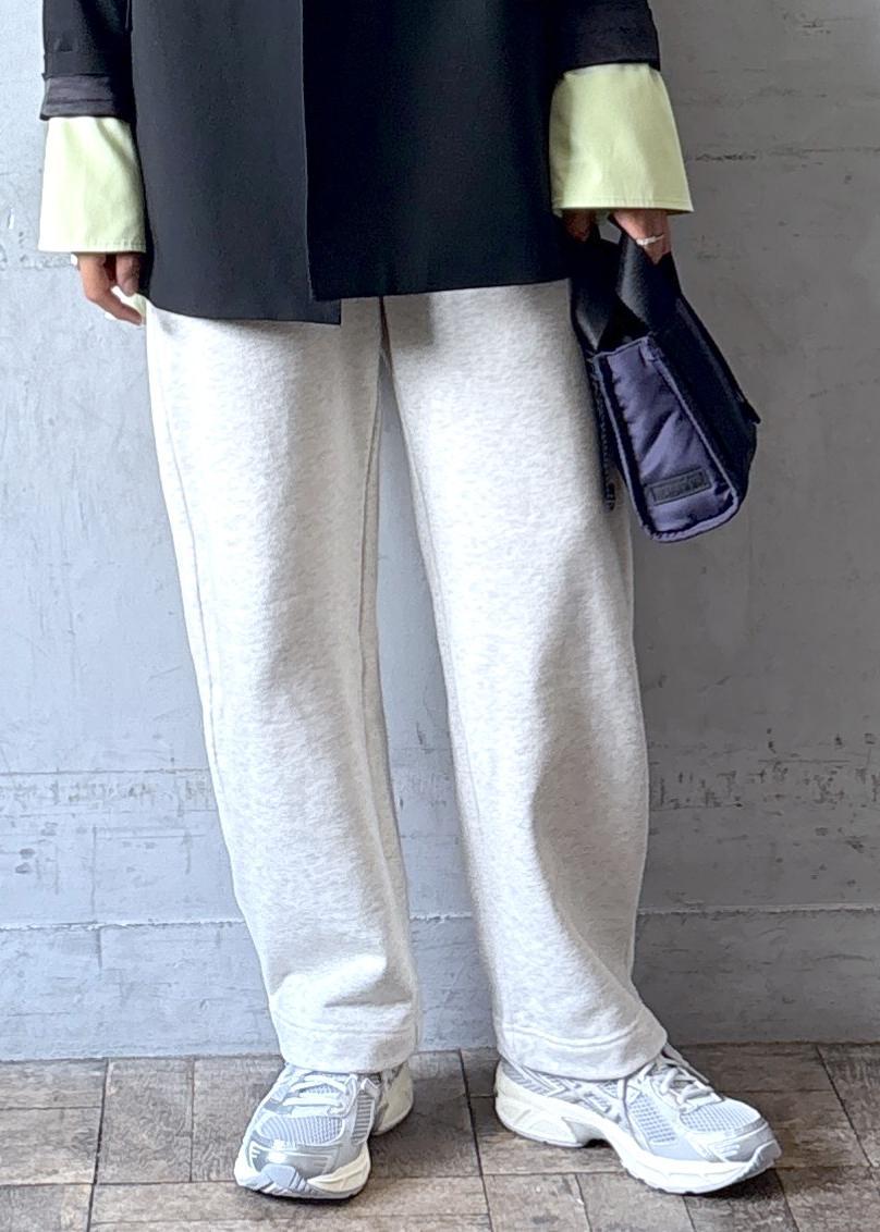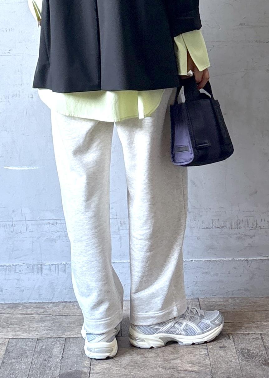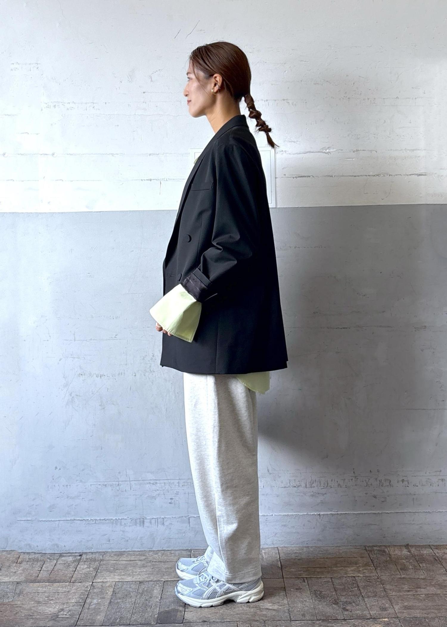 私はリボンブラウスをインナーにしてスウェットパンツと大人カジュアルにコーディネートしてみました。